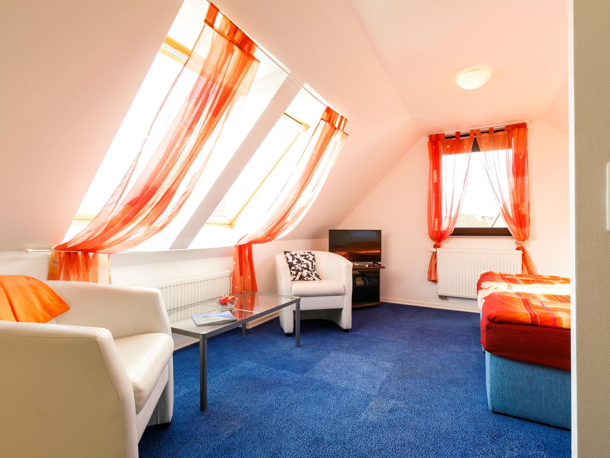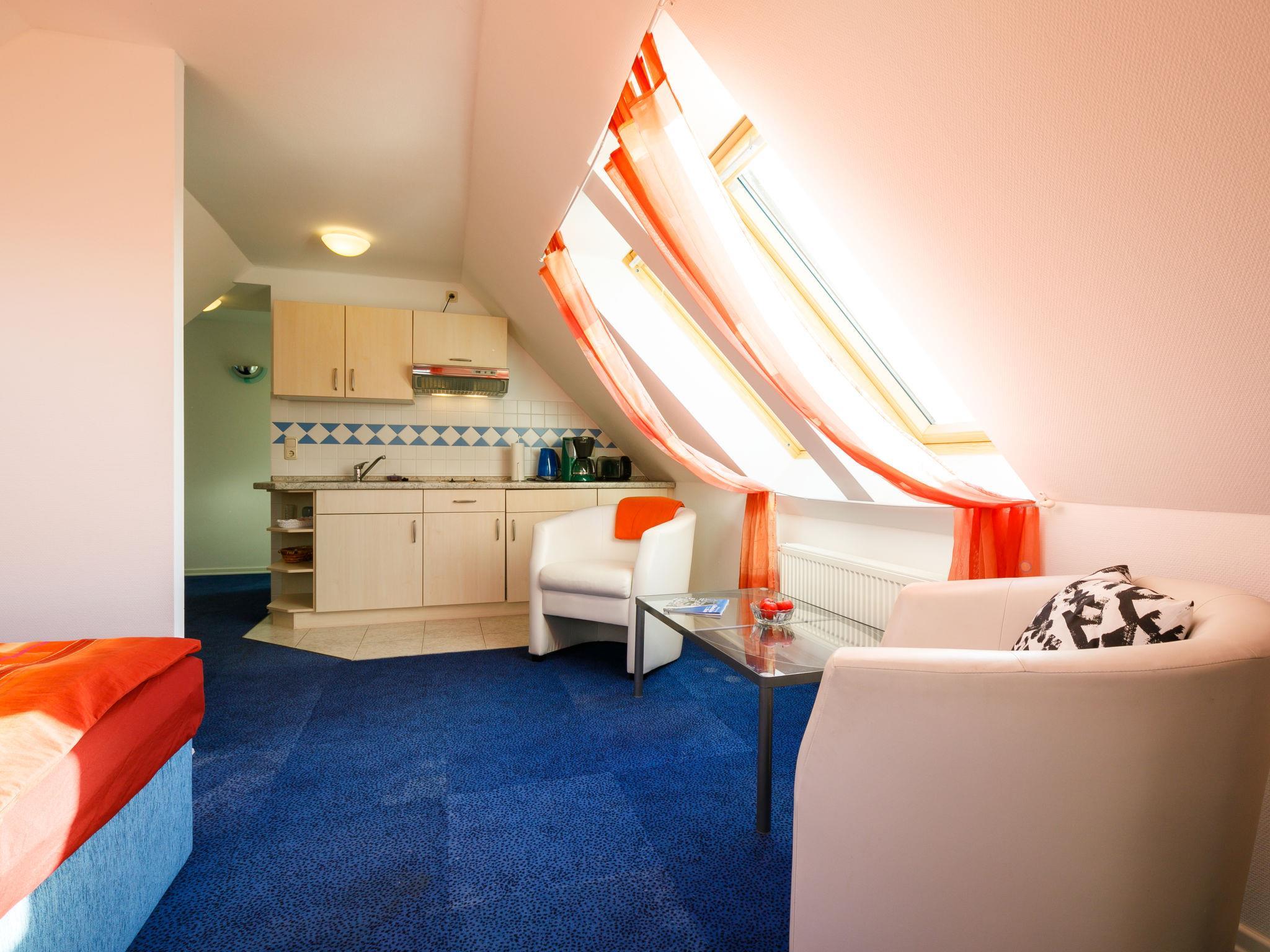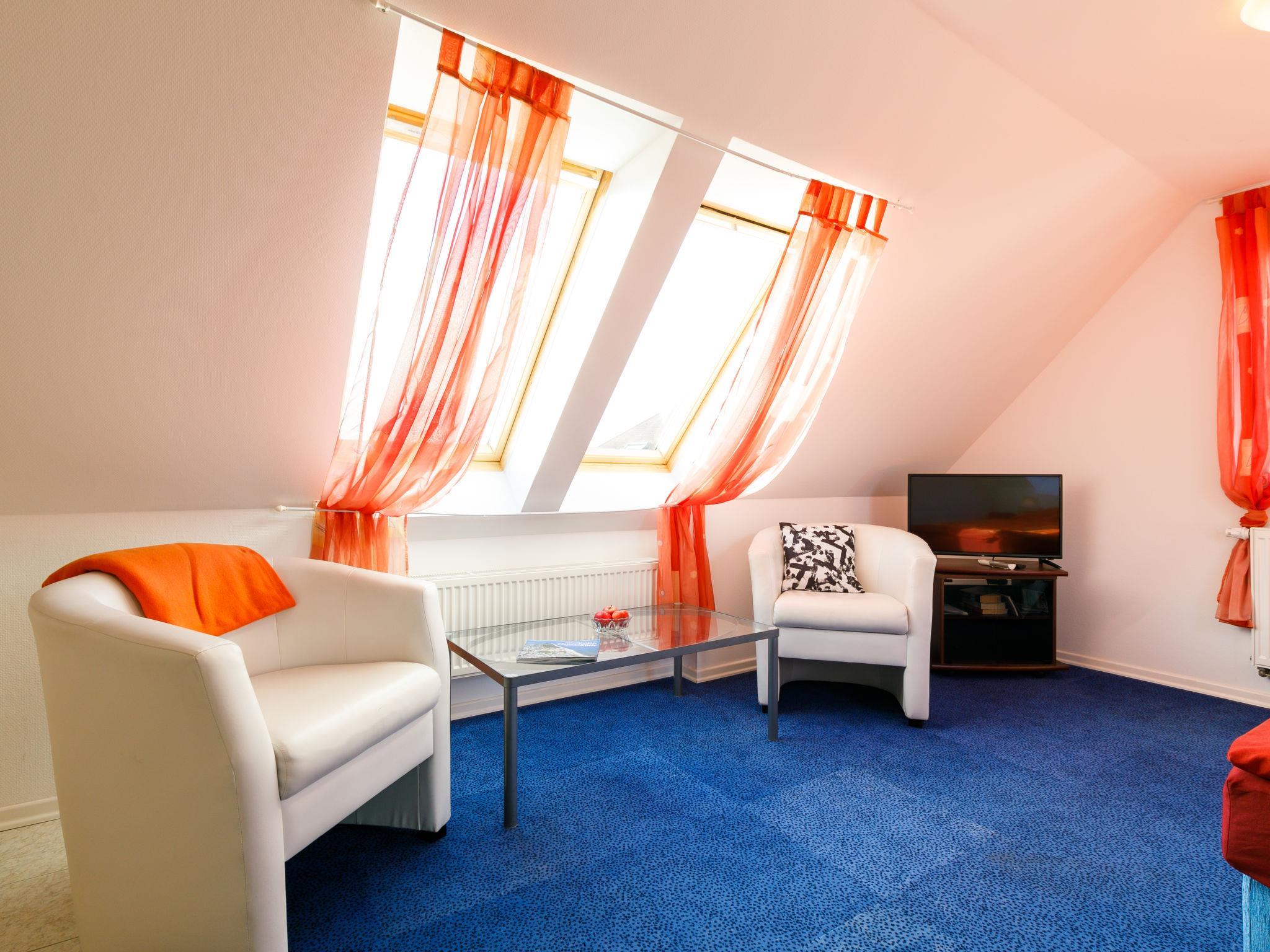 "Tauchmann II", 1-Zimmer-Wohnung 35 m2, im Dachgeschoss. Abgeschrägt, zweckmässig eingerichtet: Wohn-/Schlafzimmer mit 1 Doppelbett und Kabel-TV (Flachbildschirm), Radio. Kochnische (2 Kochplatten, Toaster, Wasserkocher, elektrische Kaffeemaschine). Dusche/WC. Teppichboden. Bitte beachten: Nichtraucher-Unterkunft. Rauchmelder.