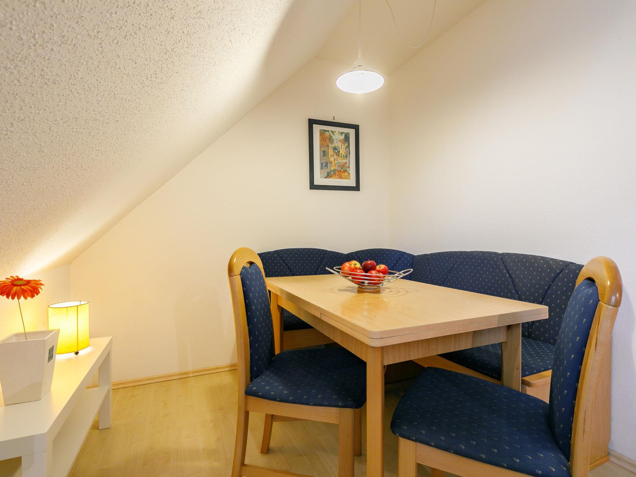 4-Zimmer-Reihenhaus 115 m2 auf 3 Stockwerken, im Erdgeschoss. Einfach eingerichtet: Wohn-/Esszimmer mit 1 Diwanbett und Kabel-TV (Flachbildschirm), Radio. Ausgang zur Terrasse. 1 Zimmer mit 1 Doppelbett. Kochnische (4 Kochplatten, Backofen, Geschirrspüler, Toaster, Wasserkocher, elektrische Kaffeemaschine). Dusche/WC. Obergeschoss: abgeschrägtes Wohn-/Esszimmer mit Kabel-TV (Flachbildschirm), Radio. 1 abgeschrägtes Zimmer mit 2 Betten. Kochnische (4 Kochplatten, Backofen, Geschirrspüler, Toaster, Wasserkocher, Mikrowelle, elektrische Kaffeemaschine). Dusche/WC. Dachgeschoss: abgeschrägte, offene Galerie mit 1 Doppelbett. Terrasse. Terrassenmöbel. Zur Verfügung: Kinderhochstuhl, Babybett. Internet (Wireless LAN, gratis). Bitte beachten: Nichtraucher-Haus. Maximal 2 Haustiere/Hunde erlaubt. Rauchmelder. Keine interne Verbindung zwischen den separaten Wohneinheiten. Das Ferienhaus ist die Kombination der beiden Wohnungen DE9170.176.1 und DE9170.176.2. Anstelle eines abgeschlossenen Schlafzimmers befinden sich manche Schlafplätze in einem offenen Bereich (Galerie, Nische etc.).