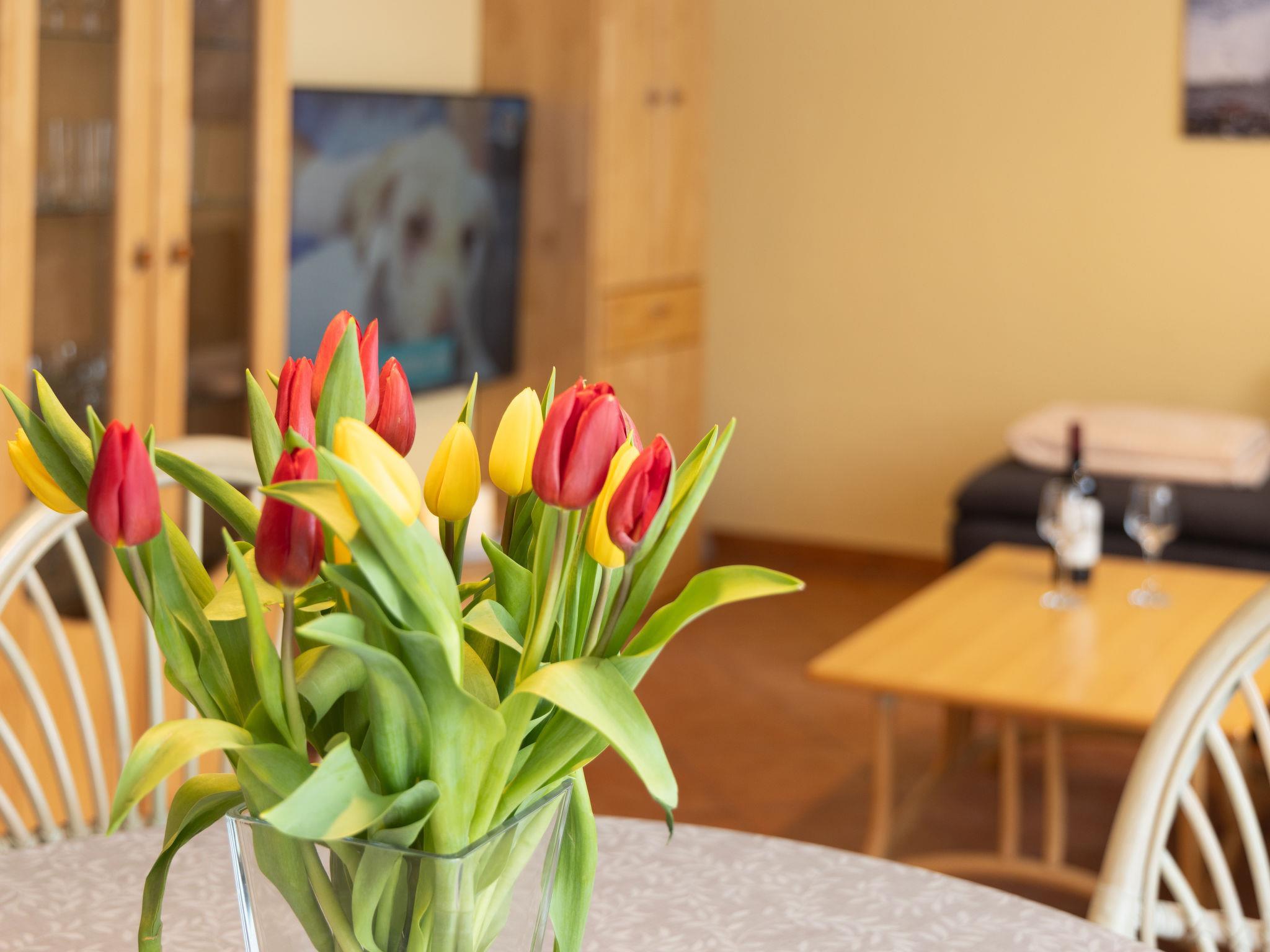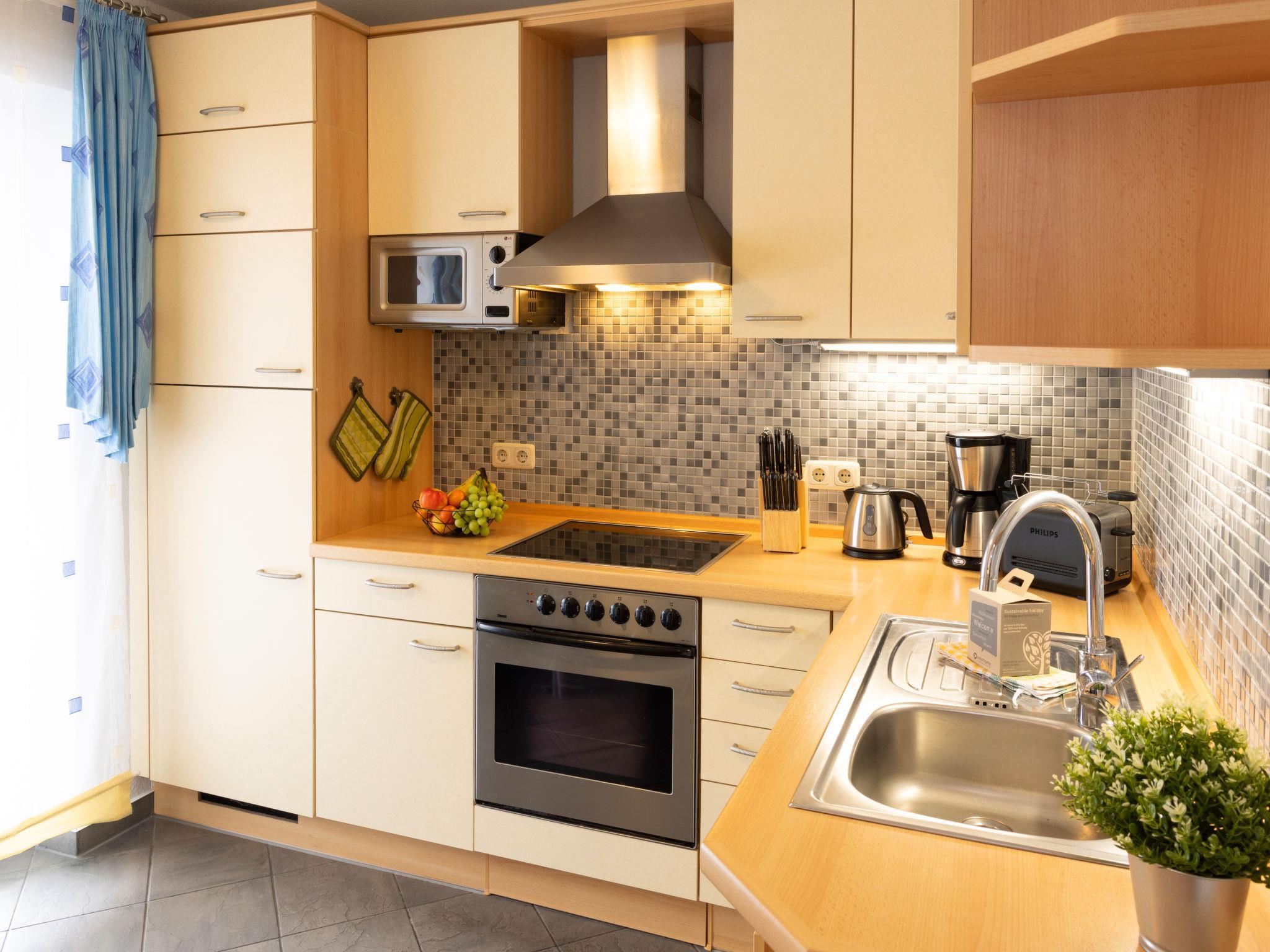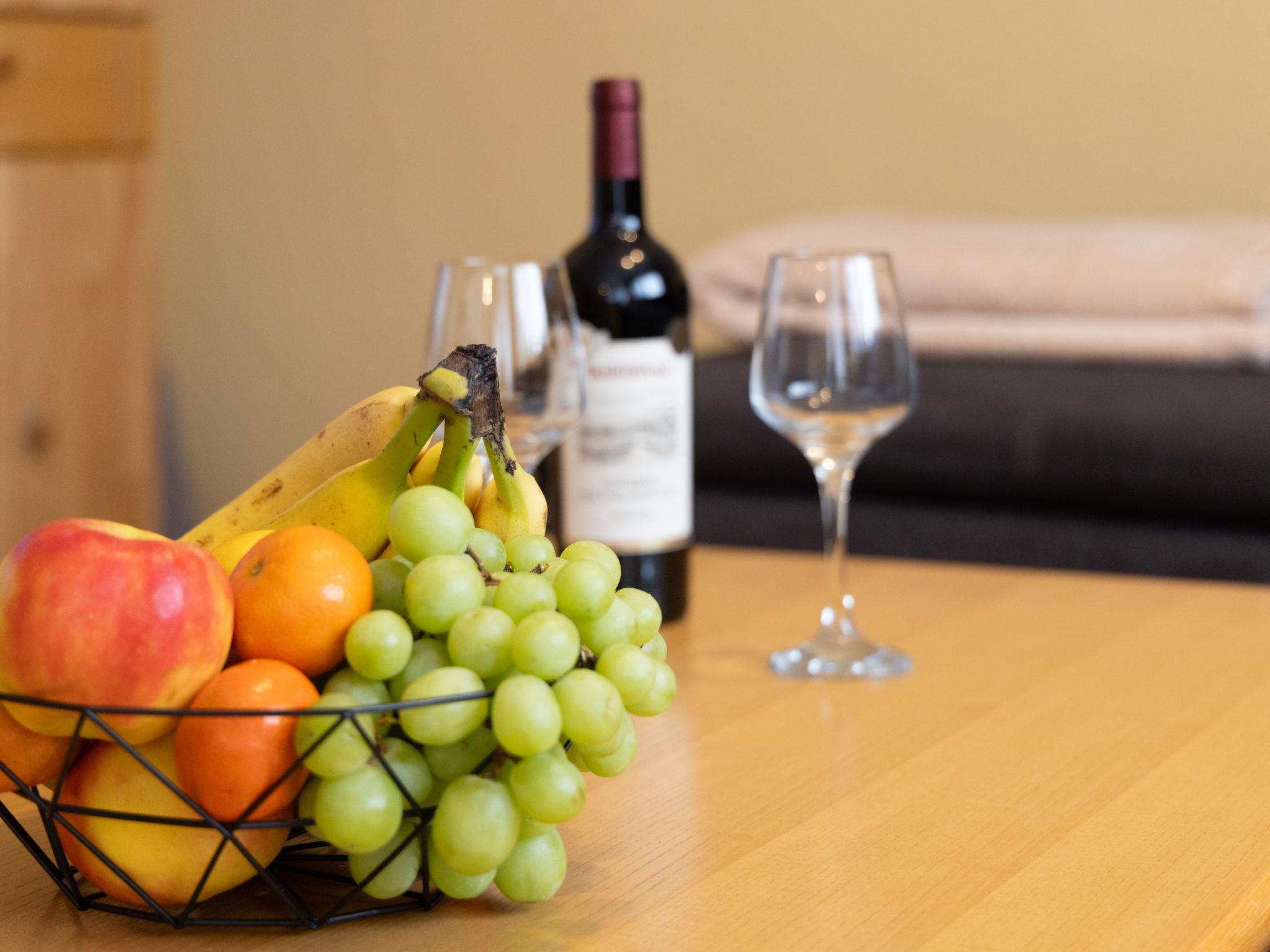 "Ritter", 2-Zimmer-Wohnung 75 m2, im Erdgeschoss. Gemütlich eingerichtet: Wohn-/Esszimmer mit 1 Doppeldiwanbett und Kabel-TV (Flachbildschirm), Radio. Ausgang zur Terrasse. 1 Zimmer mit 1 Doppelbett (200 cm, Länge 200 cm). Küche (Backofen, Geschirrspüler, 4 Induktionskochplatten, Toaster, Wasserkocher, Mikrowelle, elektrische Kaffeemaschine). Bad/Dusche/WC, Doppelwaschbecken, Sauna. Terrasse. Terrassenmöbel. Zur Verfügung: Kinderhochstuhl, Babybett. Internet (WLAN, gratis). Bitte beachten: Nichtraucher-Unterkunft. Rauchmelder.