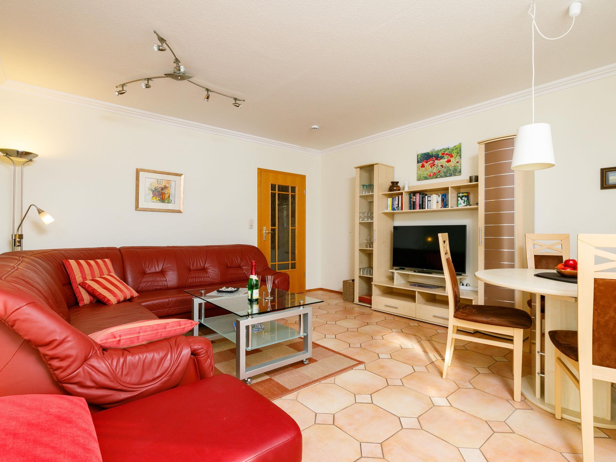 "Laurich", 2-Zimmer-Wohnung 55 m2, im erhöhten Erdgeschoss. Gemütlich eingerichtet: Wohn-/Esszimmer mit 1 Diwanbett und Kabel-TV (Flachbildschirm), Radio. Ausgang zum Balkon. 1 Zimmer mit 1 Doppelbett. Küche (Backofen, Geschirrspüler, 4 Glaskeramikplatten, Toaster, Mikrowelle, elektrische Kaffeemaschine). Bad/WC. Balkon. Balkonmöbel. Zur Verfügung: Kinderhochstuhl, Babybett. Bitte beachten: Nichtraucher-Unterkunft. Rauchmelder.