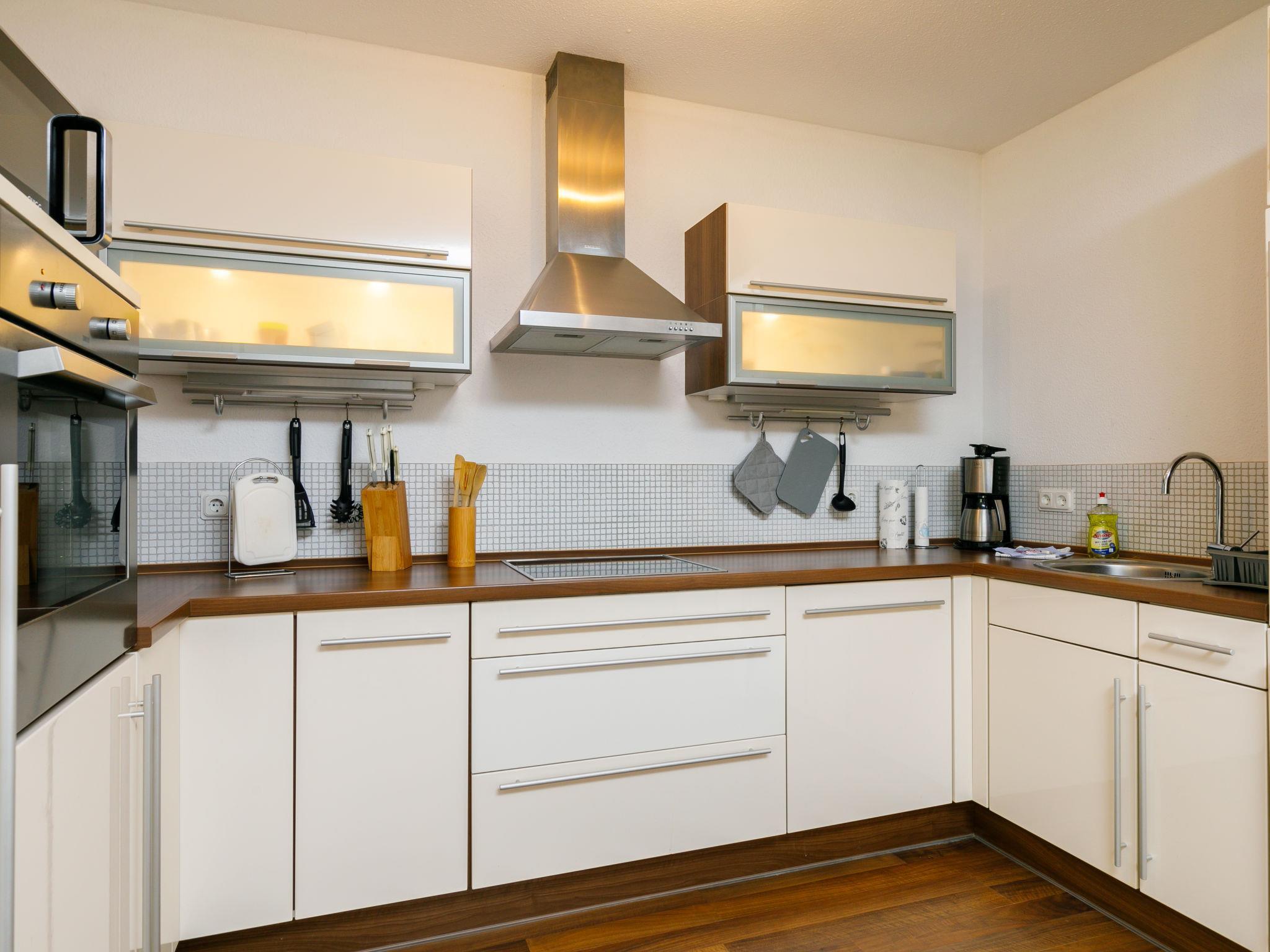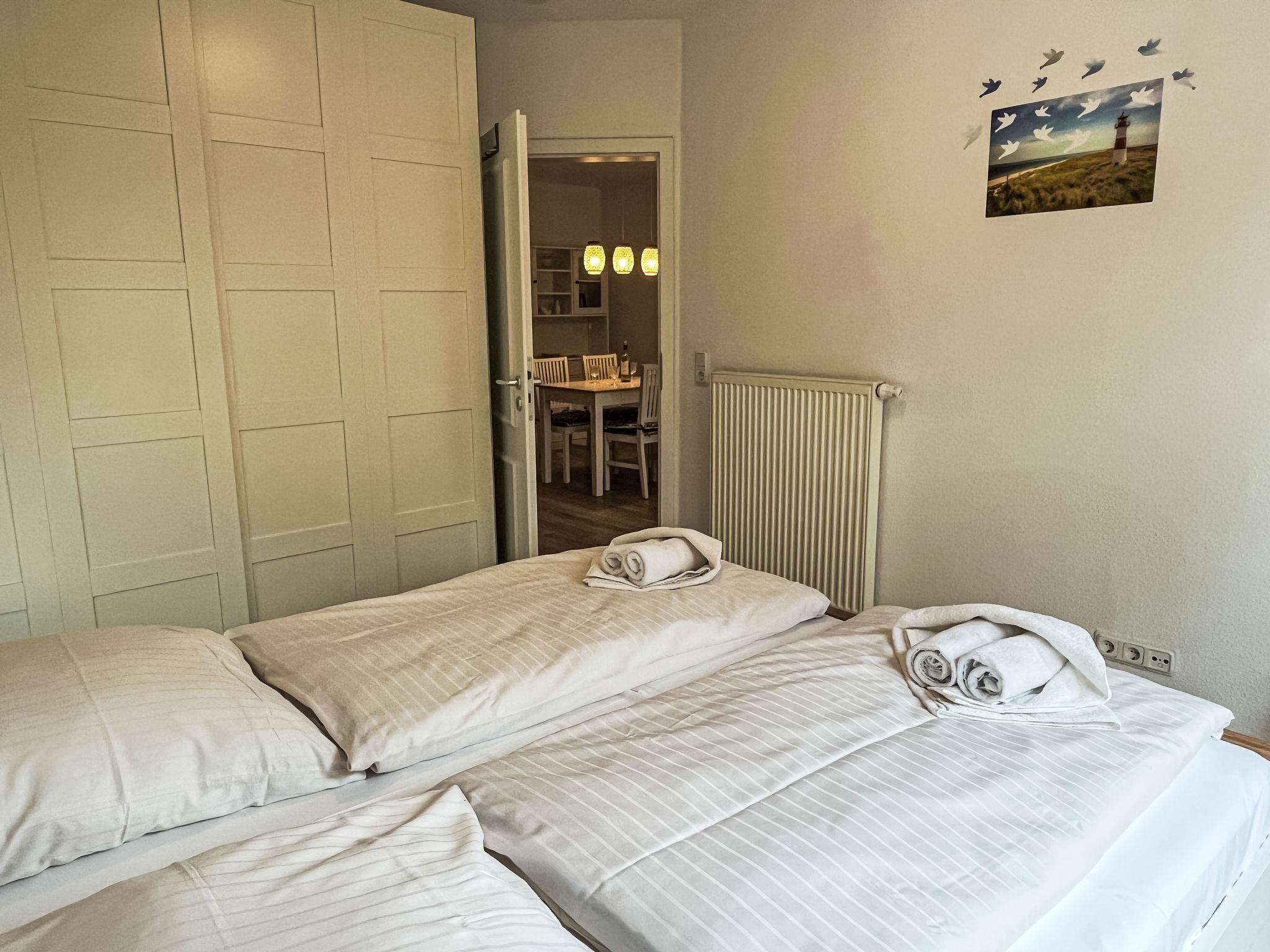 "Möwe", 2-Zimmer-Wohnung 67 m2, im Obergeschoss. Hell, gemütlich eingerichtet: Wohn-/Esszimmer mit 1 Doppeldiwanbett und Kabel-TV (Flachbildschirm), Radio. Ausgang zum Balkon. 1 Zimmer mit 1 Doppelbett (160 cm, Länge 200 cm). Kochnische (Geschirrspüler, 4 Glaskeramikplatten, Toaster, Wasserkocher, Mikrowelle, elektrische Kaffeemaschine). Dusche/WC. Balkon. Balkonmöbel. Bitte beachten: Nichtraucher-Unterkunft. Maximal 1 Haustier/Hund erlaubt. Rauchmelder. Infrarotsauna.