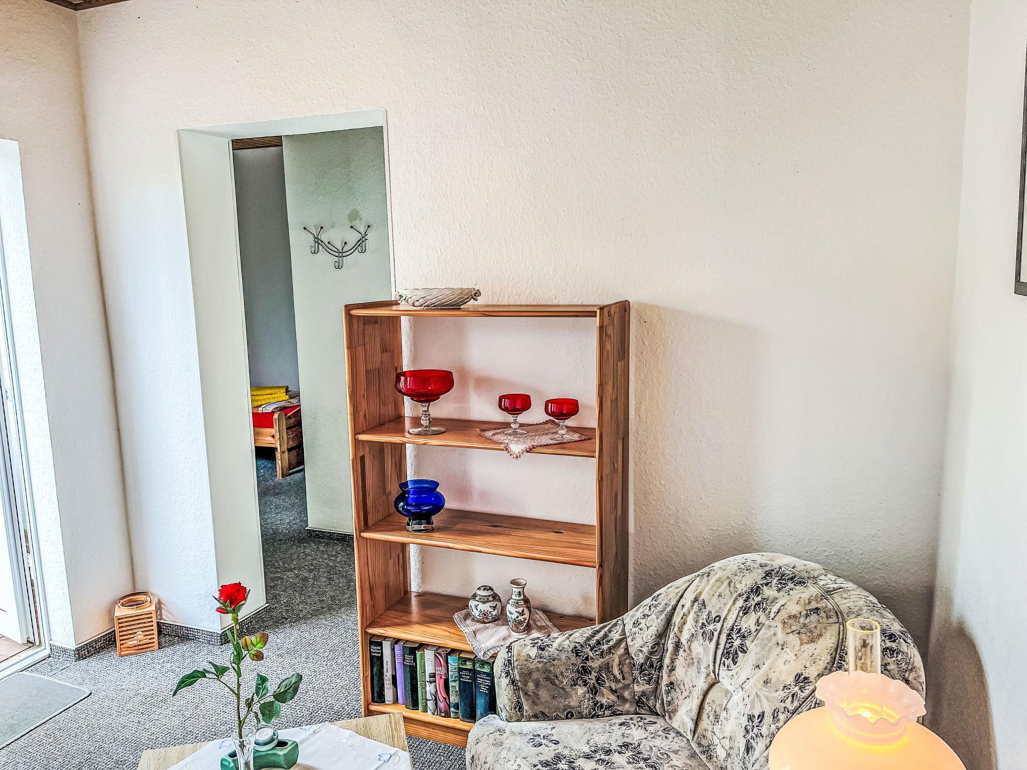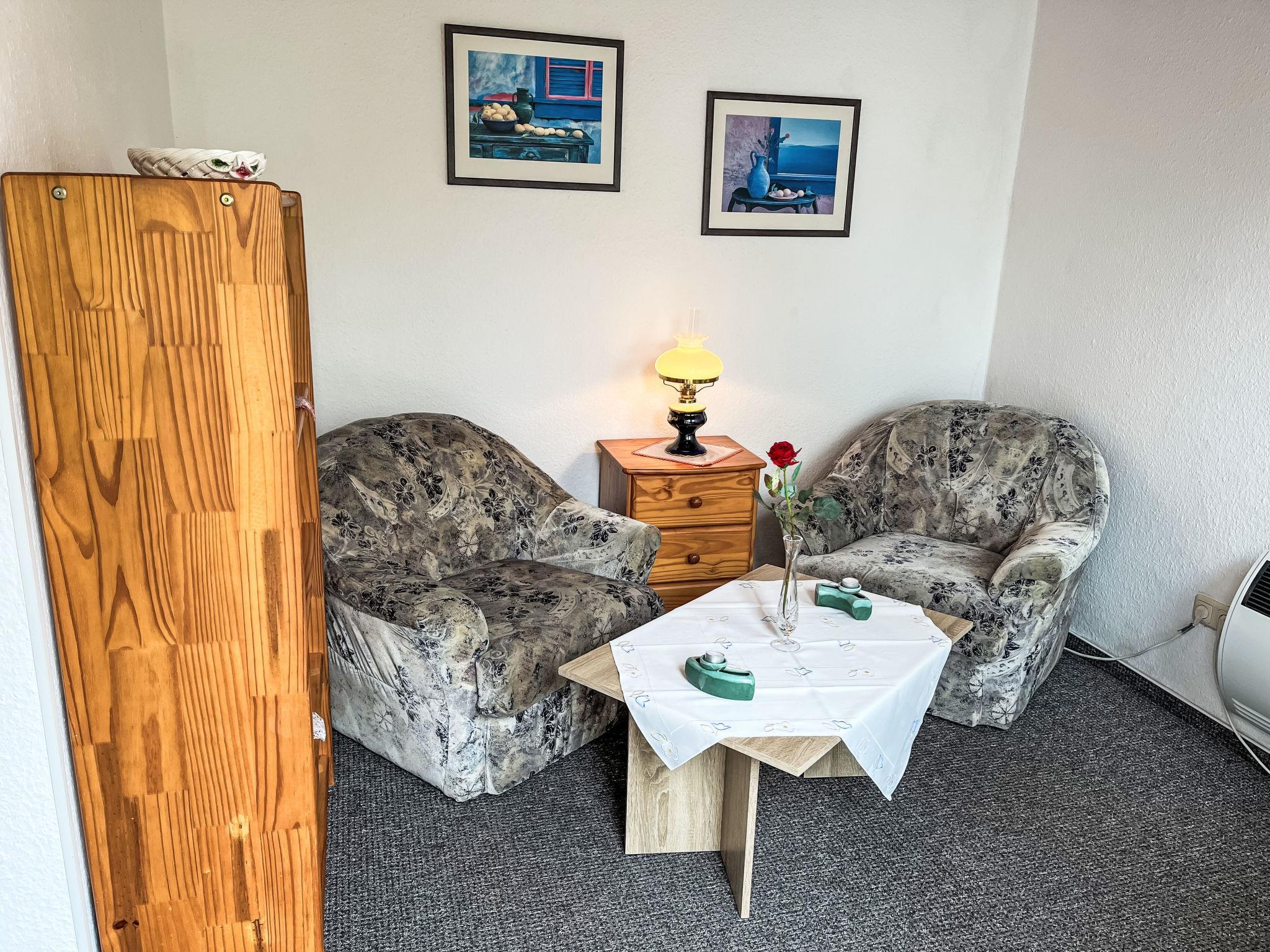 2-Zimmer-Haus 30 m2, im Erdgeschoss. Einfach eingerichtet: Wohn-/Esszimmer mit Kabel-TV (Flachbildschirm), Radio. 1 offenes Zimmer mit 2 Betten. Kochnische (2 Kochplatten, Toaster, Wasserkocher, elektrische Kaffeemaschine). Dusche/WC. Terrasse. Terrassenmöbel. Bitte beachten: Nichtraucher-Haus. Maximal 1 Haustier/Hund erlaubt. Rauchmelder.