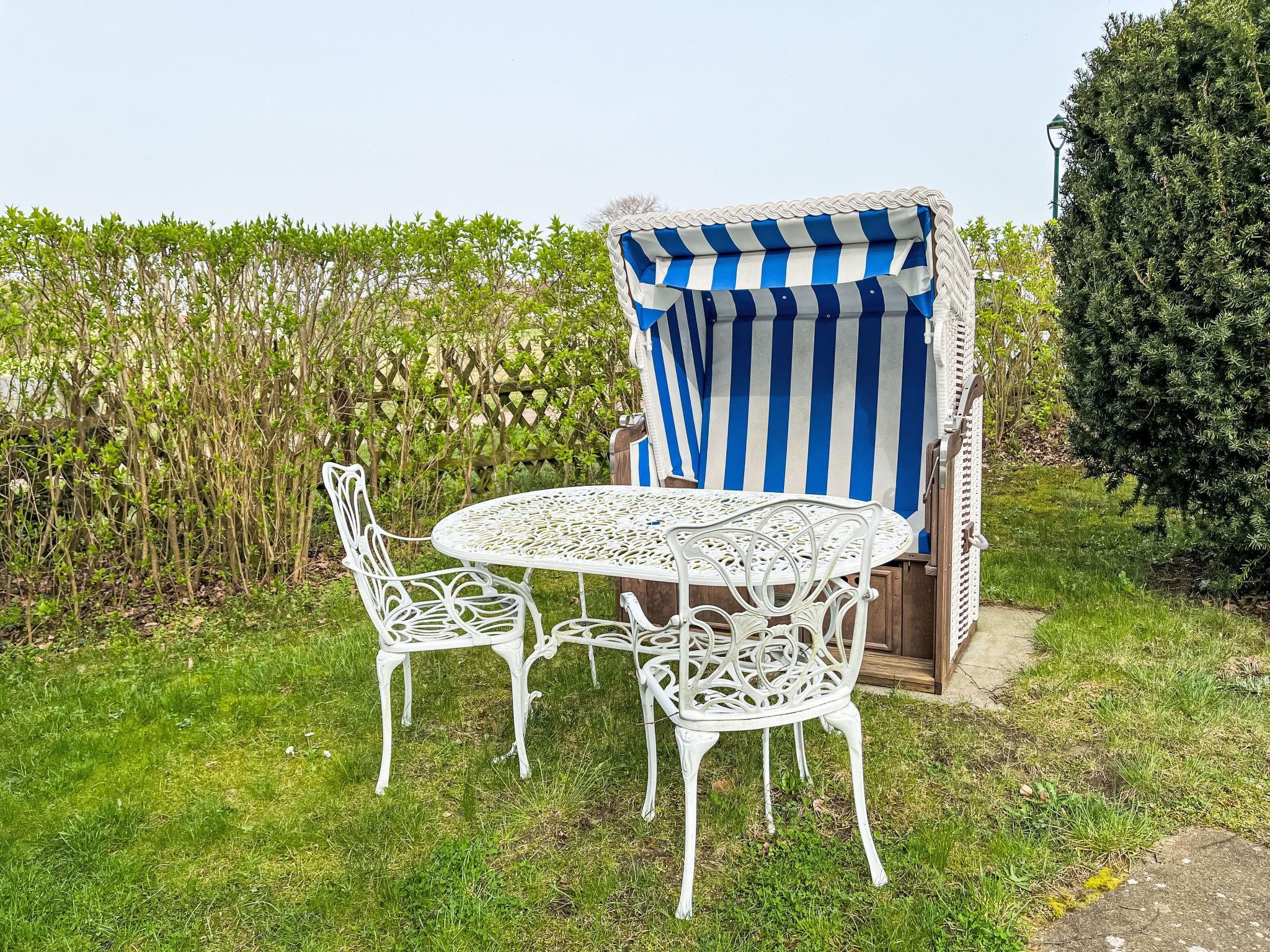 2-Zimmer-Bungalow 37 m2, im Erdgeschoss. Objekt geeignet für 2 Erwachsene. Einfach eingerichtet: Wohnzimmer mit 1 Doppeldiwanbett und Sat-TV (Flachbildschirm), Radio. 1 Zimmer mit 2 Betten. Küche (2 Kochplatten, Geschirrspüler, Toaster, Wasserkocher, Mikrowelle, elektrische Kaffeemaschine) mit Esstisch. Ausgang zur Terrasse. Dusche/WC. Gartensitzplatz. Terrassenmöbel. Zur Verfügung: Internet (WLAN, gratis). Parkplatz beim Haus. Bitte beachten: Nichtraucher-Unterkunft. Maximal 2 Haustiere/Hunde erlaubt. Rauchmelder. Strandkorb in einem schönen Garten.