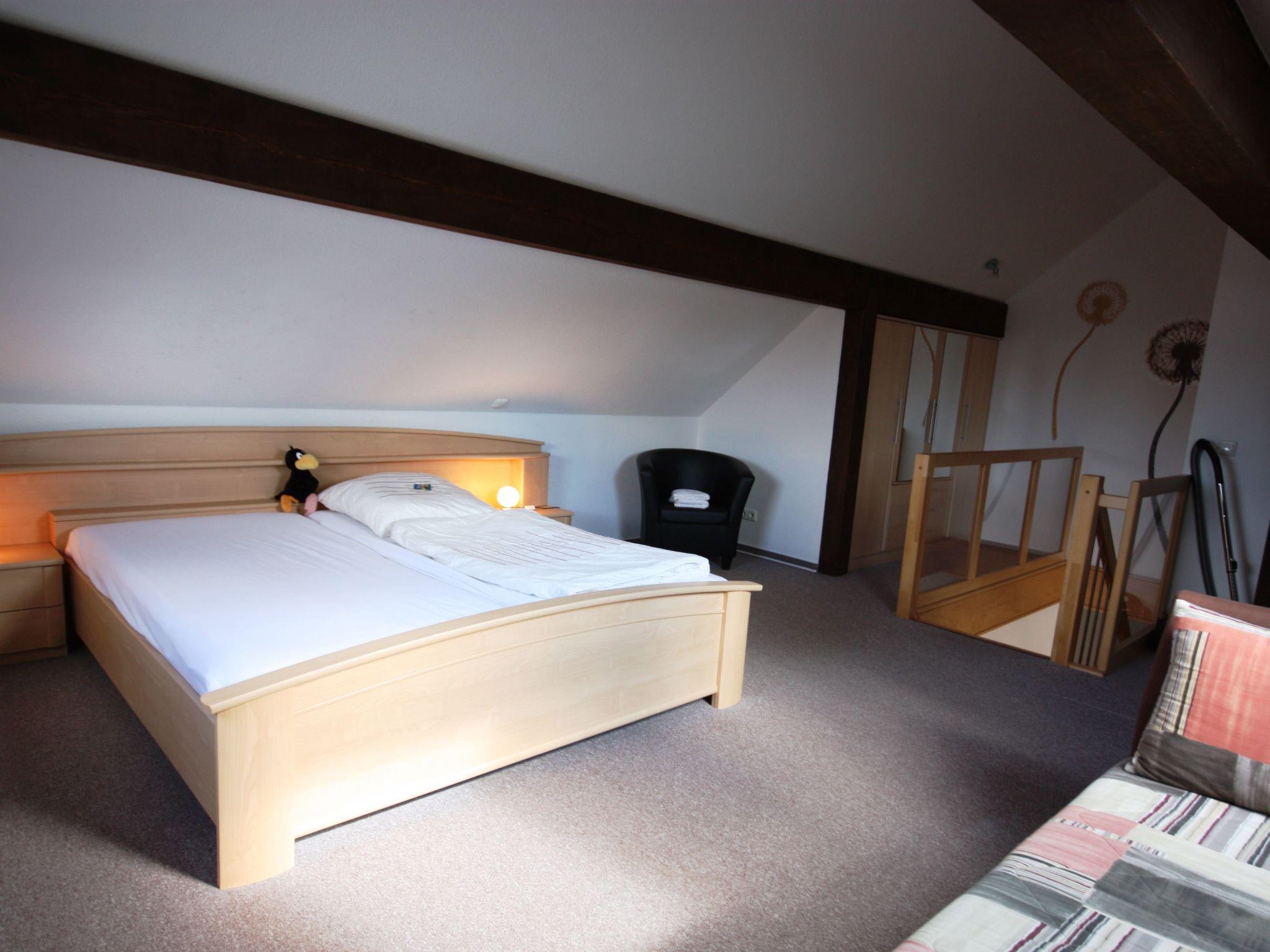 1 Maisonetteschlafzimmer mit Doppelbett (180*200), SAT-TV, Bettcouch (90*200), Kinderbett (60*120), 2 Ablagesesseln und großem Schrank