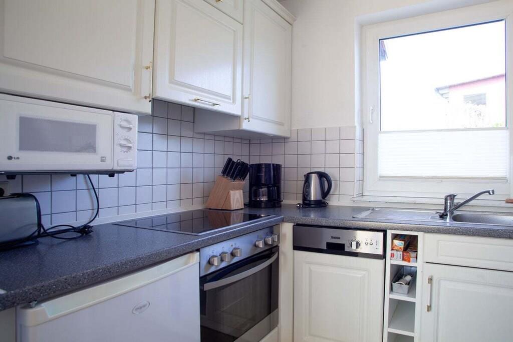 Unsere Doppelhaushälfte mit ca. 65 m² Wohnfläche auf 2 Etagen befindet sich nur ca. 300 m von der Koserower Seebrücke entfernt und liegt in einer sehr ruhigen, von der Hauptstraße zurückgesetzten Lage. Das Ferienhaus bietet mit dem modern eingerichteten Wohnzimmer der Küche, den zwei Schlafzimmern sowie den zwei Badezimmern Platz für 5 Personen (2 Schlafzimmer plus Couch im Wohnzimmer). Sowohl Familien als auch Paare können sich bei uns gleichermaßen wohlfühlen. Die Terasse bietet Grillmöglichkeiten und Sonnenmöbel inkl. Sonnenschirm. Zur Anlage, bestehend aus 6 Doppelhaushälften, gehört eine ca. 1.000 m² große Liege- und Spielwiese, welche von unseren Urlaubern genutzt werden kann. Zum Ferienhaus gehört ein PKW-Stellplatz. Fahrräder können ebenfalls untergestellt werden. Eine Aufbettung ist einem separaten, zum Grundstück gehörenden, Holzblockhaus möglich.