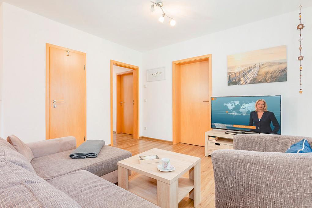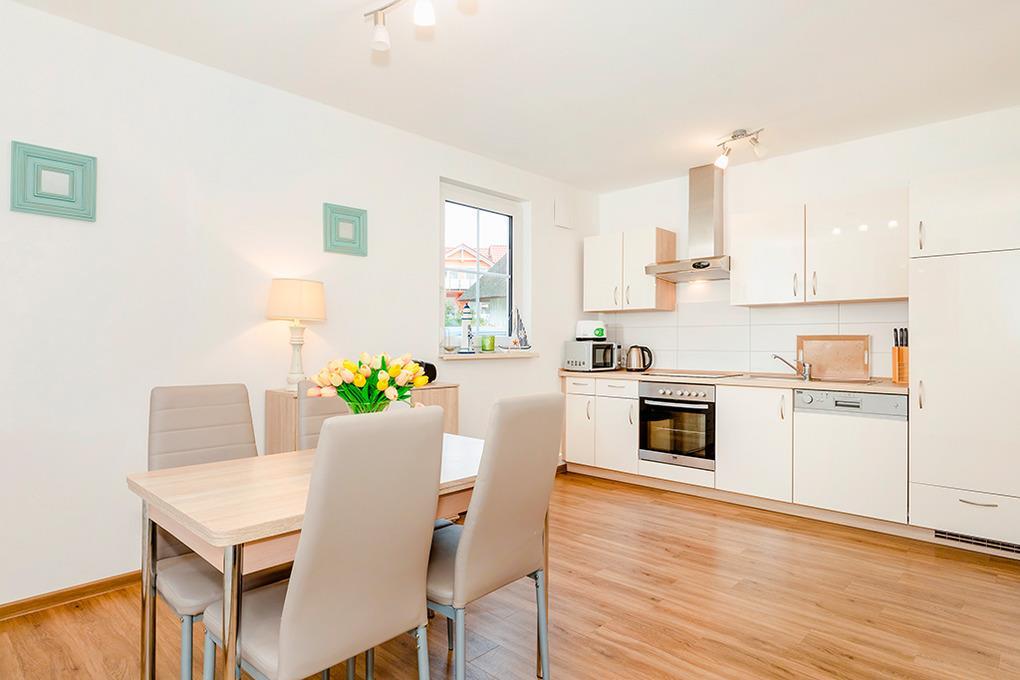 Haus: Schönes Ferienhaus mit zwei Ferienwohnungen, 2016 neu gebaut. Geschmackvolle Einrichtung, moderne Ausstattung: Sat-TV, Radio/CD. Bäder mit Haarföhn, Handtuchwärmern. Fußbodenheizung. Süd-Terrasse oder Süd-Balkon (Sitzmöbel). 500 qm großer Gemeinschaftsgarten mit Spiel- und Liegewiese. Gartenhaus für Fahrräder. 1 Pkw-Stellplätze pro Wohnung. Hinweis: Bei gemeinsamer Anmietung beider Fewos ergibt sich ein Ferienhaus für 4-8 Pers. zum Alleinbewohnen.