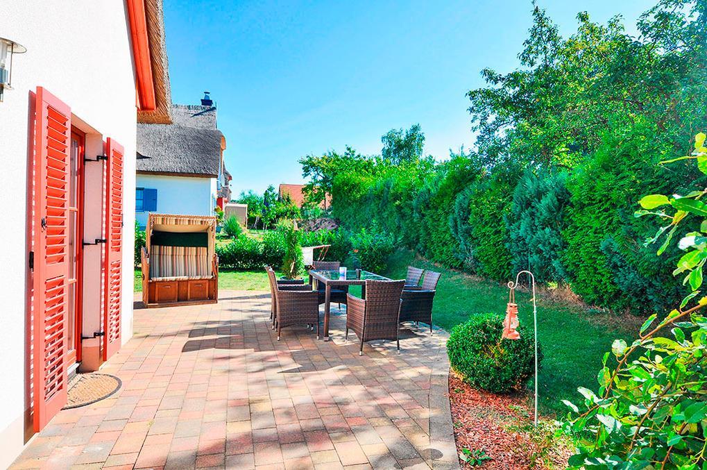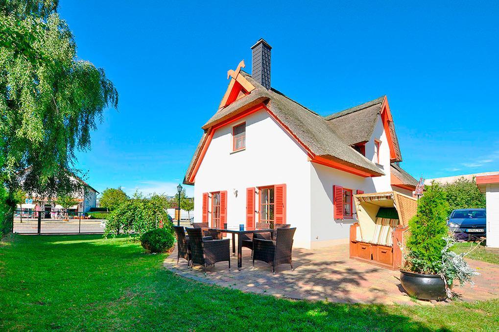 Haus: Komfortables Reetdachhaus mit Kaminofen. Gemütliche Atmosphäre durch geschmackvolle Einrichtung. Nichtraucherhaus. Kostenloser Internetzugang über W-Lan. Zentralheizung. Terrasse mit Sitzmöbeln, Grill, Strandkorb. Kleiner Fahrradschuppen. 2 Pkw-Stellplätze am Haus.