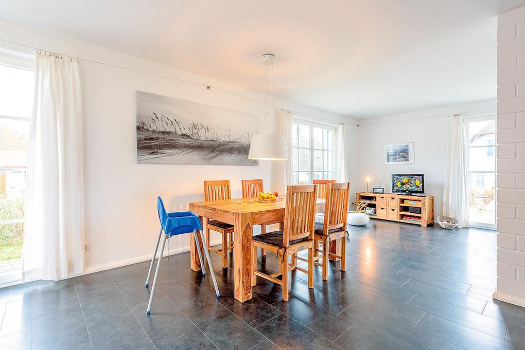 Haus: Schönes Reetdachhaus mit Kaminofen. Moderne Ausstattung, geschmackvolle Möblierung. Zentral-/Fußbodenheizung. Waschmaschine. Nichtraucherhaus. Kostenloser Internetzugang über Wlan. Große Terrasse mit Sitzmöbeln, Grill. Hübscher kleiner Garten. Gartenhaus für Fahrräder. 2 Pkw-Stellplätze am Haus.