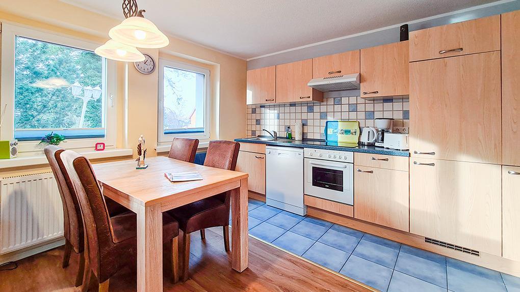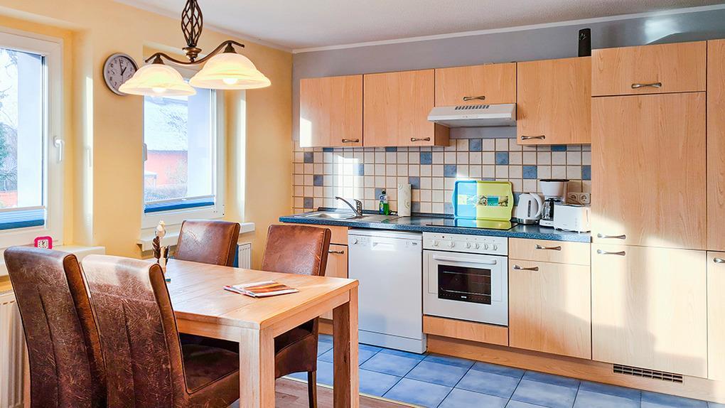 D 16.23 Wohnung 2-4 Pers.: 2-Zimmerwohnung, 33 qm Wohnfläche, 1. Etage (Dachschrägen). Gemütlicher Wohn-/Essraum mit Ausziehcouch (2 Pers.), Sat-TV, Esstisch, Küchenzeile (Backofen, Spülmaschine). Doppelzimmer. Bad/WC. Sitzecke im Garten.