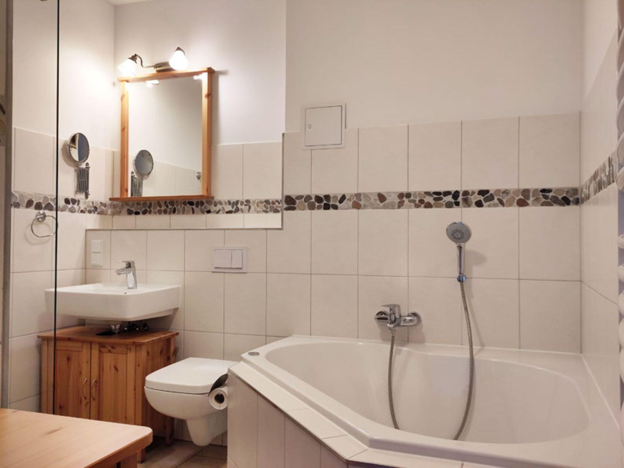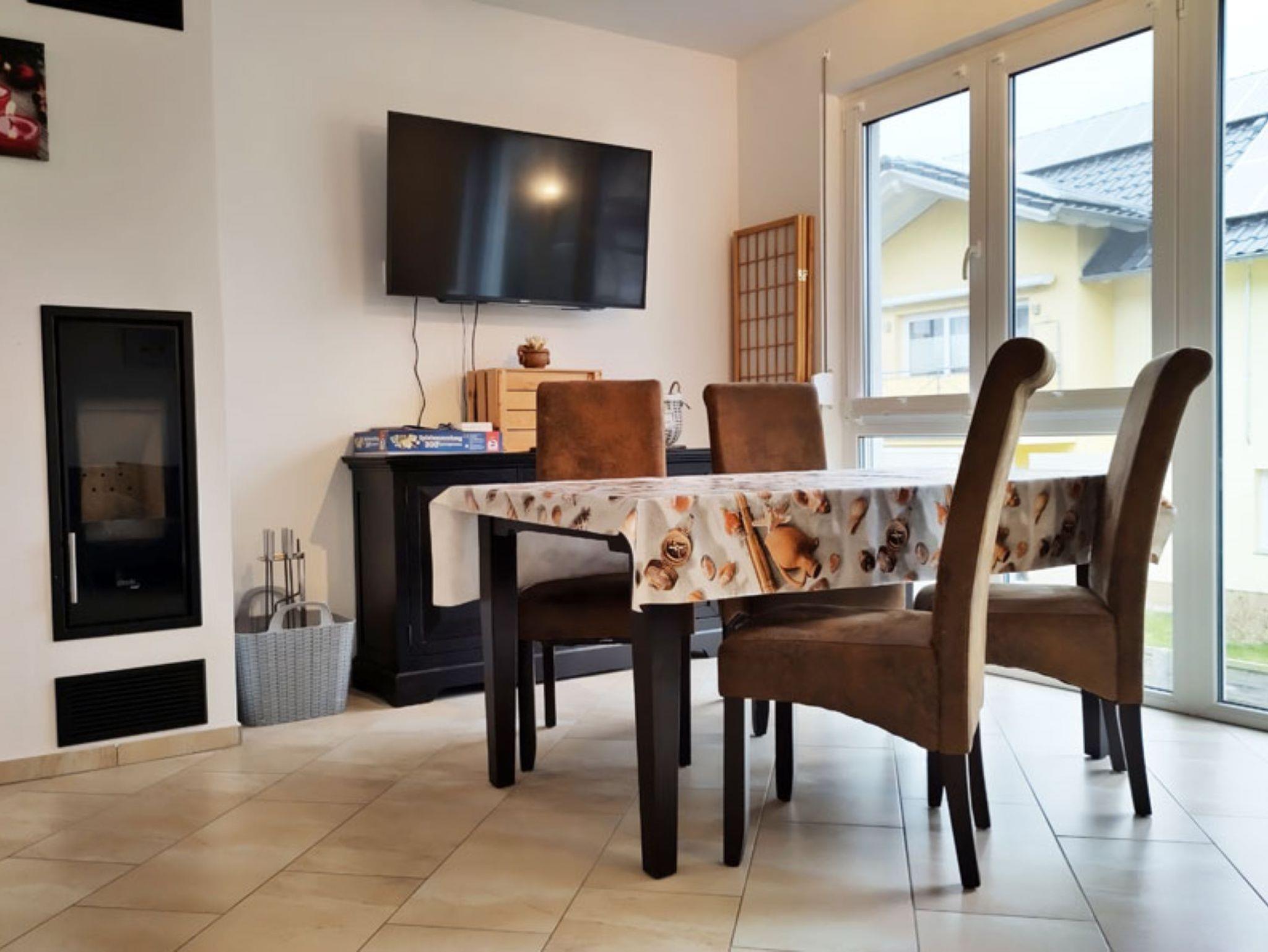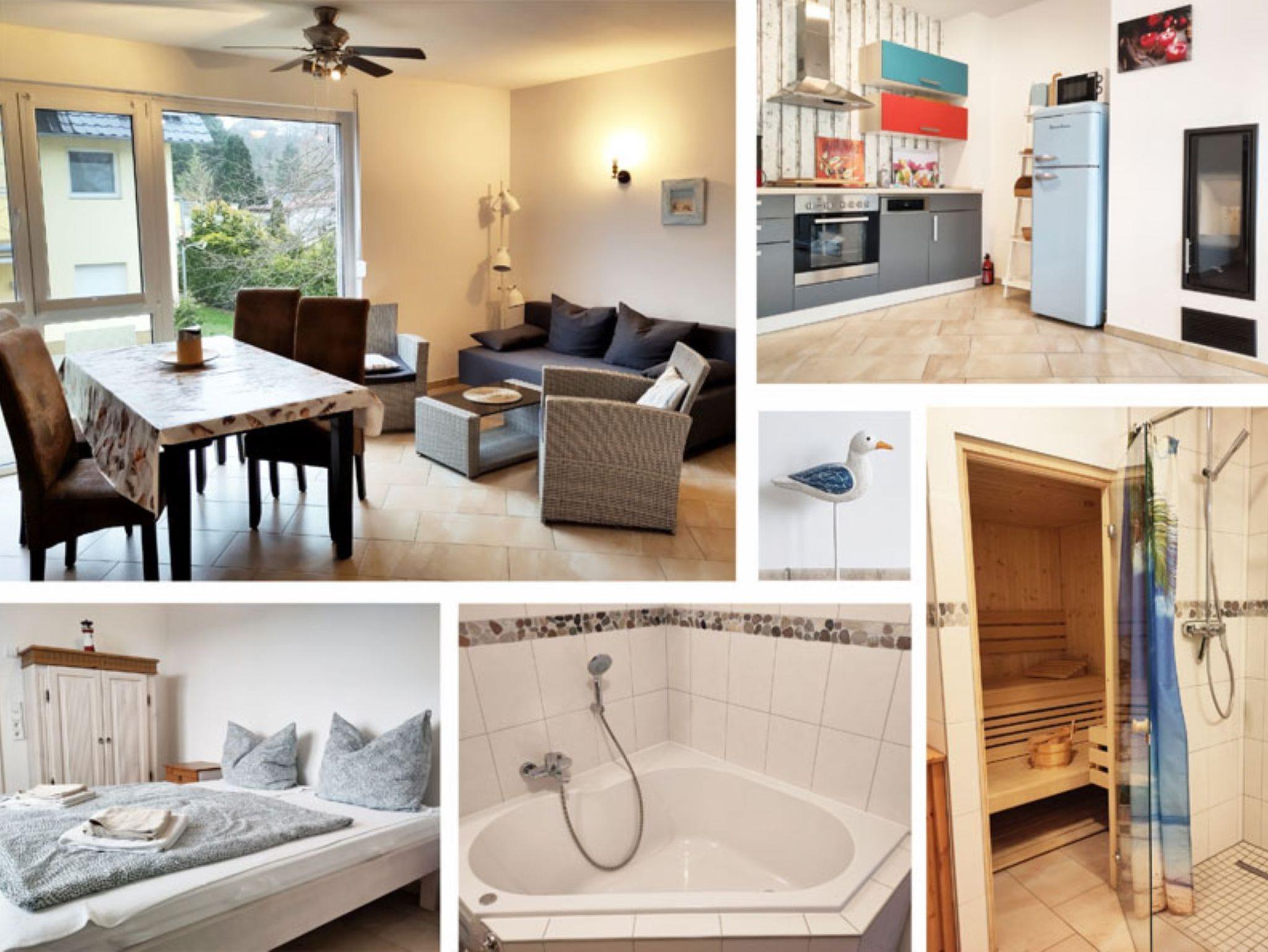 Träumen Sie auch von einem erholsamen Urlaub in einer modernen Ferienwohnung mit gehobener Ausstattung? Hier haben Sie sie gefunden: Über zwei Etagen erstrecken sich 2 Schlafzimmer und ein Bad mit Whirlpool-Badewanne, Dusche und Sauna sowie ein Gäste-WC. Bis zu 4 Personen können sich in dieser vollausgestatteten Maisonettewohnung mit großem Wohn-Essbereich erholen. In der Küche mit Backofen, Cerankochfeld, Kühl-Gefrierkombination und Geschirrspüler finden Sie alles, was Sie brauchen. Der große Esstisch und die bequeme Couch sind perfekt für gemeinsame Stunden im Urlaub. An kalten Tagen können Sie das prasselnde Feuer im Kamin genießen, und im Sommer den Balkon nutzen.