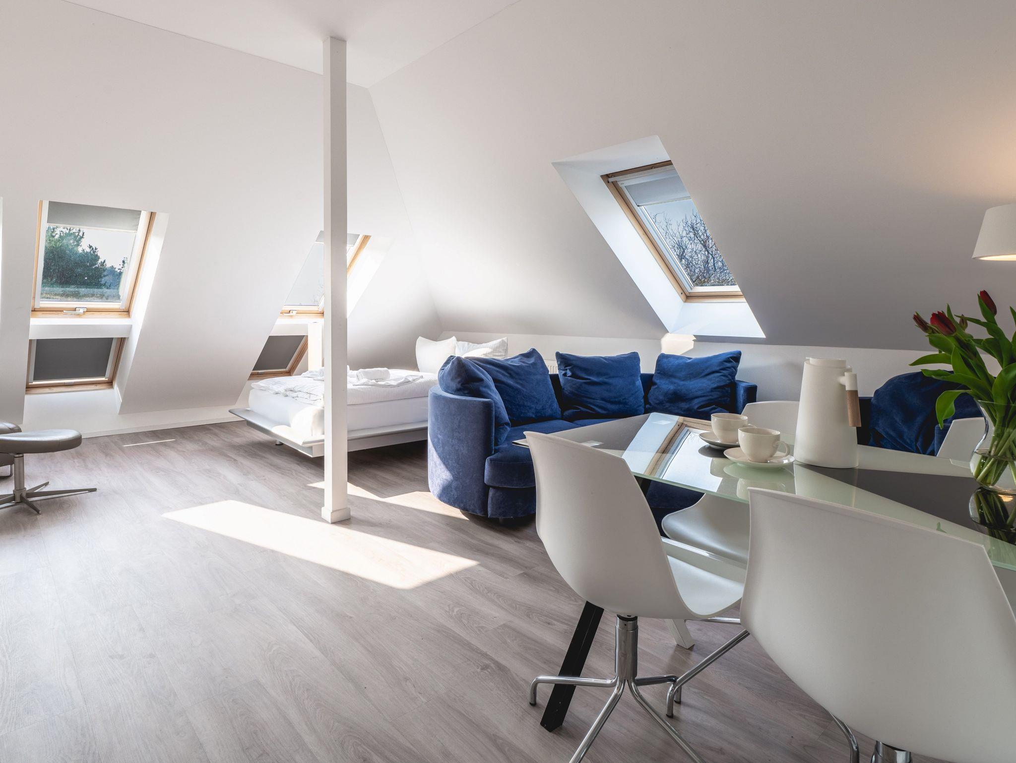 Ein Urlaub mit Weitblick? Dann sind Sie in unserer kuscheligen Wohnung Wasser mit 52 qm genau richtig! Platz ist für vier Personen in einem Schlafzimmer (Doppelbett 140x200) und in einem Wohn/Schlafzimmer (Doppelbett 140x200). Das Haus Fünf Elemente wurde im Jahr 2022 vollständig ausgebaut und modernisiert. Abseits des Trubels und mit wunderbarem Blick durch drei große Lichtbänder auf das Achterwasser lädt die Wohnung zum Entspannen, Lesen und Genießen ein. Auch die Ostsee ist nur einen kleinen Spaziergang von 10 Minuten entfernt. Koserow ist ein Geheimtipp für alle, die sich die Vorzüge des Ostseeurlaubs wünschen und gleichzeitig etwas mehr Ruhe suchen. Mit einem ausgiebigen Spaziergang im Wald, entlang der beeindruckenden Steilküste können Sie Ihren Ausflug abrunden. Wie wäre es zum Ausklang des Tages mit einem gemütlichen Abend am Grill oder an der Feuerschale? Unser weitläufiges Grundstück hält alles für Sie bereit. Bei uns bleiben keine Wünsche offen. Kommen Sie mit dem Auto oder vielleicht ganz sportlich mit dem Fahrrad? Für beides haben wir selbstverständlich einen Platz auf dem Grundstück. Das ist noch längst nicht alles. Sie finden bei uns kostenfreies WLAN, Bio-Kamin, Smart-TV mit Streaming Funktion, Geschirrspüler, Kühlschrank mit Gefrierfach, Backofen mit Ceran-Kochfeld, Mikrowelle, Wasserkocher, Kaffeemaschine, Toaster, Föhn, Babybett, Babyhochstuhl und vieles mehr.