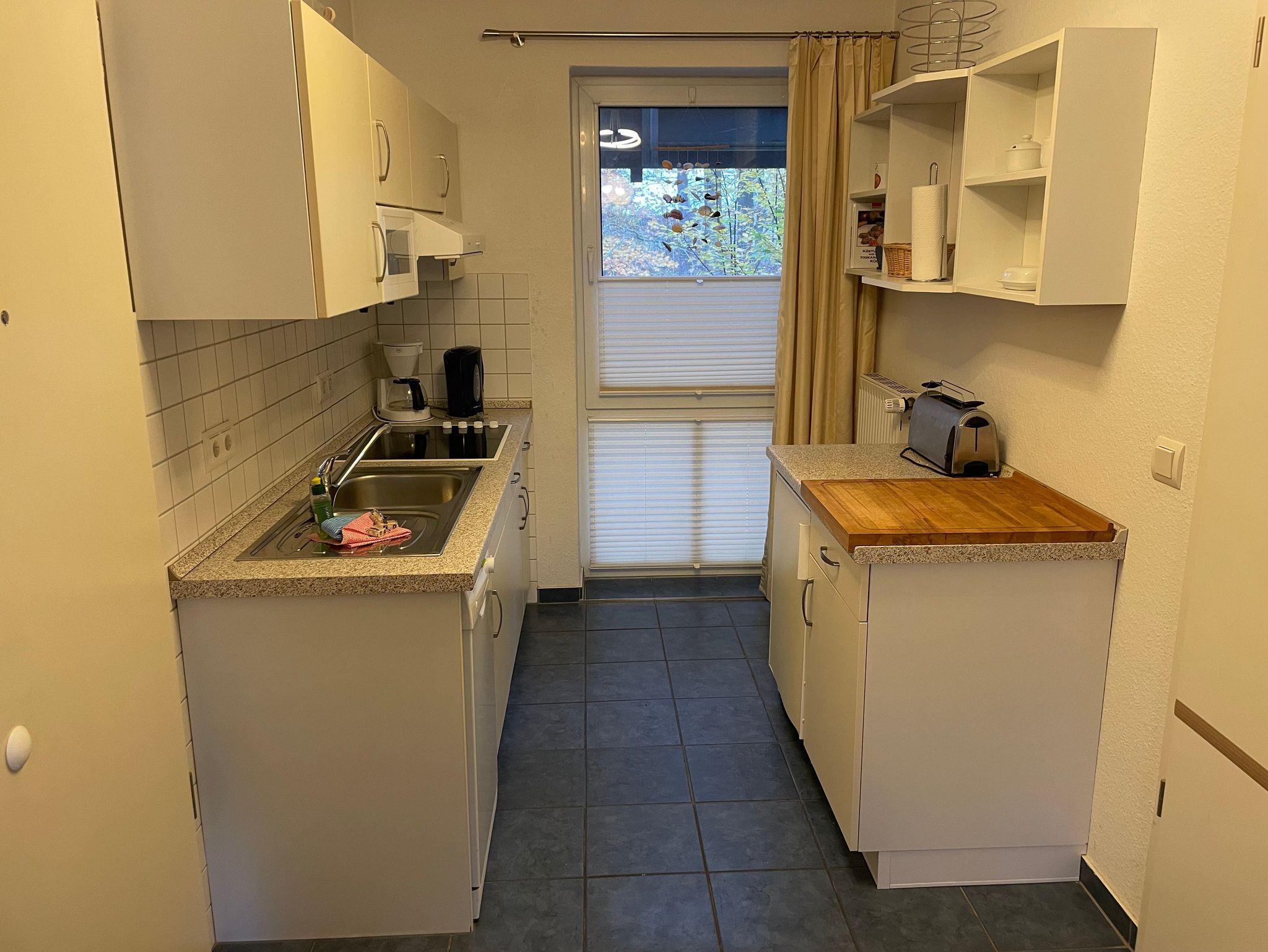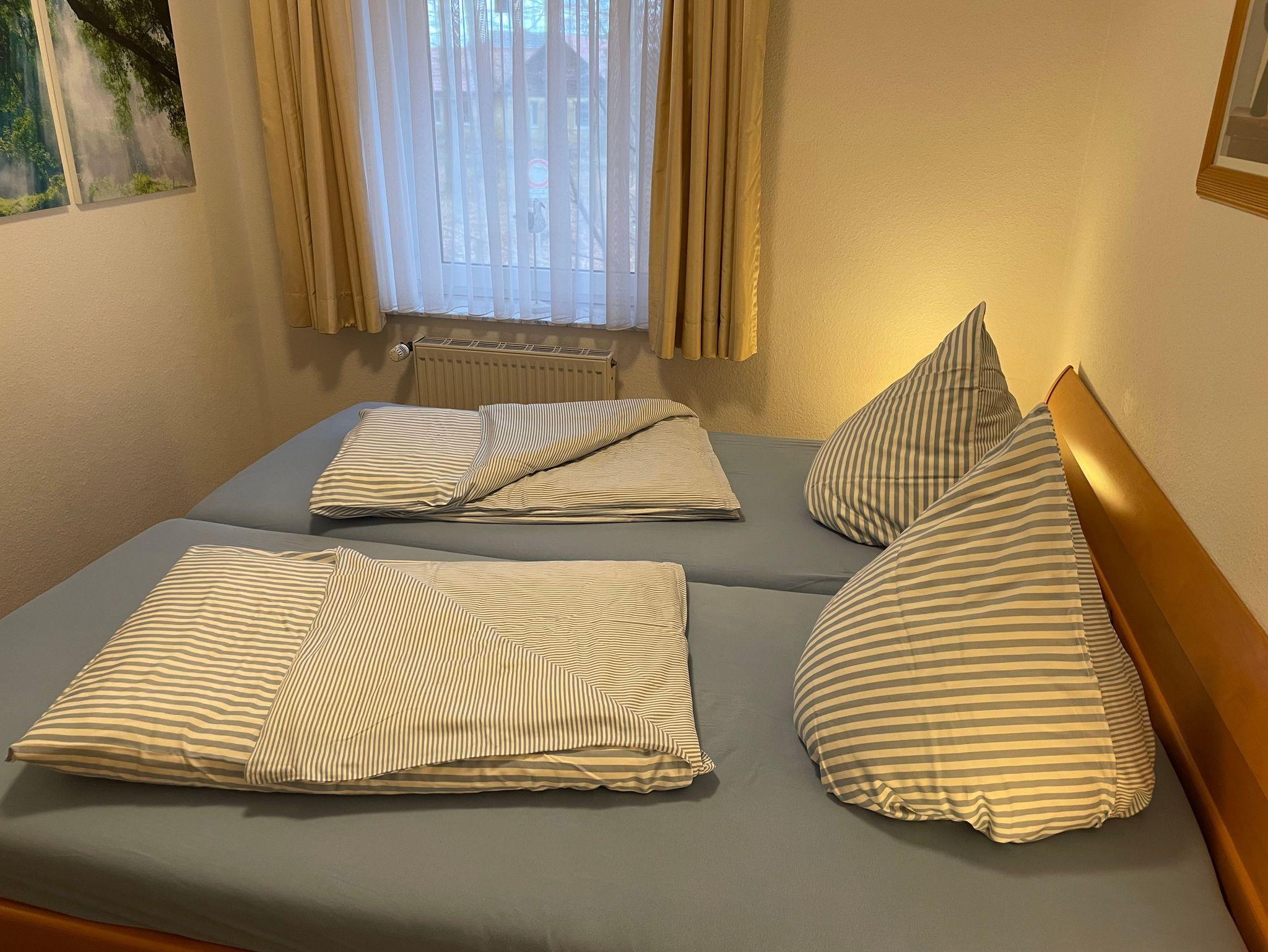Die Nichtraucherwohnung innerhalb der kleinen Ferienanlage 'Seeblick' befindet sich im 1.Obergeschoss eines Gästehauses (Baujahr 1999) und verfügt über Dusche/WC, Wohnraum mit TV, Radio,offener Küche, Kaffeemaschine, Kühlschrank, usw. und Zugang zum möblierten Balkon , sowie über ein Schlafzimmer. Sie ist zentralbeheizt und für 2-4 Personen geeignet (Doppelbett im Schlaf- und Schlafcouch im Wohnraum). Bettwäsche/Handtücher im Set können bei Bedarf gemietet werden.