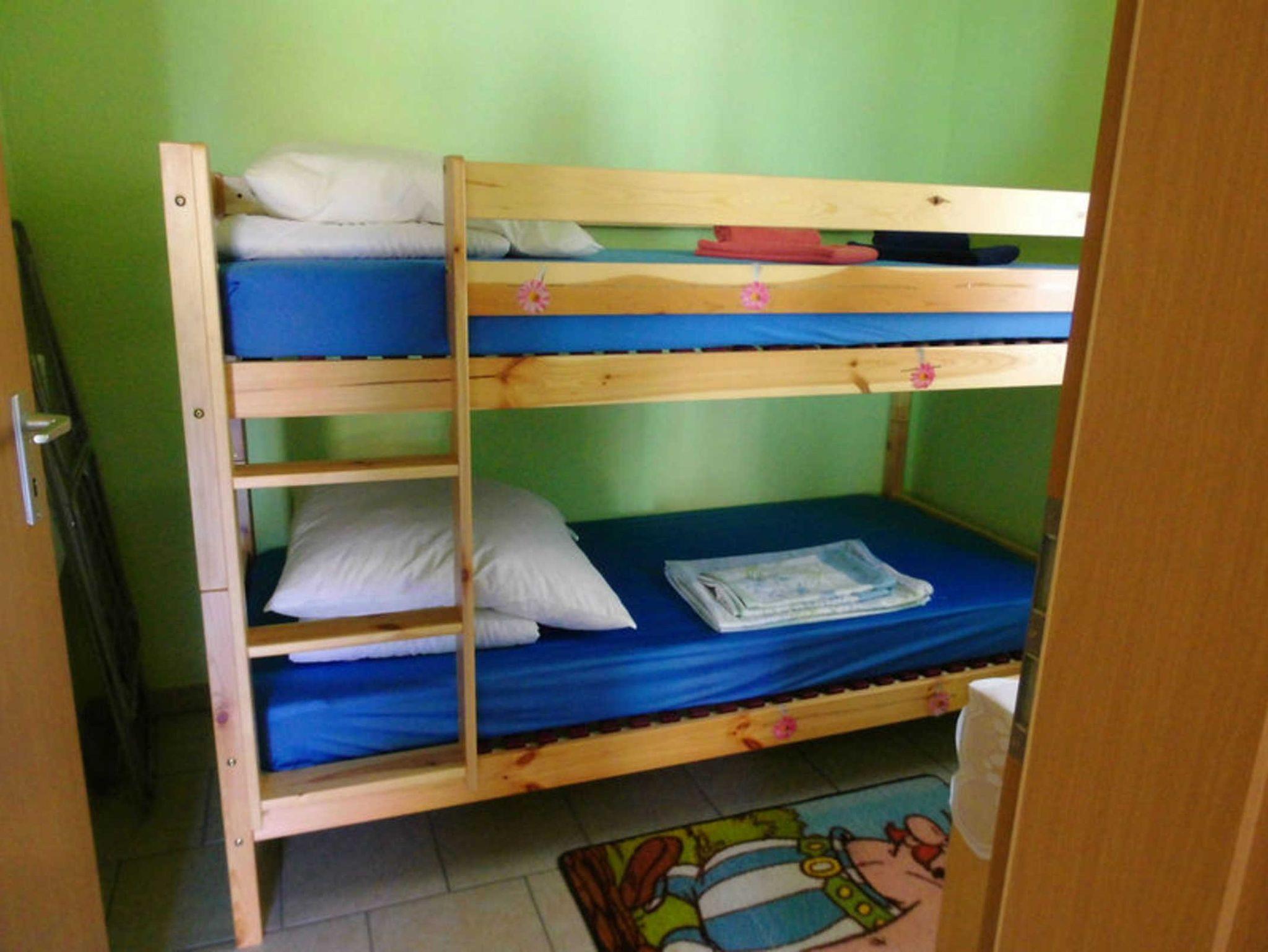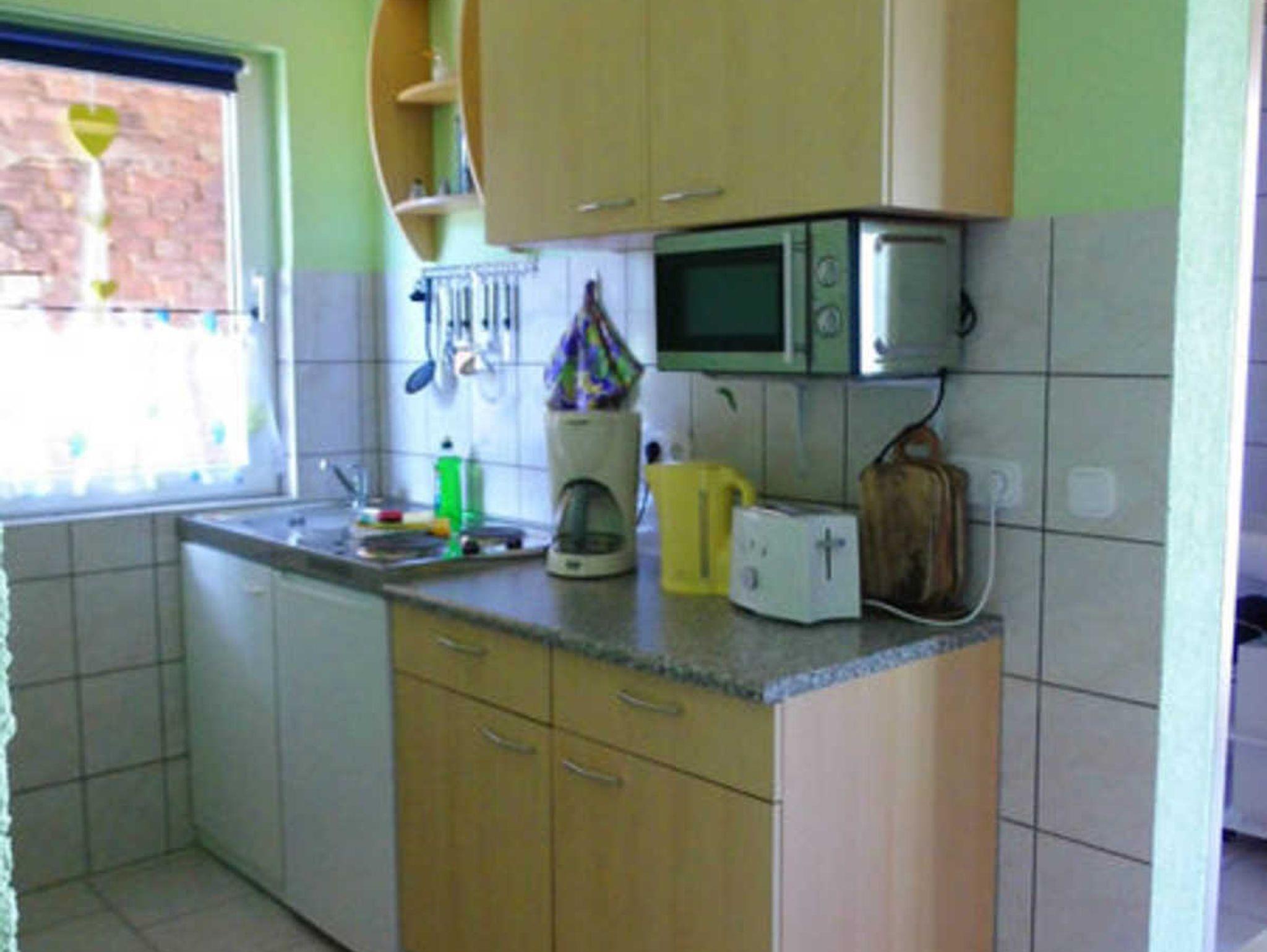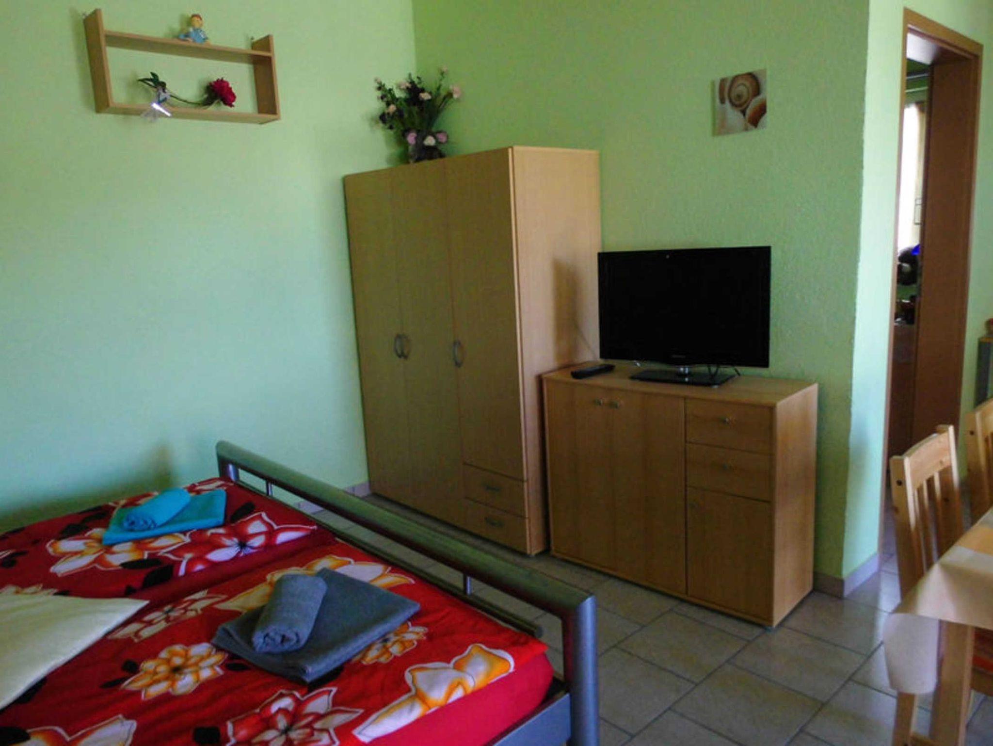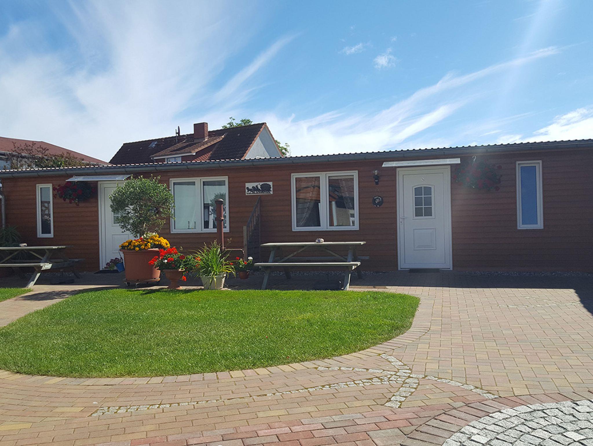 2 sehr schöne Ferienwohnungen in einem Doppelbungalow auf dem Grundstück des Vermieters. Vor jeder Ferienwohnung befindet sich eine Terrasse mit Sitzmöbeln. Für die Gäste besteht die Möglichkeit, auf dem Grundstück zu grillen. Die Ferienwohnungen haben einen kombinierten Wohn- und Schlafraum mit Doppelbett, Esstisch, Couchgarnitur, Flach-TV und eine integrierte Küchenzeile mit Wasserkocher, Toaster, Kaffeemaschine, Mikrowelle, 2-Plattenkochherd und einem Kühlschrank mit kleinem Gefrierfach. Die Wohnungen sind gefliest. Zu den Wohnungen gehört jeweils ein Kinderschlafzimmer mit Etagenbett. Ein Kinderreisebett kann gestellt werden. Die Bäder jeweils mit Dusche und WC.