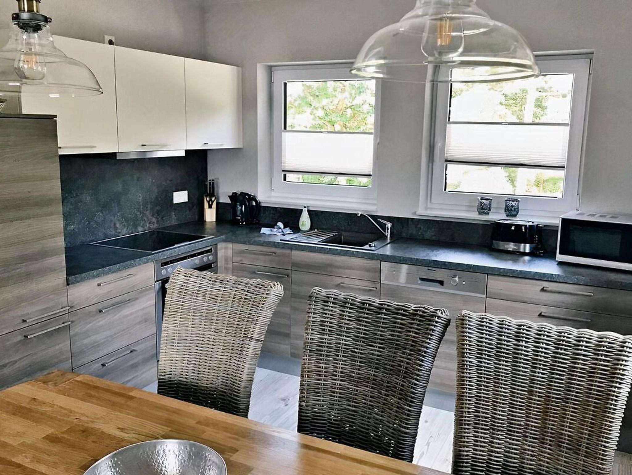 - Küchenbereich mit Küchenzeile (Backofen, Mikrowelle, 4 Zonen - Induktionskochfeld, Kühlschrank mit