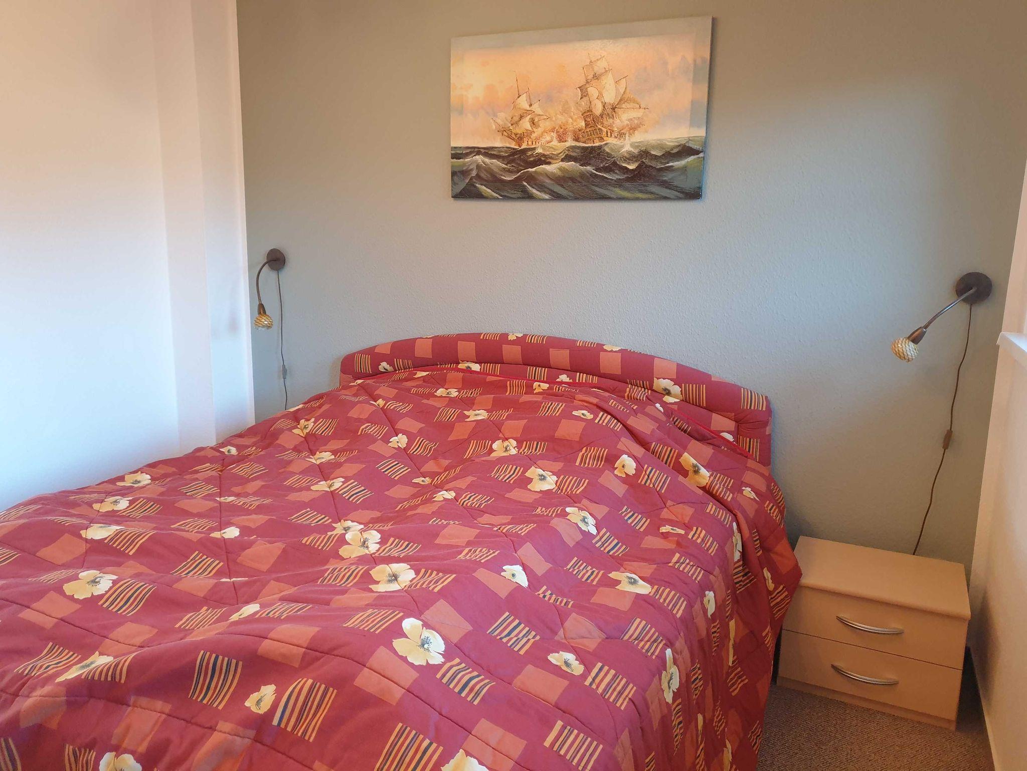 3 Zimmer Ferienwohnung im 1. Obergeschoss einer sehr schön angelegten Ferienanlage. Die Ferienwohnung ist im Wohnbereich ausgestattet mit einer gemütlichen Eckcouch, einem elektr. Eck-Kamin und einer offenen Küche mit einem großen Esstisch. Es gibt zwei Schlafzimmer und der Strand ist nur ca. 8 Gehminuten entfernt.