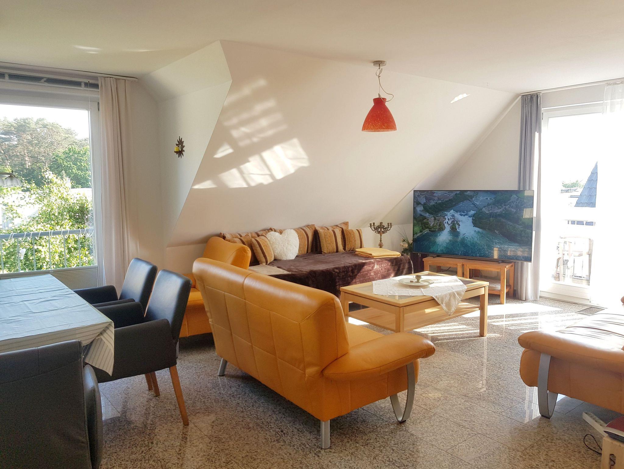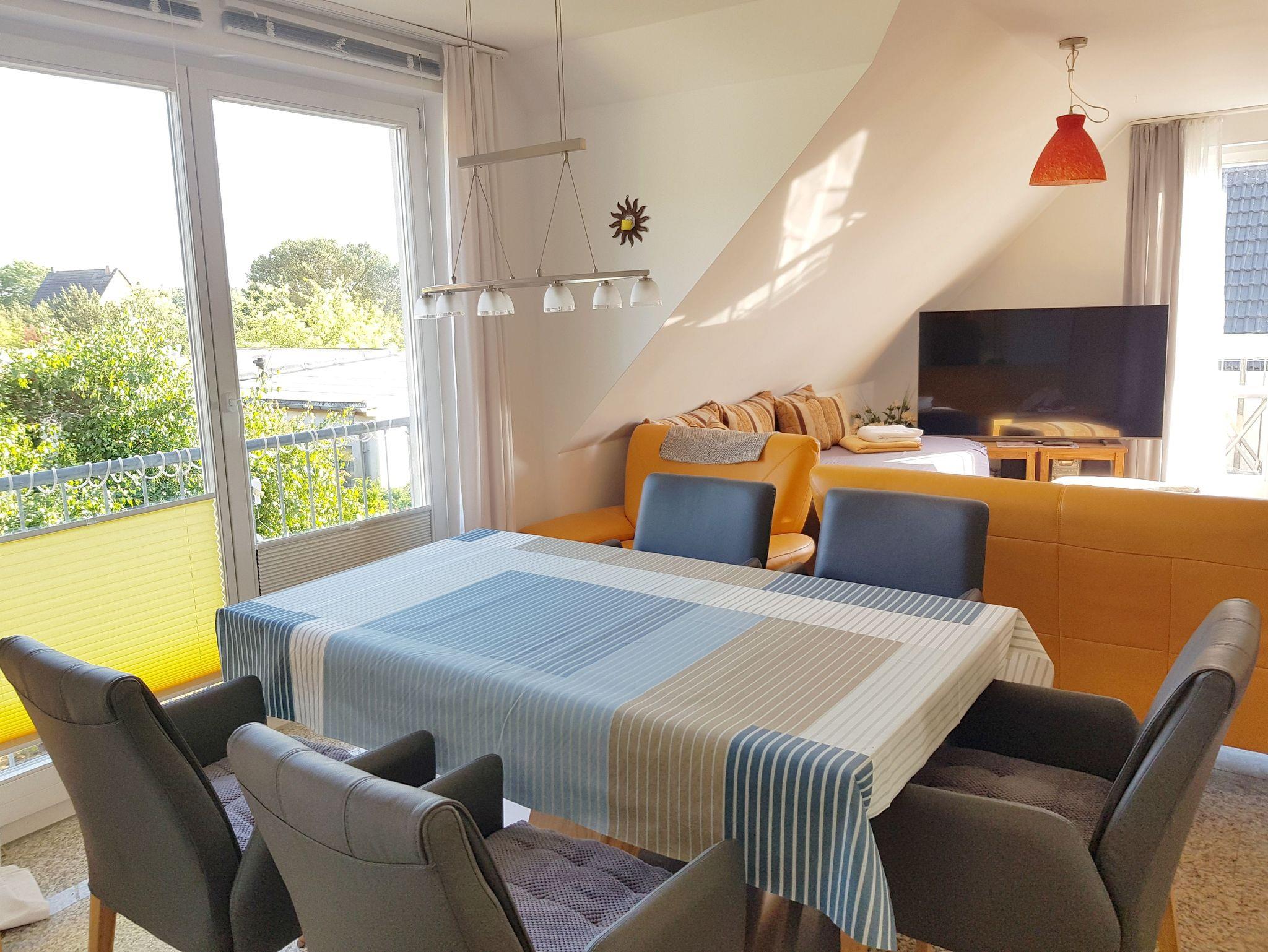 Freistehendes Zweifamilienhaus, großzügige Wohnung im Obergeschoss mit Balkon, für bis zu 4 Personen, Aufbettung für 1 Person möglich. Ruhige Lage, 1 Gehminute bis zum Küstenwald. Neues, hochmodernes Haus, 80 m² Wohnfläche, Balkon mit Wasserblick.