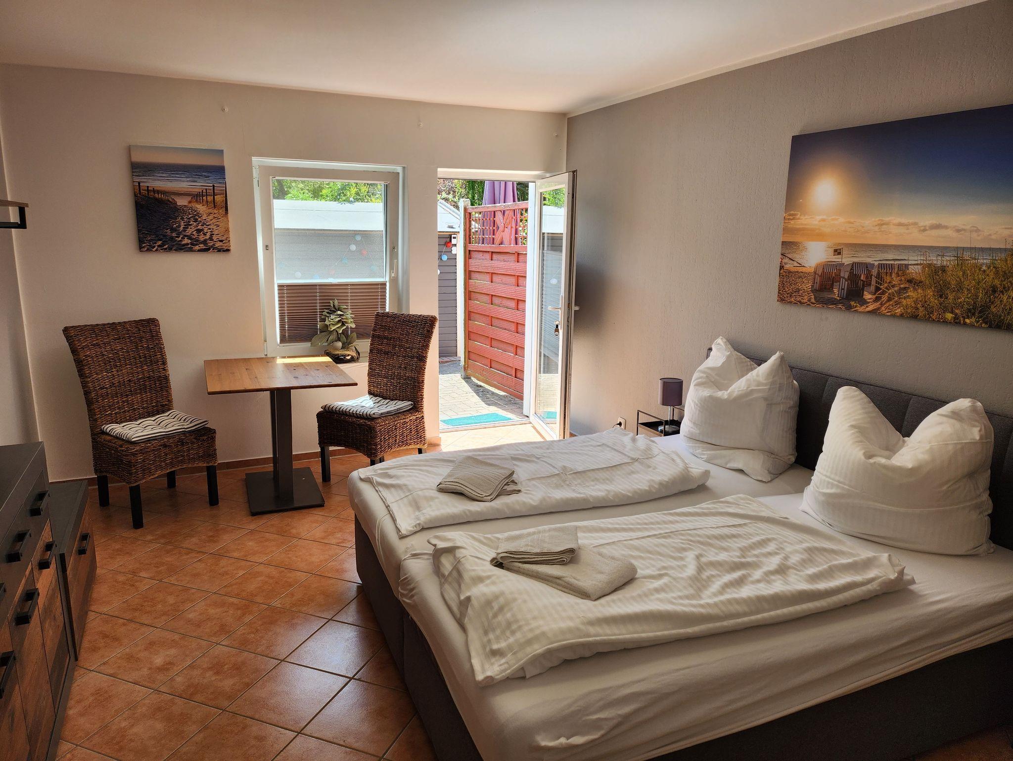 Die Pension Seeräubär in Koserow bietet gemütliche Doppelzimmer mit separater Küche und Terrasse, nahe der Ostsee und dem Küstenwald.