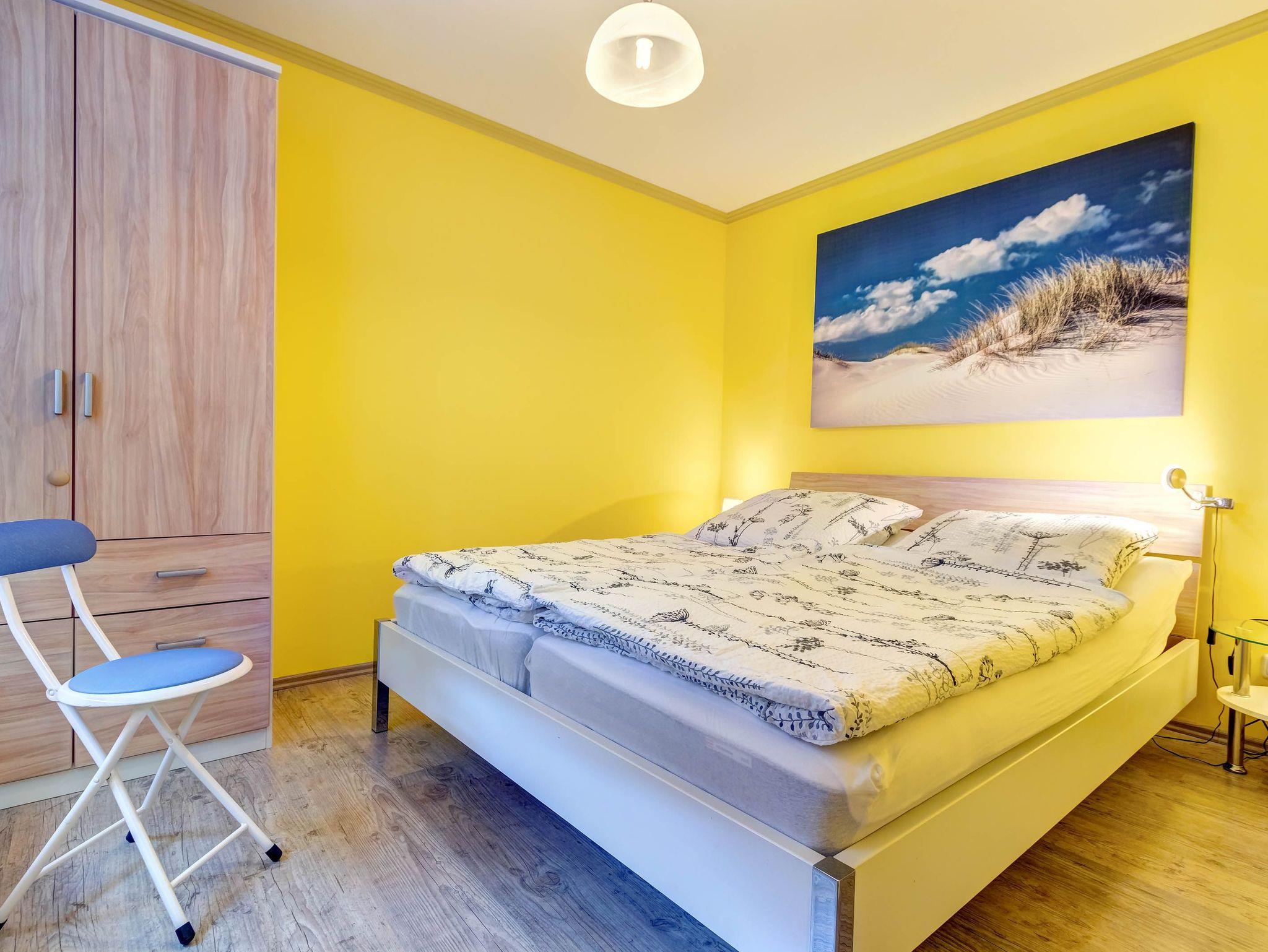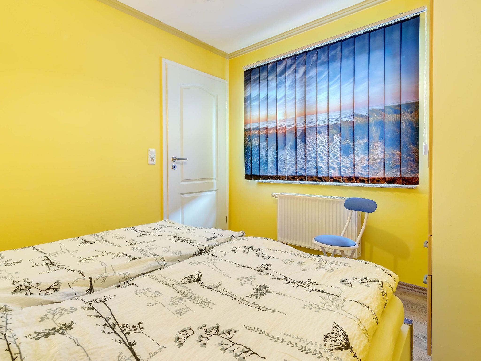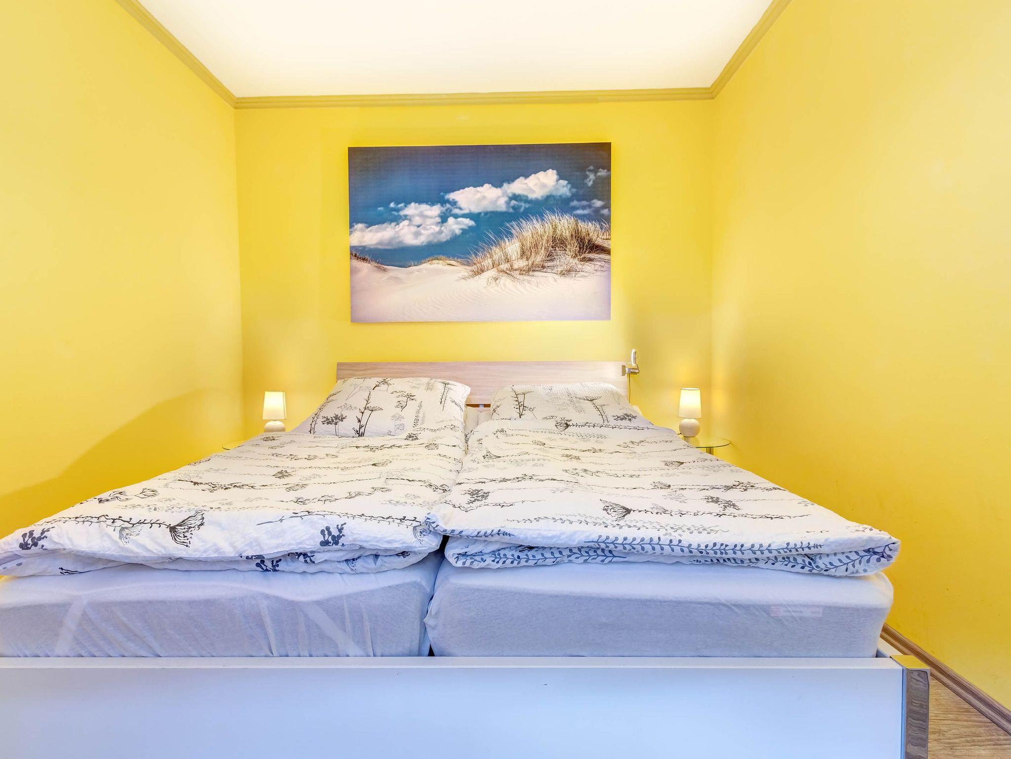 Die gemütliche 2-Raumwohnung für bis zu 4 Personen (plus ein Kleinkind bis 2 Jahre) ist modern eingerichtet und verfügt über ein großes Doppelbett im Schlafzimmer. Bettwäsche und Handtücher können selbst mitgebracht oder gegen Gebühr hinzugebucht werden. Bei Buchung des Wäschepakets sind die Betten bereits bezogen.