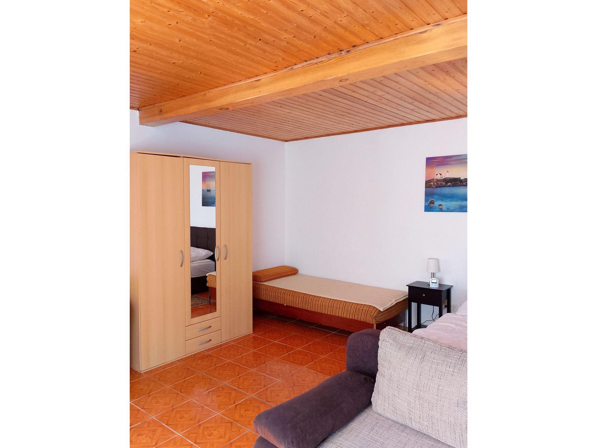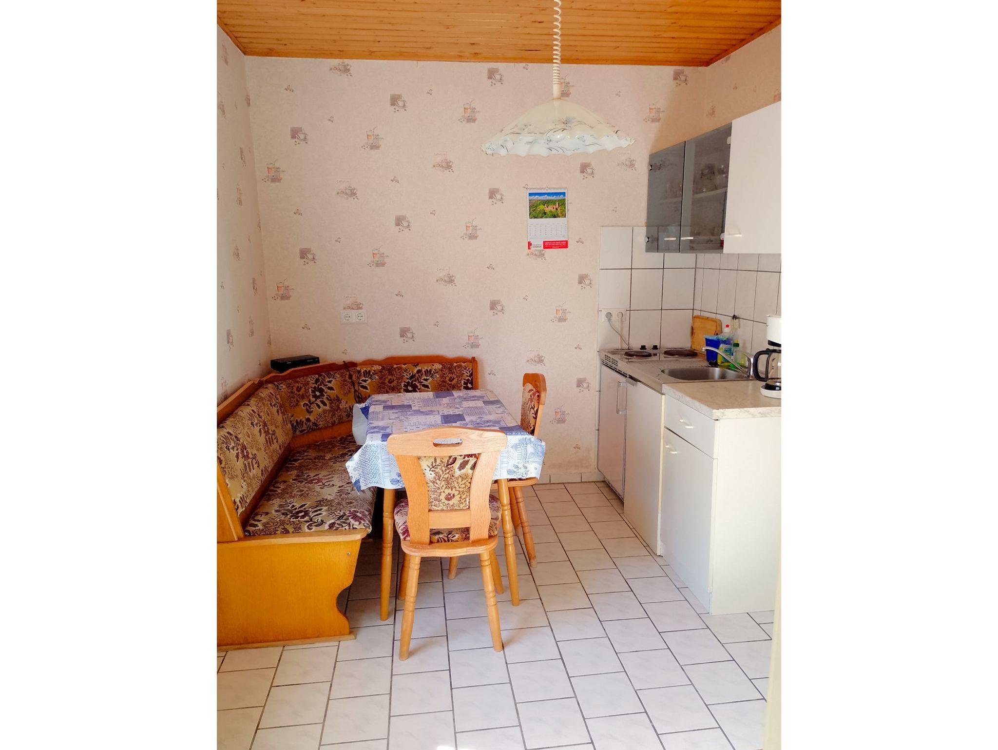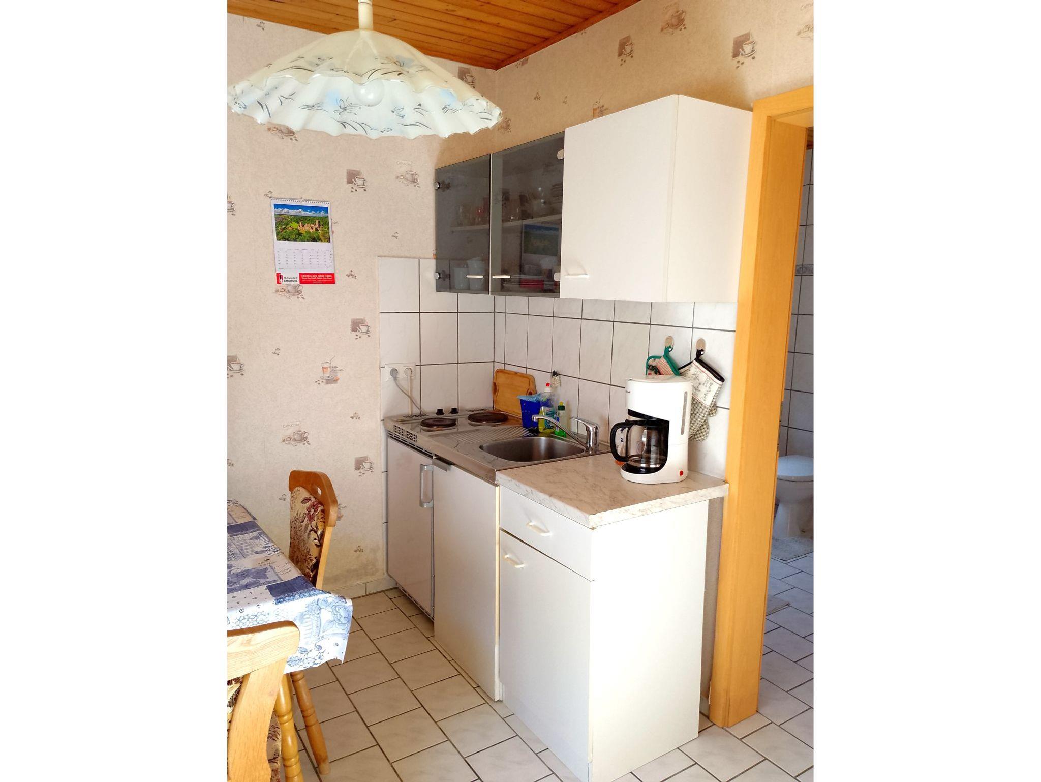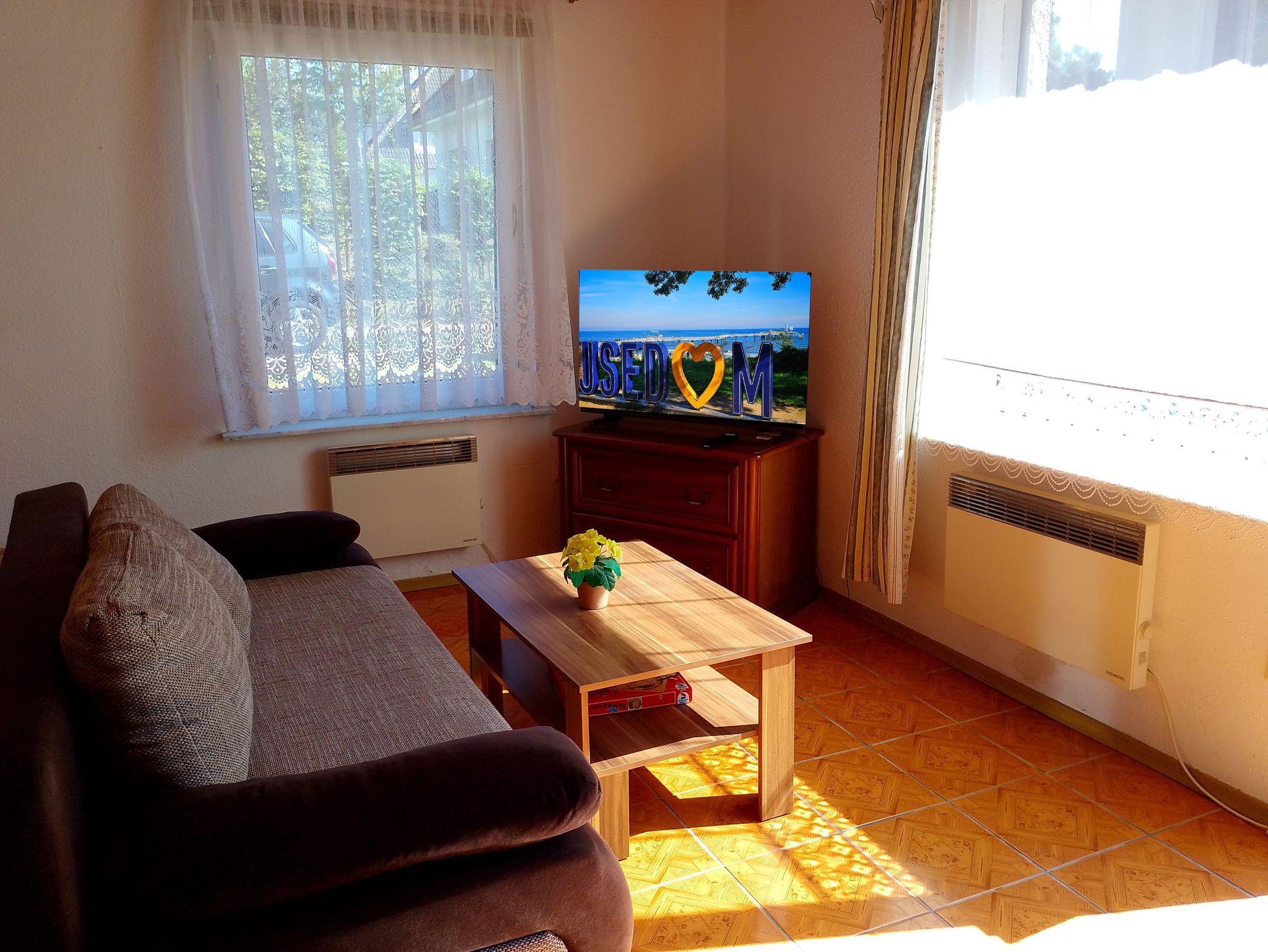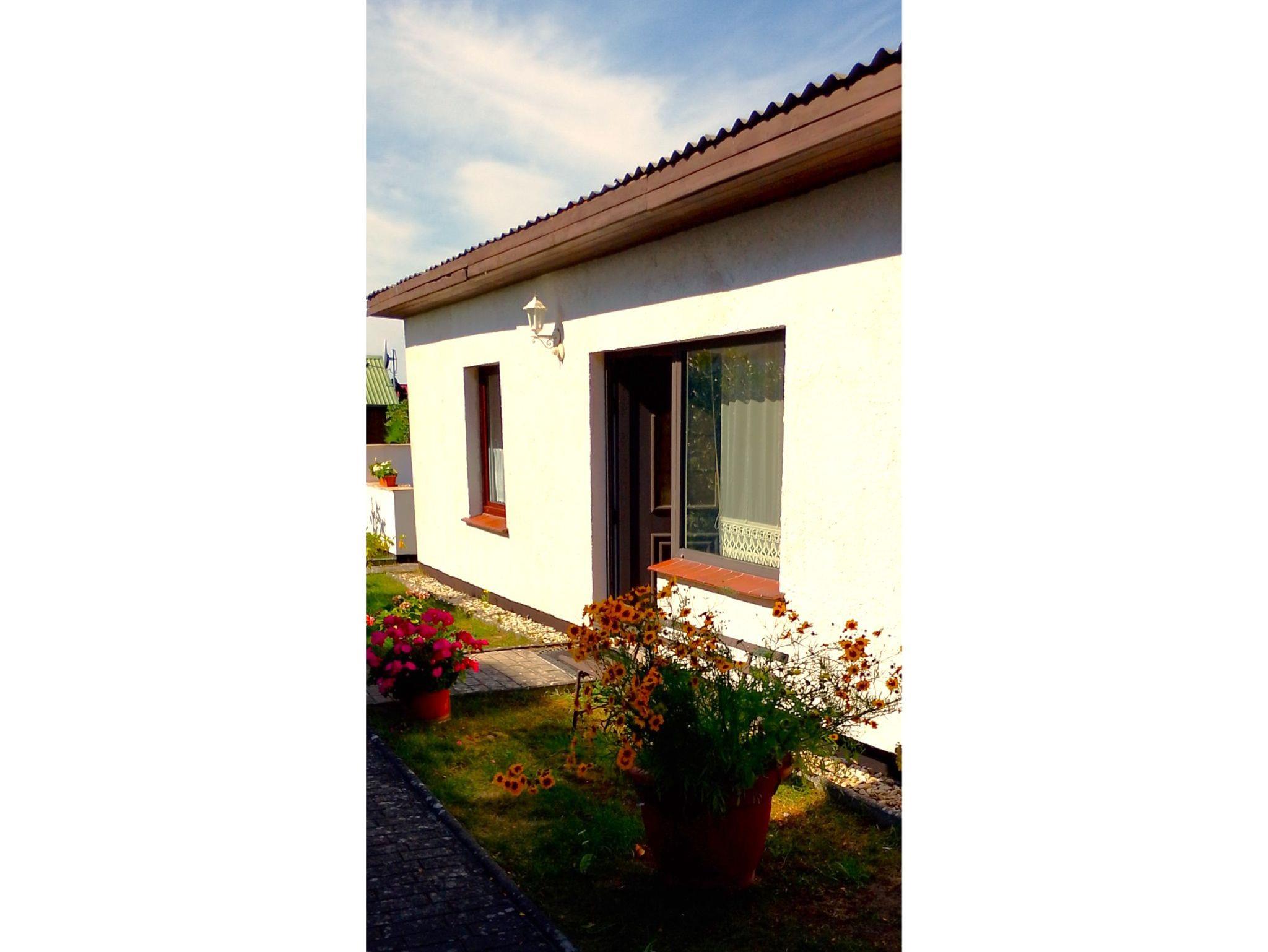 Ferienwohnung für 3 Personen, ca. 35 qm Wohnfläche, 800 m bis zum Strand, integrierte Küche mit 2-Platten-Kochfeld, Kühlschrank, Kaffeemaschine, Wasserkocher, Kabel - TV und Radio. Sitzecke mit Grill und Parkplatz auf dem Grundstück.