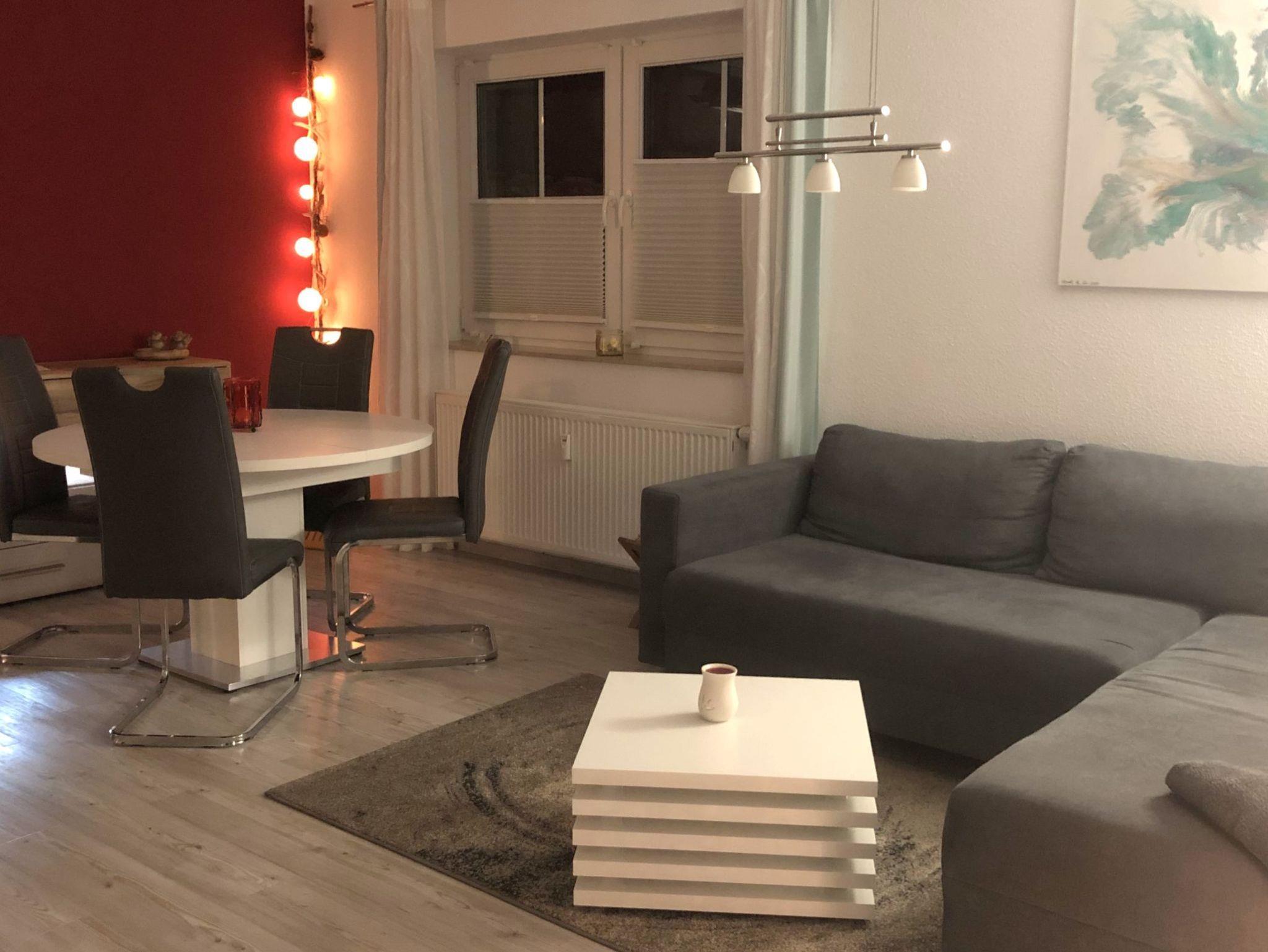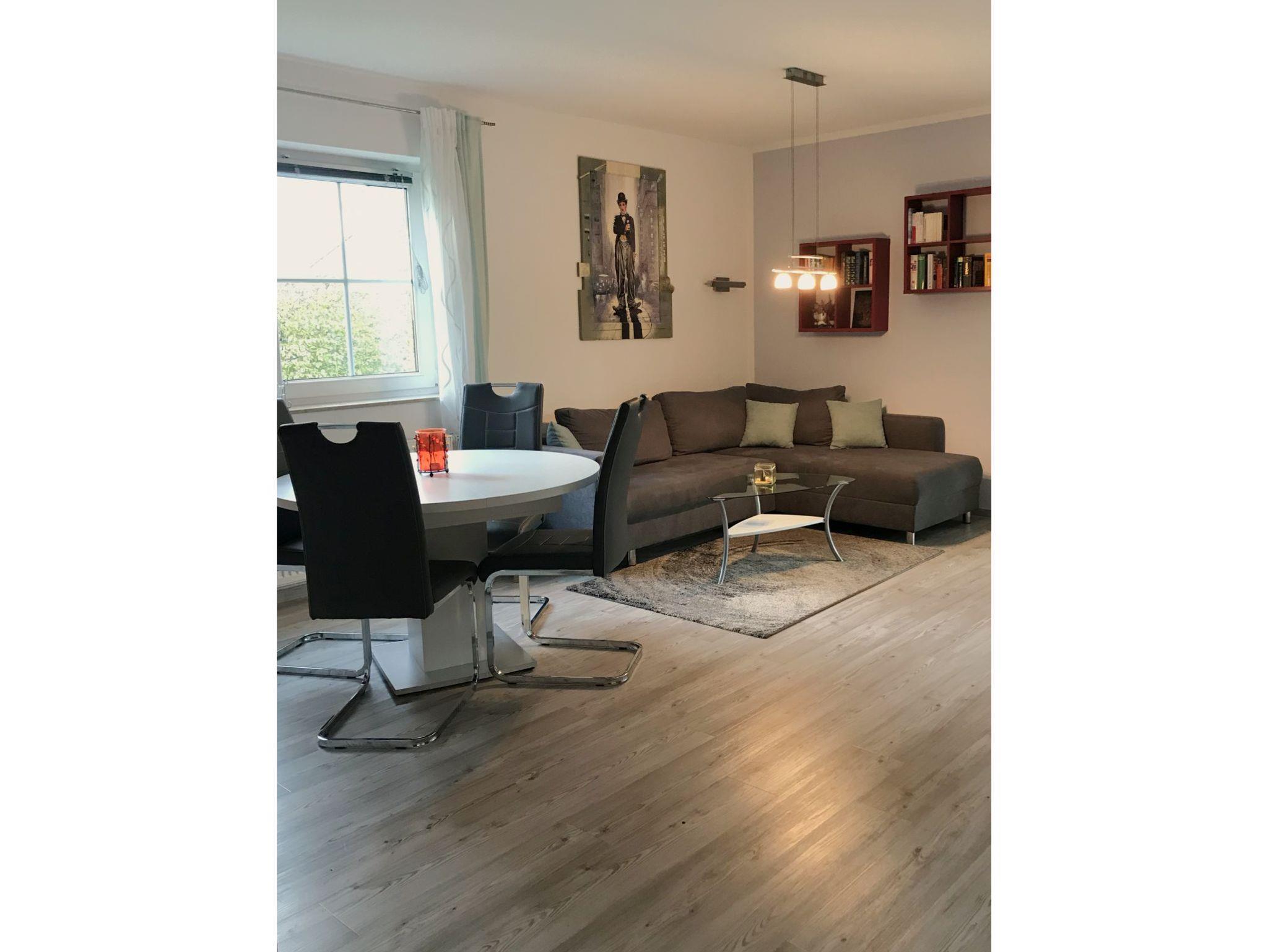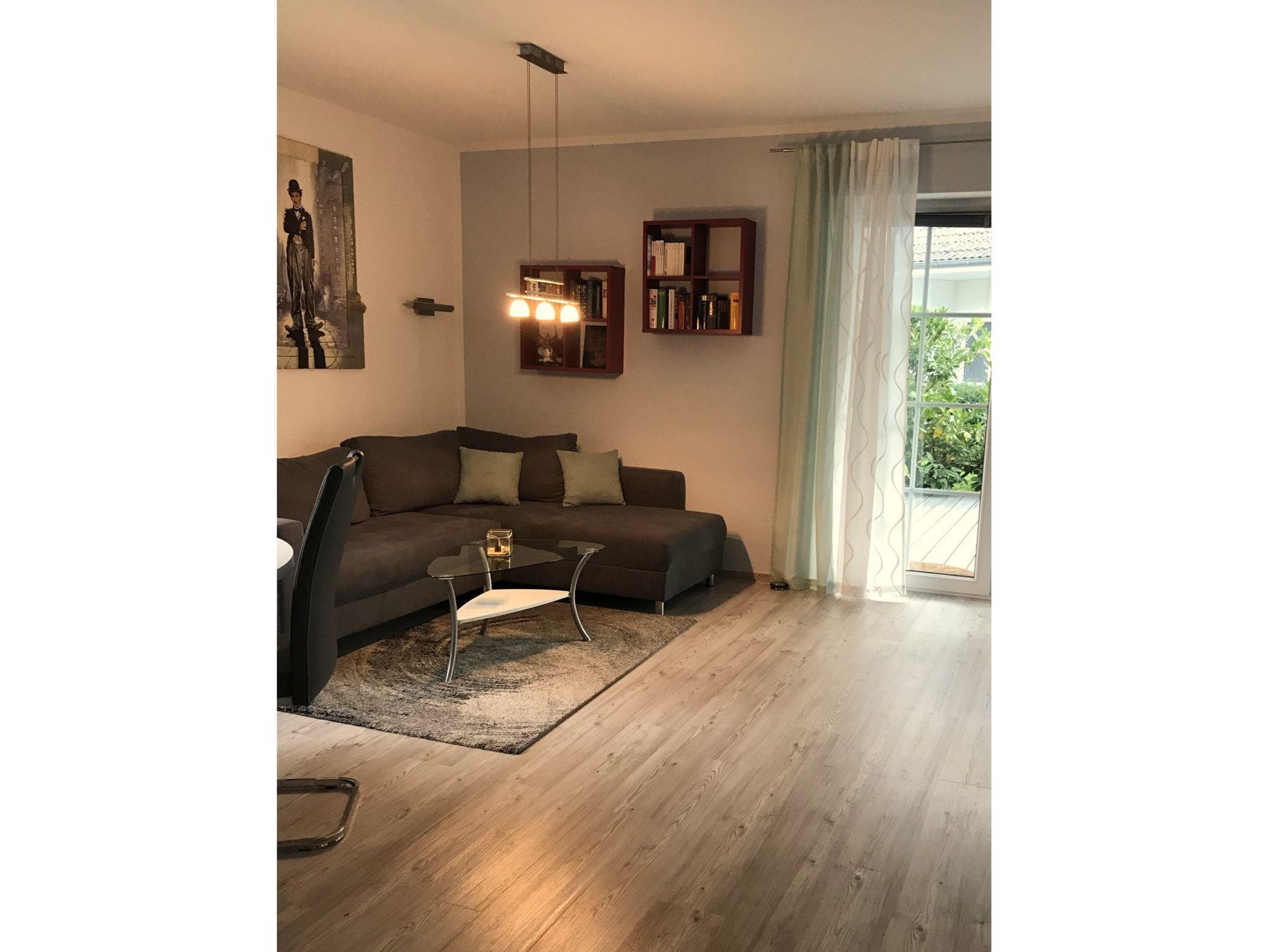 Unsere liebevoll, privat geführte, ca. 68 m² große Nichtraucher-Ferienwohnung ist ebenerdig und besitzt eine Terrasse. Sie befindet sich mit weiteren 3 Wohnungen in einem freistehenden Wohnhaus im Einfamilienhausstil. Sie gehört zu einer Wohnanlage von 4 Wohnhäusern, die unterirdisch mit einer Tiefgarage verbunden sind und oberirdisch in eine großzügige Garten- und Rasenanlage eingebettet sind. Unser Wohnhaus befindet sich in zweiter Baureihe zur kaum befahrenen Spielstraße, an der sich dieser Wohnkomplex befindet. Hier findet man Ruhe und Entspannung. Die Wohnung ist komplett ausgestattet.