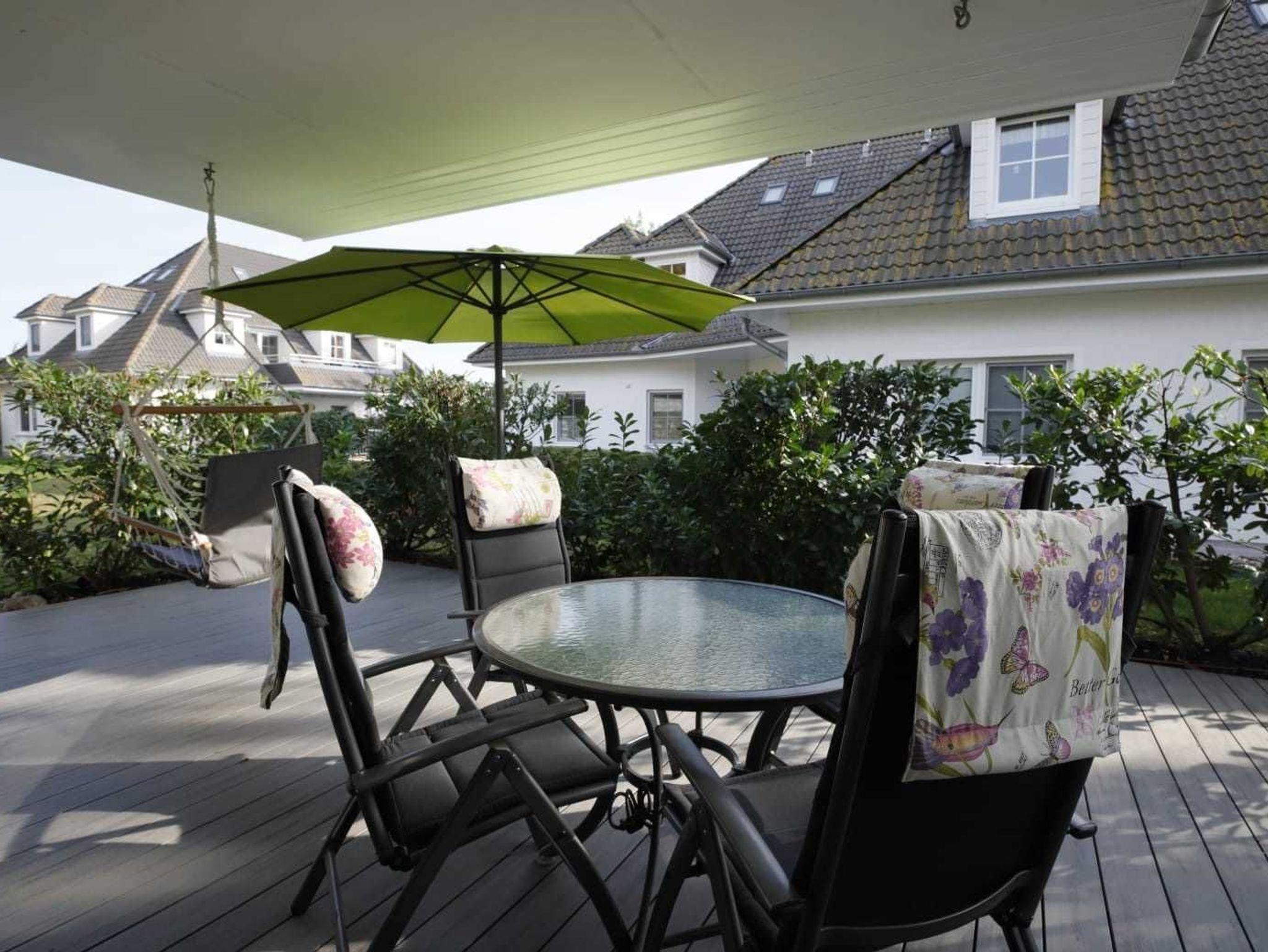 Moderne Ferienwohnung mit Terrasse in ruhiger Lage nahe Koserow, ideal für Familien und Radfahrer.