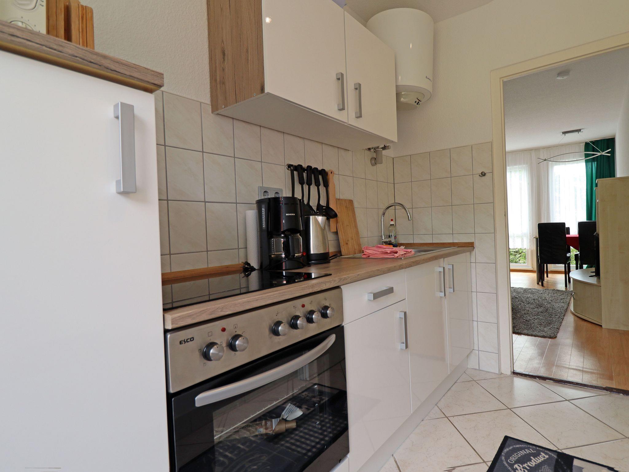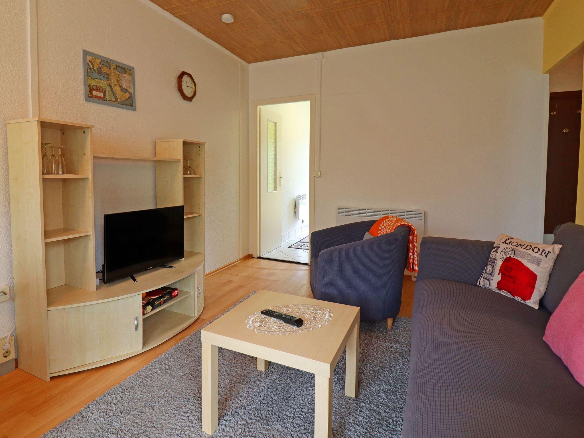 modernisiertes Fereinhaus, Ferienhaus mit 2 Schlafzimmern, Wohnzimmer mit Essgruppe, TV, Radio, Terasse und Sitzgruppe, Du/WC, Küche