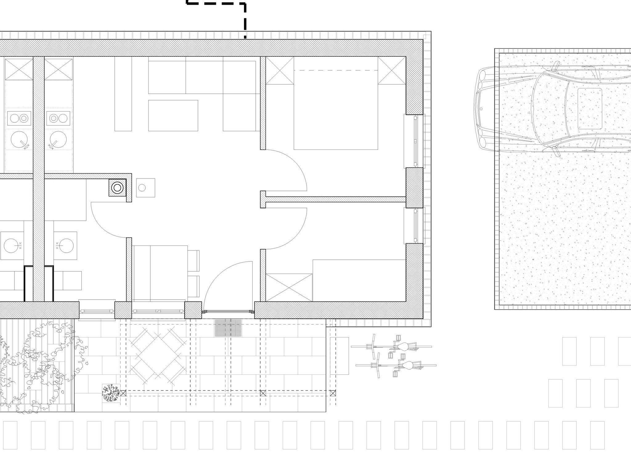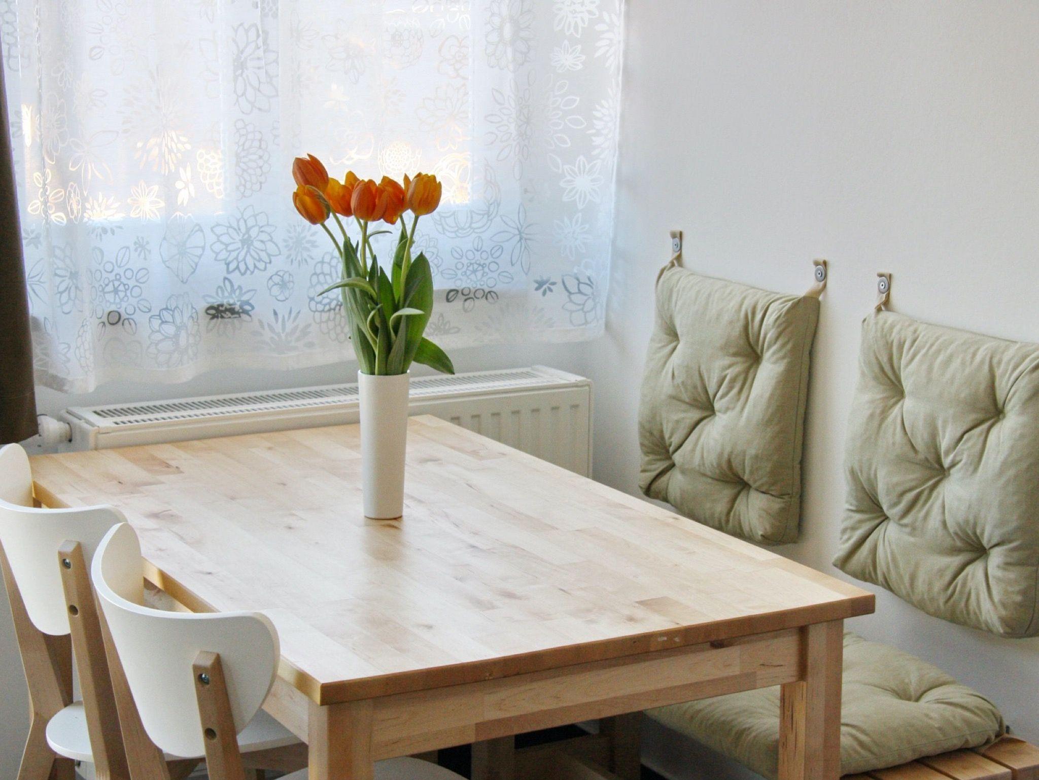 Ferienwohnung 1 bietet Platz für 4 Personen. Es gibt ein Wohnzimmer, zwei Schlafzimmer, Küche und Bad. Betreten wird die Ferienwohnung über den Wohn- und Essbereich. Vorgelagert befindet sich hier eine sonnige Terrasse. Das Wohnzimmer ist mit Couch und Kamin zum Ausruhen gerüstet. An das Wohnzimmer grenzt die offene Küche. Ein Schlafzimmer ist mit einem Doppelbett, das andere mit einem Doppelstockbett ausgestattet.