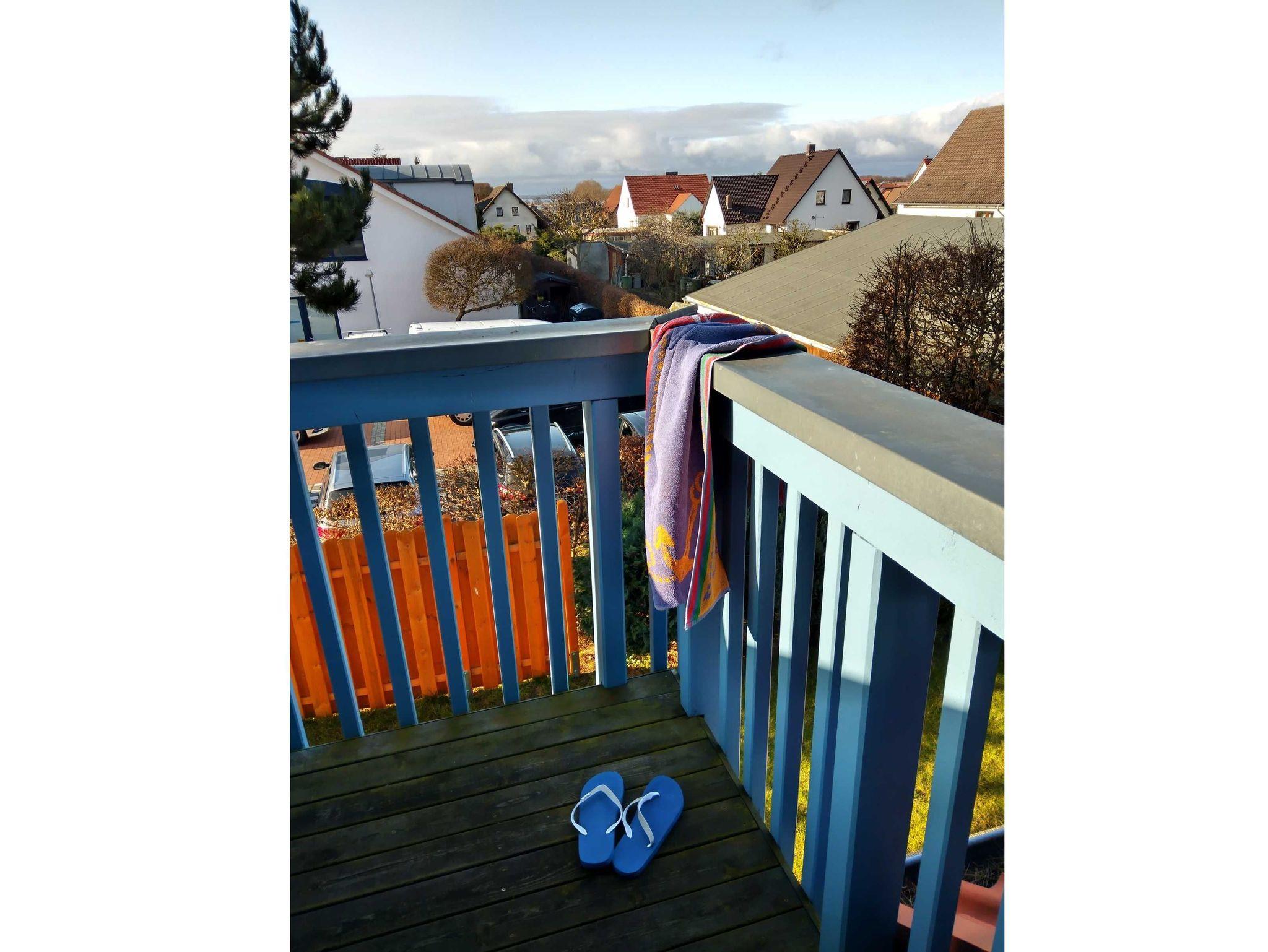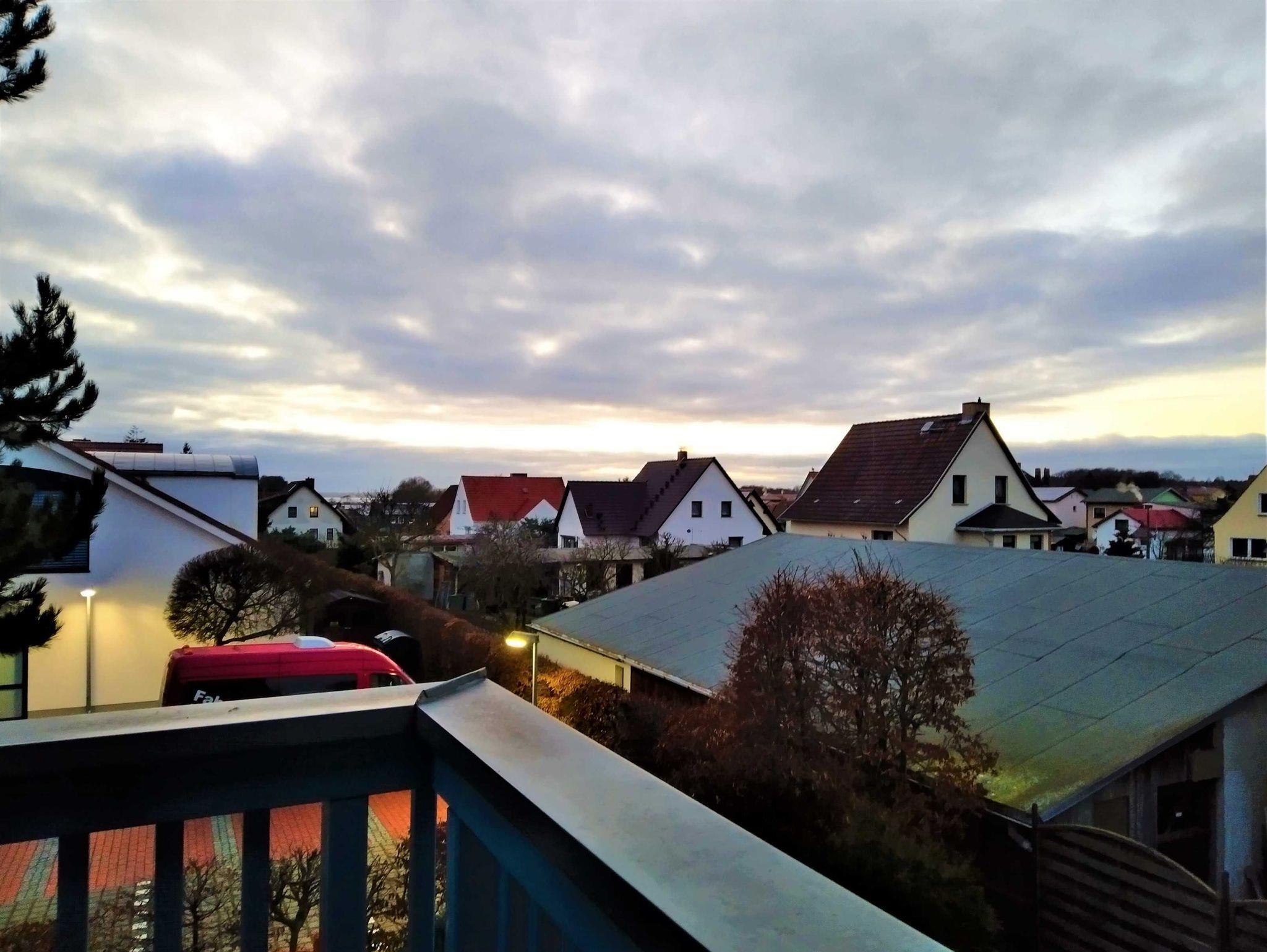Die Wohnung hat einen Balkon, von dem sich ein herrlicher Blick bis zum Achterwasser bietet.