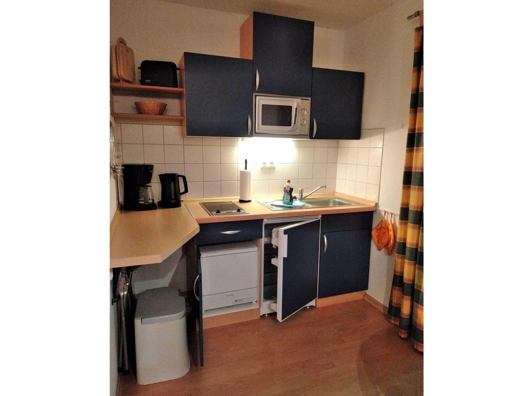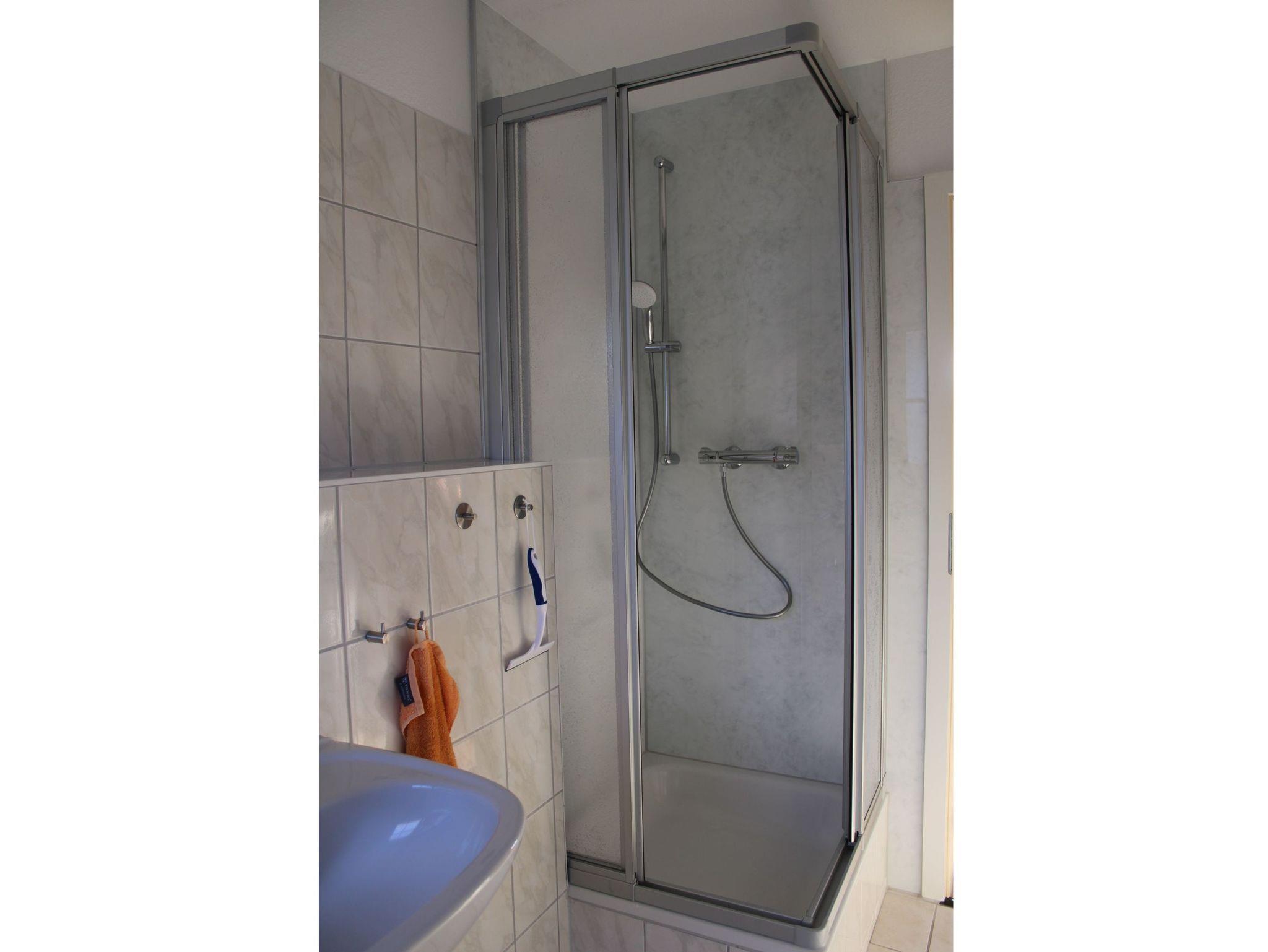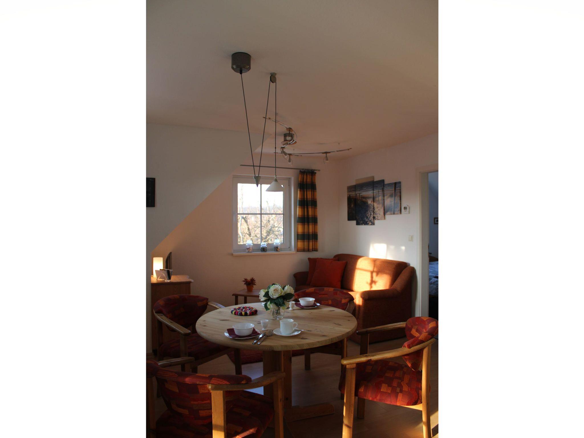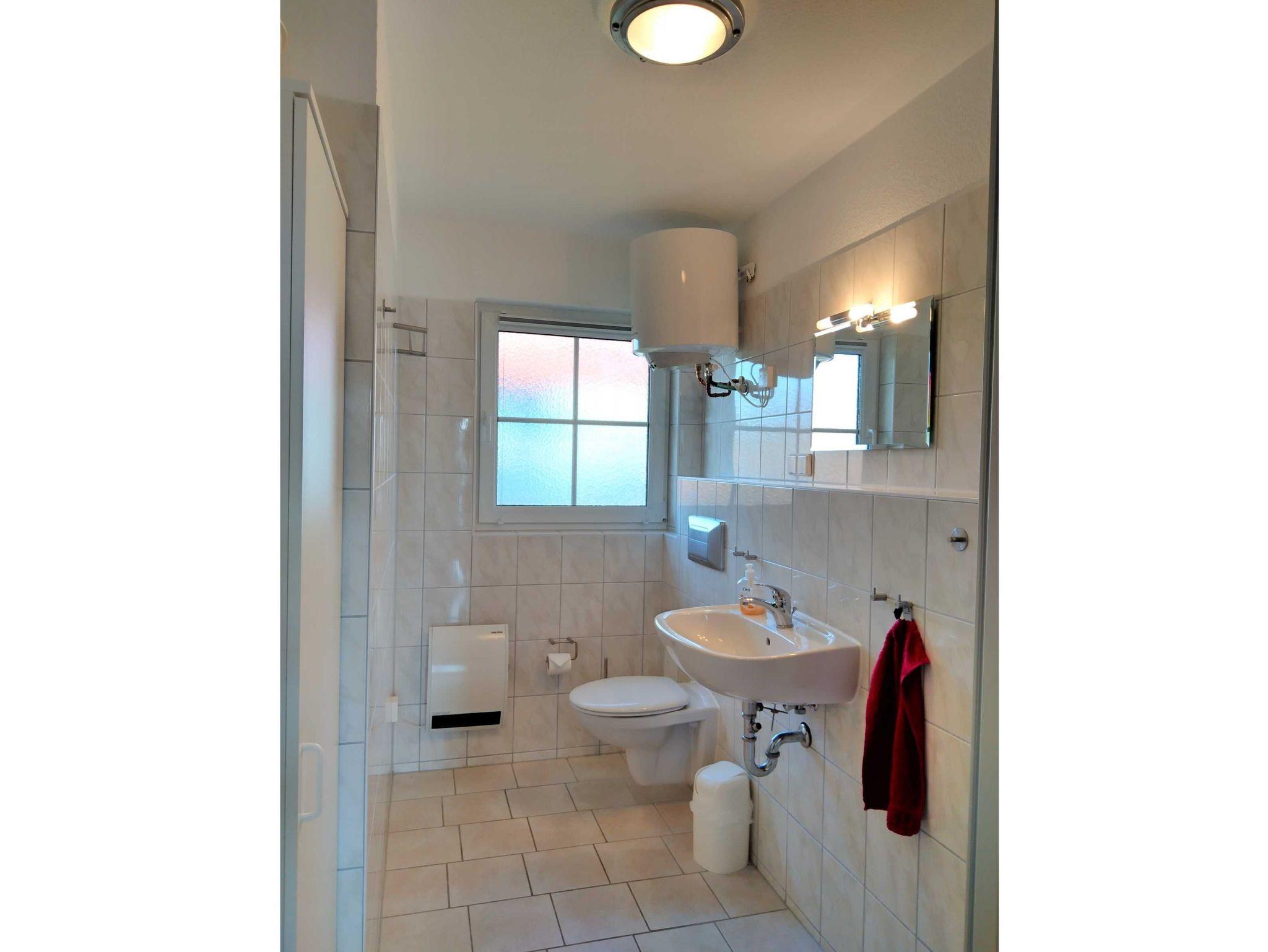 Schöne 2-Zimmer Ferienwohnung im 1. Obergeschoss. Geschmackvoll und zweckmäßig eingerichtet sind der Schlafraum mit Doppelbett und ein kombinierter Wohn- Schlafraum, mit einer Couch mit Schlaffunktion (3. Person) mit TFT- LCD Fernsehgerät und Radio. Zur Wohnung gehört ein Bad mit DU/WC und eine offene Küche im Wohnbereich.