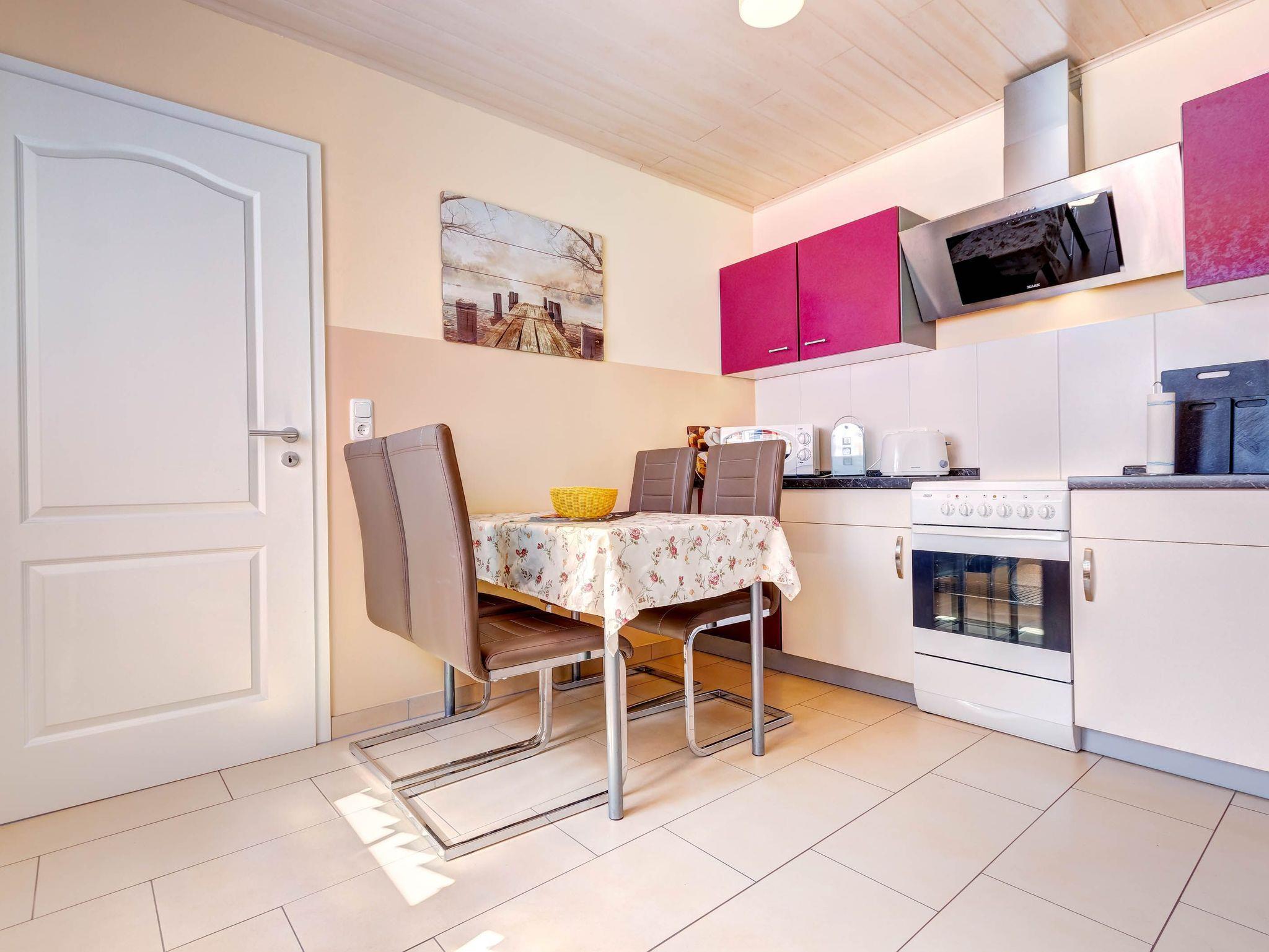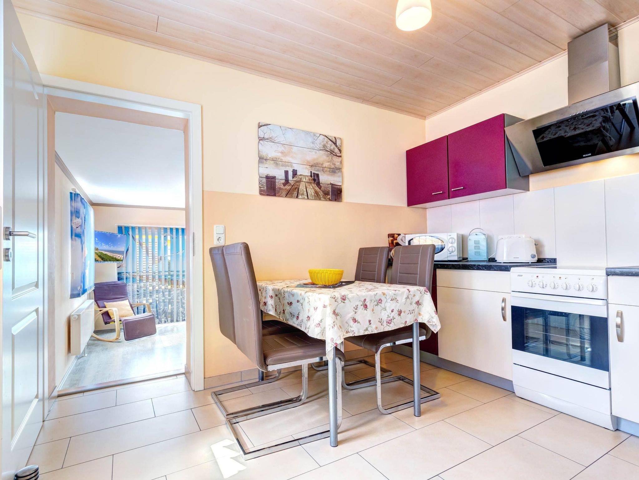 Ein Kinderbett und Hochstuhl stehen kostenfrei zur Verfügung. Die Wohnung ist mit einer Küchenzeile, einer hochwertigen Sitzgarnitur (die auch als Bett genutzt werden kann) sowie modernen Geräten wie Herd, Kühlschrank, Mikrowelle, Toaster, Wasserkocher und Kaffeemaschine ausgestattet.