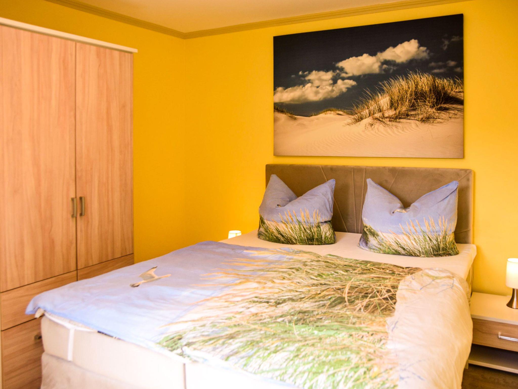 Im Schlafzimmer finden Sie ein großes Doppelbett,einen Flat-TV sowie ein Kleiderschrank für Ihre Habseligkeiten vor.