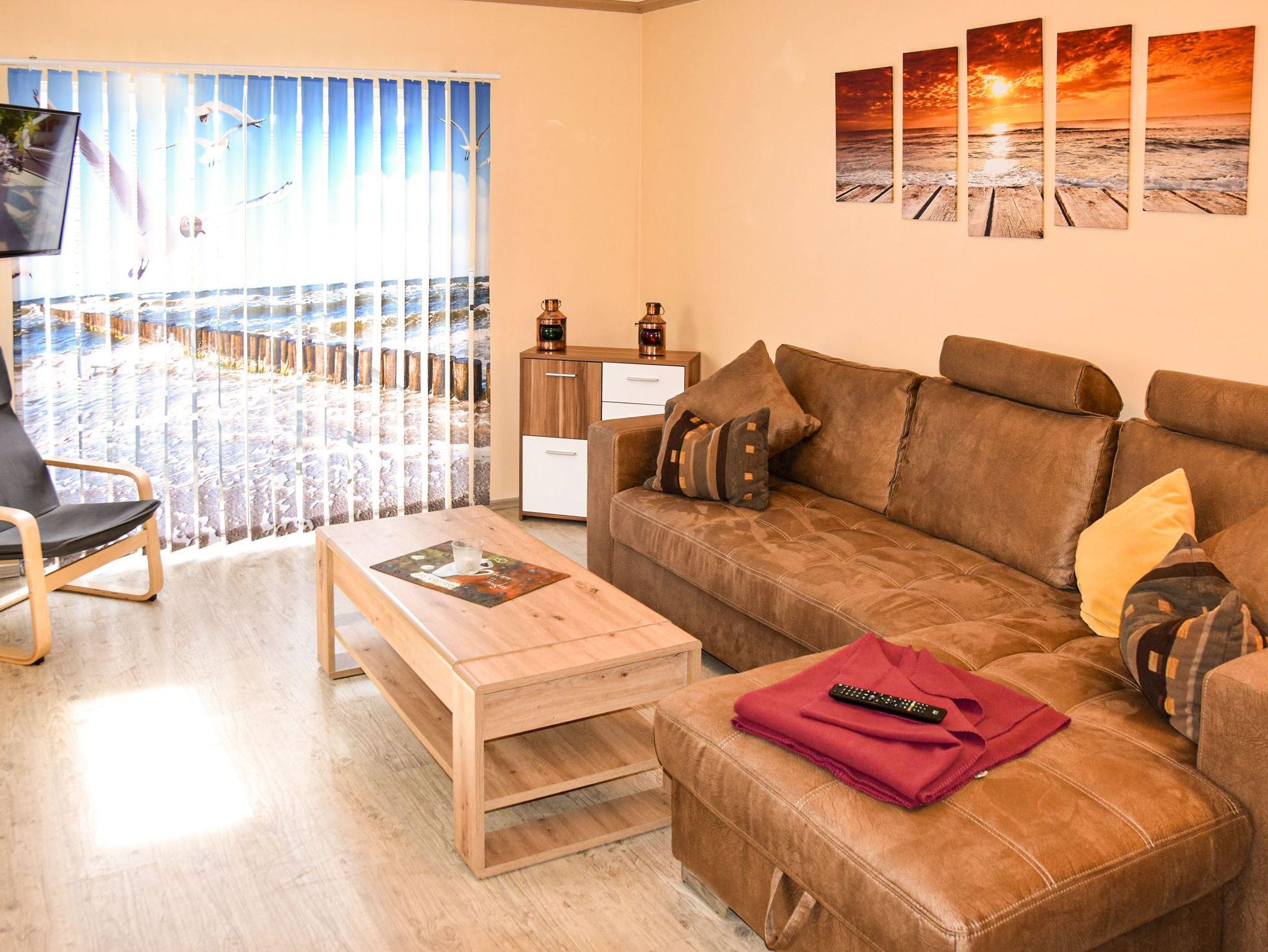 Die gemütliche 2-Raumwohnung für bis zu 4 Personen (plus ein Kleinkind bis 2 Jahre) ist modern eingerichtet und verfügt über ein großes Doppelbett im Schlafzimmer. Bettwäsche und Handtücher können selbst mitgebracht oder gegen Gebühr hinzugebucht werden. Bei Buchung des Wäschepakets sind die Betten bereits bezogen.