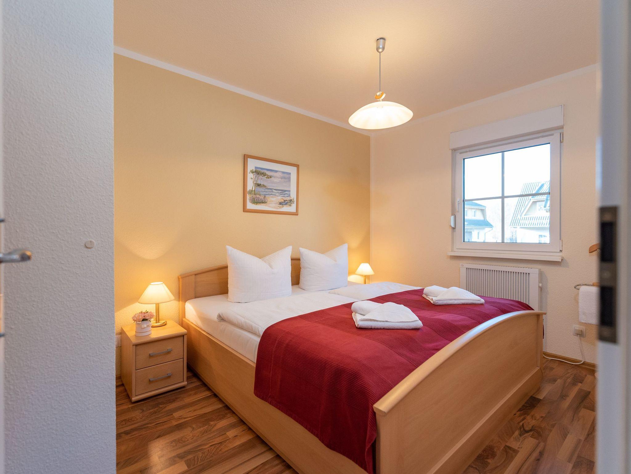 • Schlafbereiche: Ein Schlafzimmer mit einem Doppelbett (ca. 1,80 m x 2,00 m) und ein weiteres mit zwei Einzelbetten (je ca. 0,80 m x 1,90 m), bieten komfortablen Schlafplatz für bis zu vier Gäste.