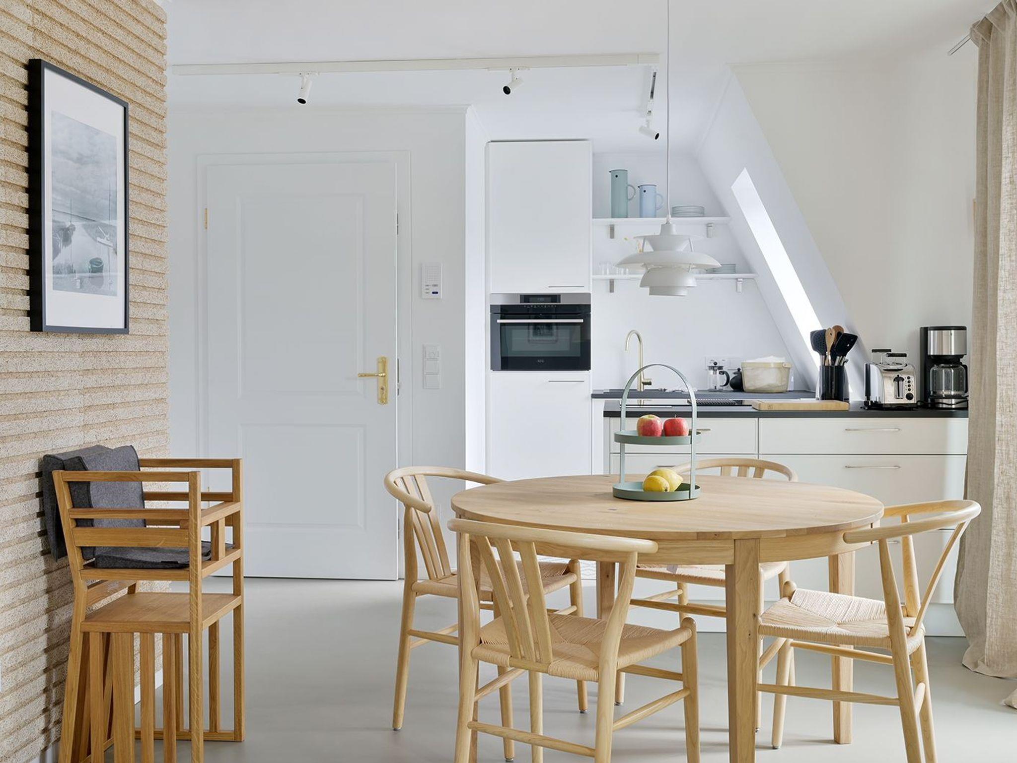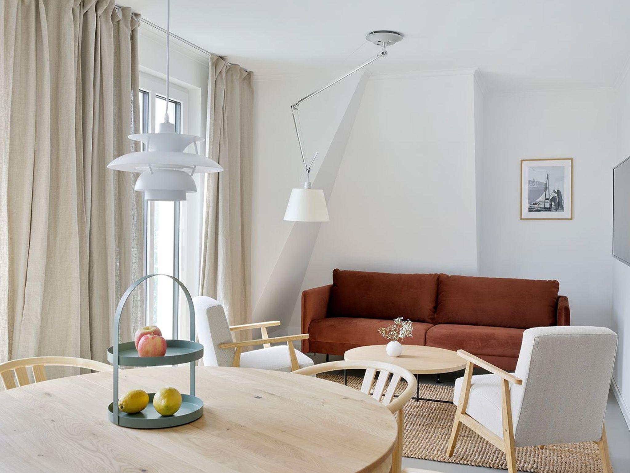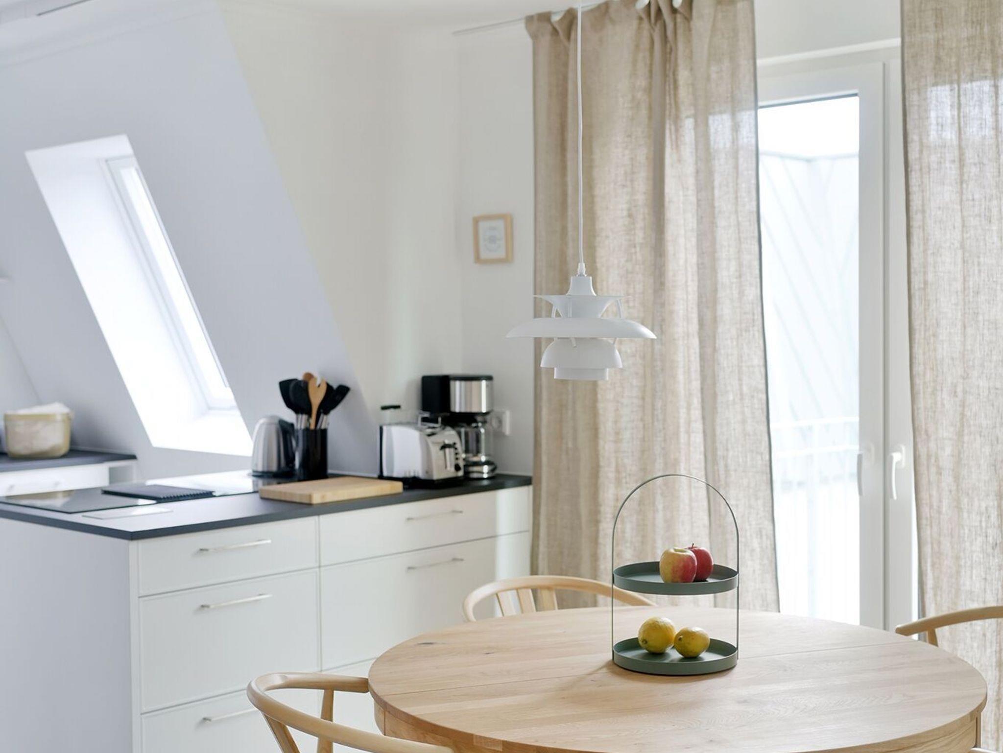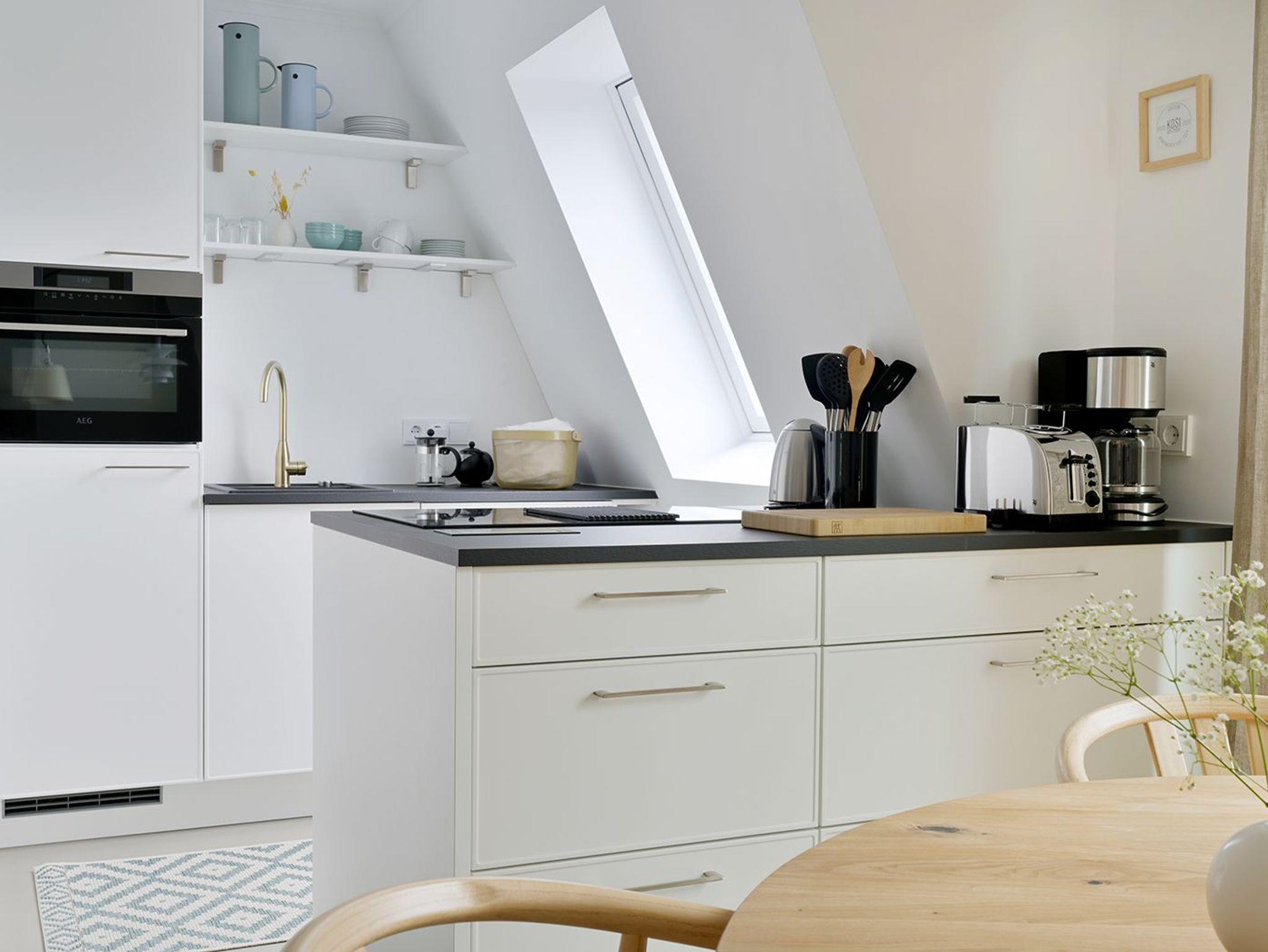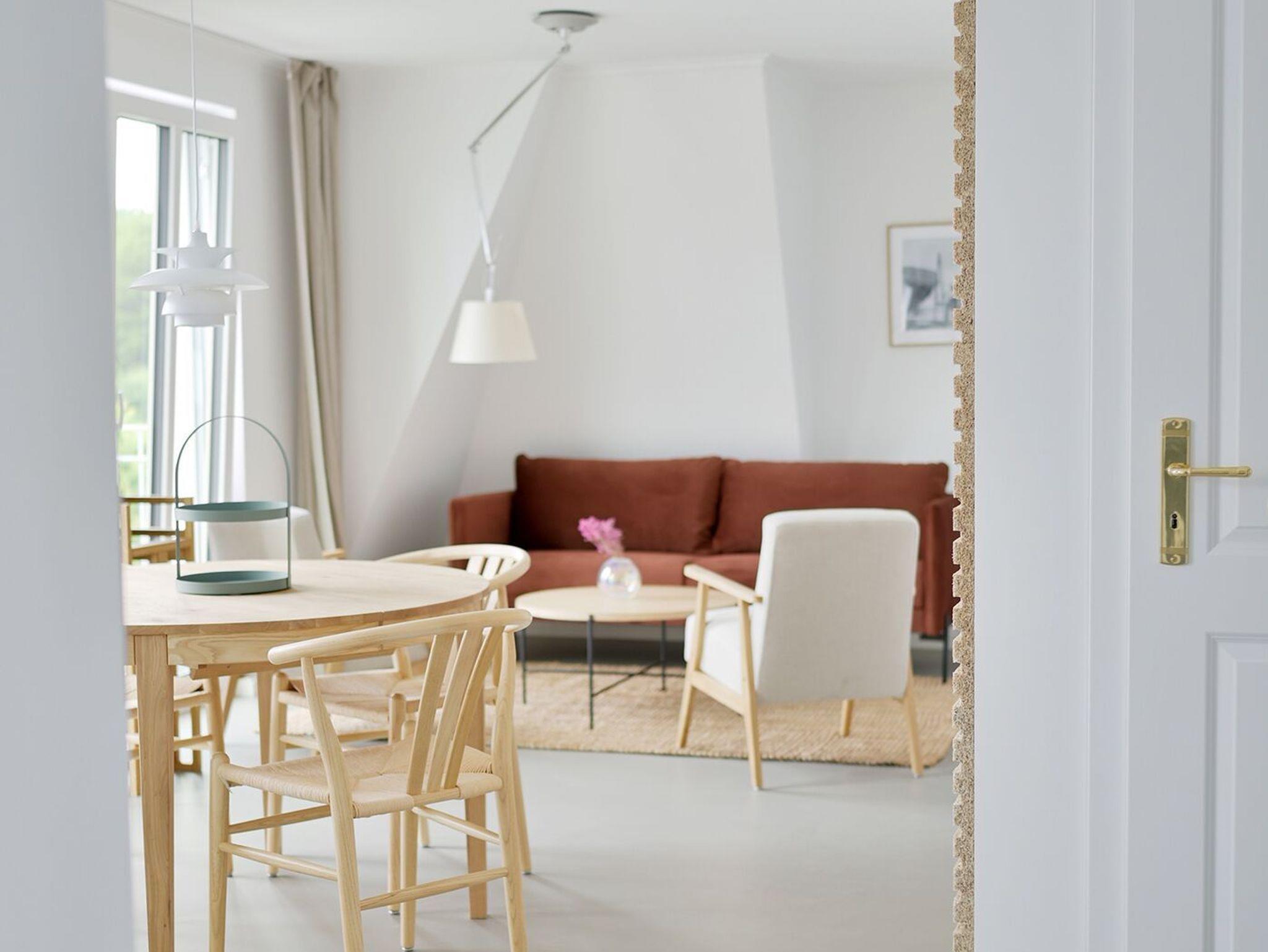 Die lichtdurchflutete 3-Zimmerwohnung des vorderen Apartmenthauses bietet mit einer Fläche von 46 m² Aufenthaltsmöglichkeiten für 2-4 Personen. Eine offene, vollausgestattete Küche schafft hohe Transparenz zum Wohnraum und lädt zu gemeinsamer Zeit ein. Die Einrichtung der Wohnung fokussiert sich auf ein modernes und gleichzeitig gemütliches Interieur.