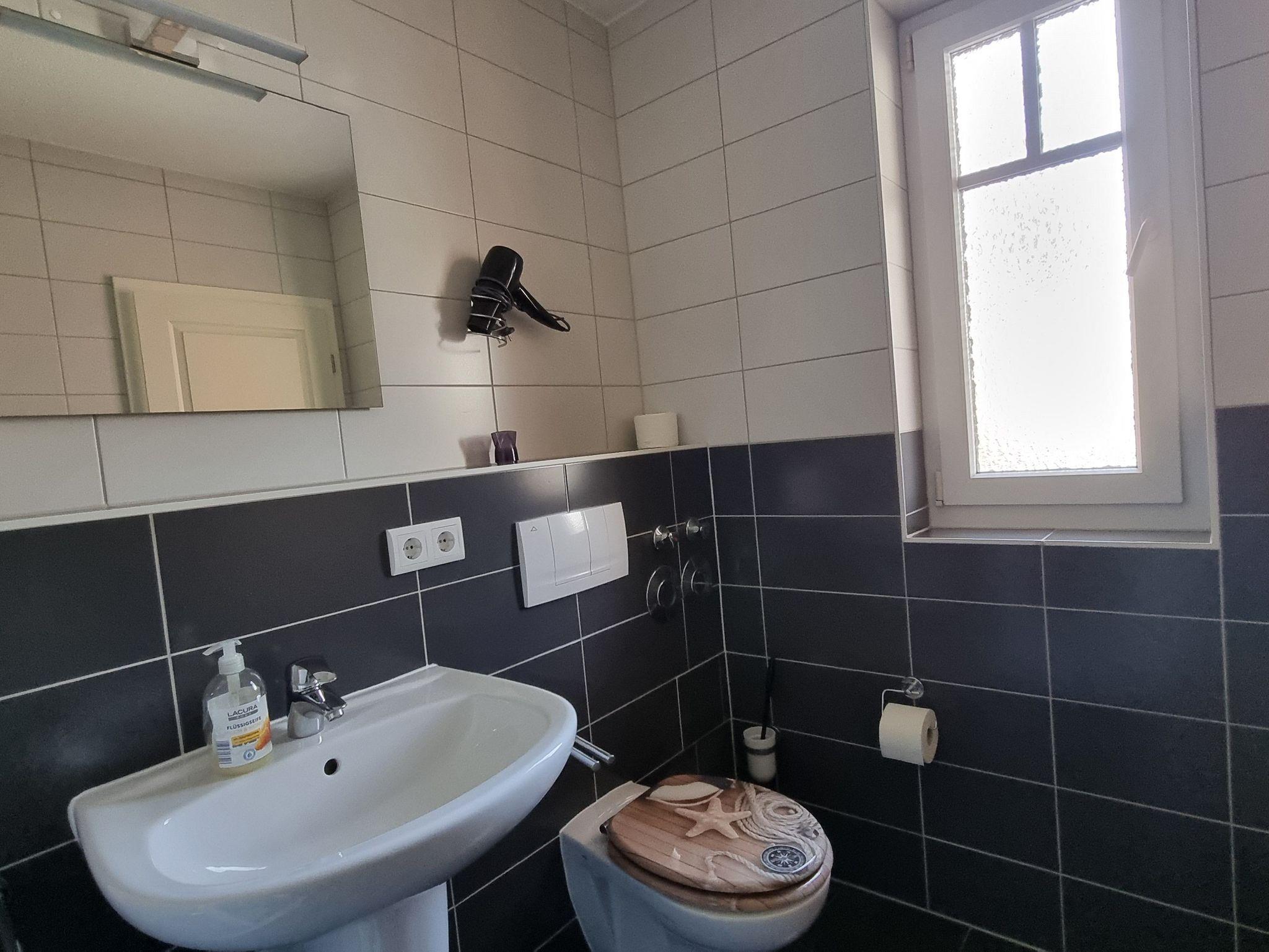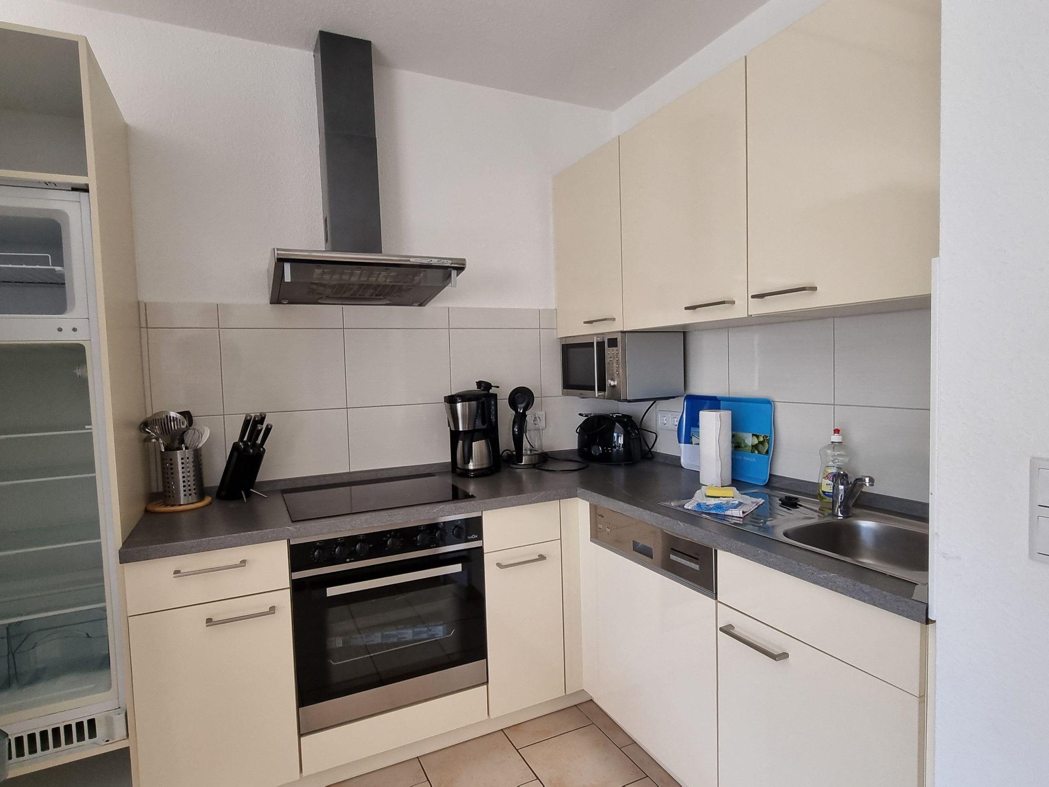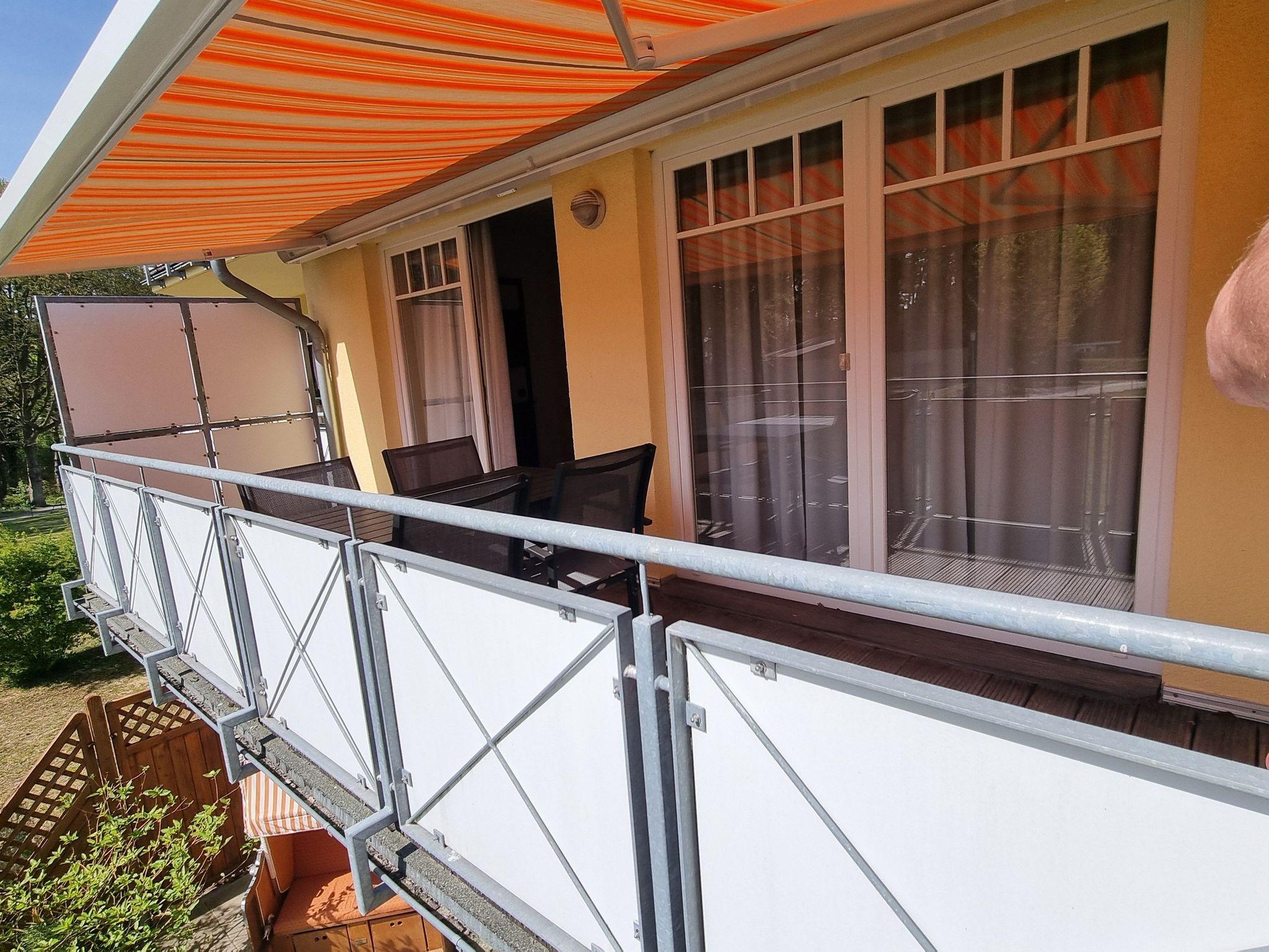 Die Ferienwohnung liegt im Obergeschoß des Ferienhauses. Sie besteht aus Wohnzimmer, kompl. ausgestatteter Küche, Schlafzimmer und Tageslichtbad. Die Ausstattung der Einbauküche ist neuwertig funktional und qualitativ hochwertig unter anderem mit Toaster, Kaffeemaschine, Backofen, Kochfeld, Geschirrspüler, Gefrierfach. Großer Südbalkon mit Blick auf den Küstenwald, große Spielwiese.