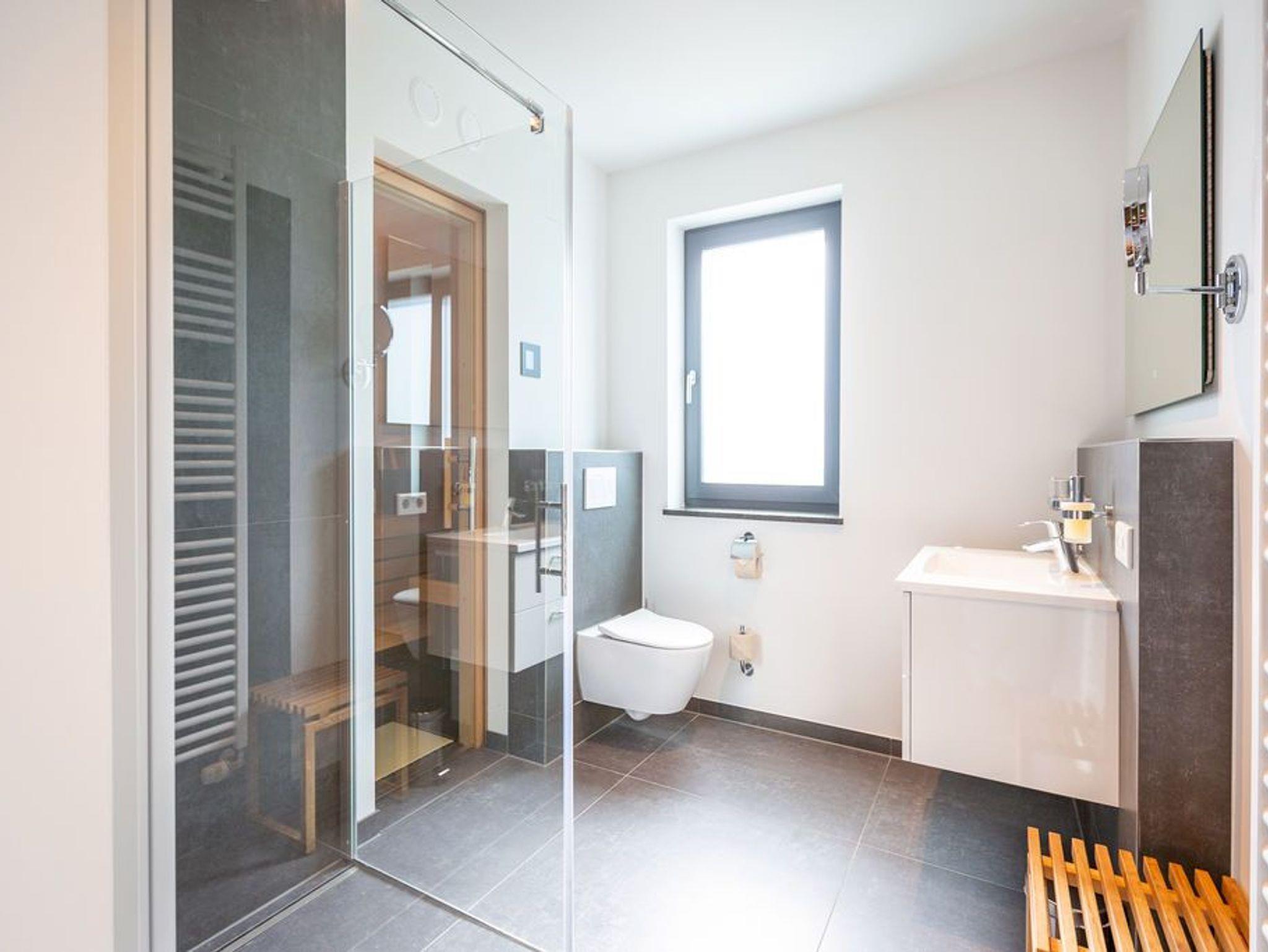 Gestalten Sie Ihren Urlaub ganz nach Ihren Wünschen in diesem großzügigen Feriendomizil. Auf insgesamt 224qm und drei Ebenen bietet das Ferienhaus ab Juni 2024 sogar Platz für bis zu 12 Personen und 2 Kleinkinder (bis 2 Jahre im Kinderreisebett). Ob Großfamilie oder Firmenevent - genießen Sie modernen Wohnkomfort und die Exklusivität Usedoms Steilküste in Ihrer direkten Umgebung zu haben (Entfernung 295m). Die ruhige Lage des Einfamilienhauses trägt darüber hinaus zu Entspannung und Erholung in Ihrem Urlaub bei. Im Erdgeschoss befindet sich der offene Wohnbereich mit großzügiger Wohnlandschaft und Design-Sesseln. Ein Kamin und ein 55 Zoll Flat-TV sorgen für entsprechende Gemütlichkeit an Ihren Urlaubsabenden. Der angrenzende Essbereich ist mit einem 3,60m langen Esstisch mit massiver Eichenplatte ausgestattet. Hier finden bis zu 12 Personen ausreichend Platz für gemeinsame Urlaubsstunden. Die modern und voll ausgestattete Küche mit Markengeräten (Backofen, Ceranfeld, Mikrowelle, Spülmaschine, Kühlschrank mit Gefrierfach, Mixer und Kleinküchengeräte) lässt keine Wünsche beim Zubereiten Ihrer Speisen offen. Von hier aus sowie über das Wohnzimmer gelangen Sie auf die 35qm große Terrasse mit ausreichend Sitzmöglichkeiten für Sie und Ihre Begleitpersonen. Ebenfalls zugehörig zum Erdgeschoss ist neben einem Hauswirtschaftsraum (ausgestattet mit einem Waschtrockner) ein Badezimmer mit WC und Finnischer Sauna (geeignet für 4-5 Personen) sowie ein separates Gäste-WC und ein Schlafzimmer mit Boxspringbett (1,80m x 2,00m). Im ersten Obergeschoss befinden sich 5 weitere Schlafzimmer, die alle mit komfortablen Boxspringbetten (1,80m x 2,00m), Schrank, elektrische Rolläden und Flat-TV ausgestattet sind. Auch zwei weitere Badezimmer mit Dusche, WC und Waschtisch gehören zum Komfort dieser Etage. Ein weiteres Wohnzimmer mit Sitzlandschaft und 55 Zoll Flat-TV bietet zudem die Möglichkeit sich in dieser Etage zurückzuziehen. Unter dem Dach (in der zweiten Etage) verbirgt sich ein weiteres Zimmer, dass sich als Spielzimmer eignet. Große Dachfenster und Dachschrägen sorgen hier für besondere Gemütlichkeit. Ein Highlight dieses Ferienhauses ist der 940qm große Garten. Neben einem Grill befindet sich auch ein abschließbares Gartenhaus auf dem Grundstück, dass Abstellmöglichkeiten für Fahrräder, Bollerwagen oder Kinderwagen bietet. Kostenfreies W-Lan, drei Safes und insgesamt drei PKW-Stellplätze direkt am Grundstück runden Ihren perfekten Urlaub in diesem Ferienhaus ab.
