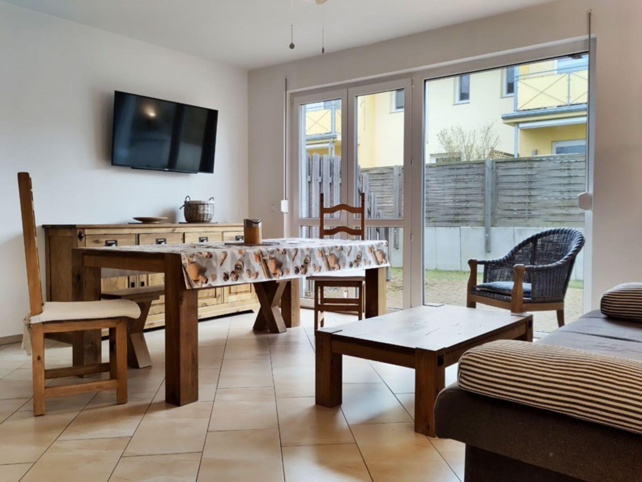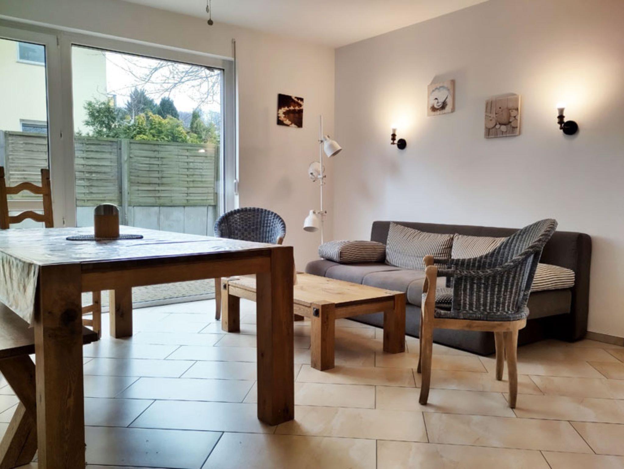 Dieses Apartment für bis zu 3 Personen heißt Sie herzlich willkommen! Auf Sie wartet ein gemütliches Schlafzimmer mit komfortablem Doppelbett und einem großem Wohn- und Kochbereich, der mit TV, Kamin und großem Esstisch keine Wünsche offenlässt. Im Wohnzimmer befindet sich mit der gemütlichen Couch eine Aufbettungsmöglichkeit. Die Küche ist für alle Bedürfnisse ausgestattet: Backofen, Ceran- Kochfeld, Geschirrspüler und Kühl-Gefrierkombination. Das große Bad ist mit einer Whirlpool- Badewanne, einer Dusche und einer Sauna ausgestattet. Die Wohnung hat eine ruhige Terrasse zur Rückseite des Hauses mit zahlreichen Sitzmöglichkeiten.