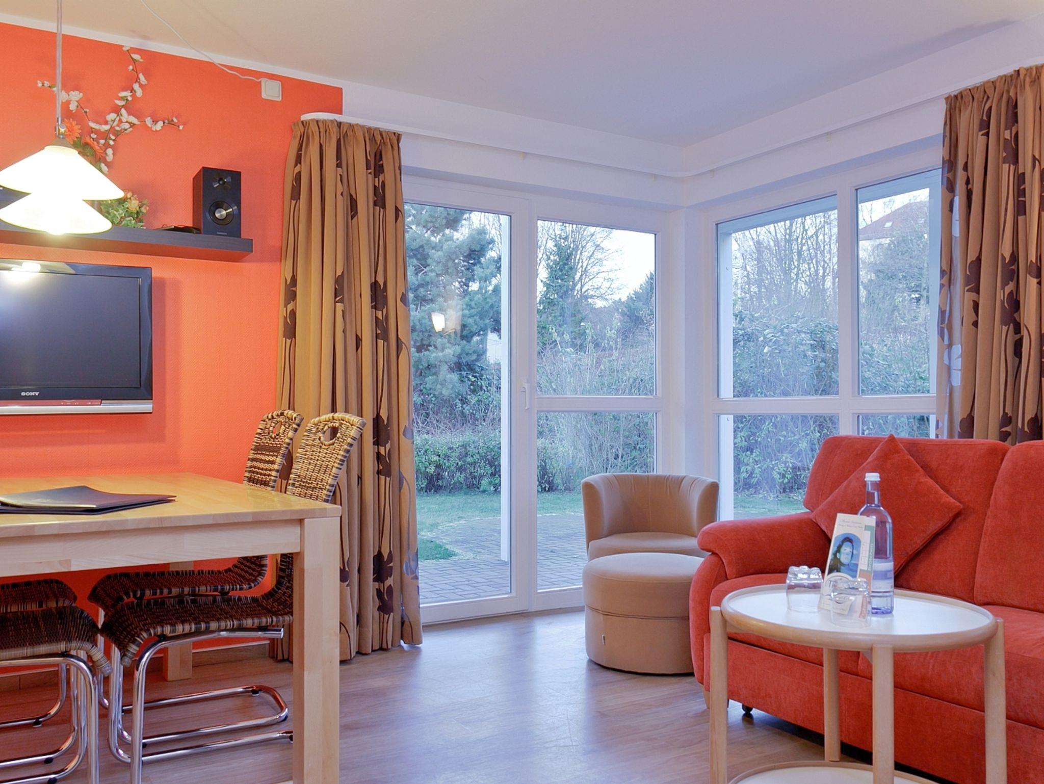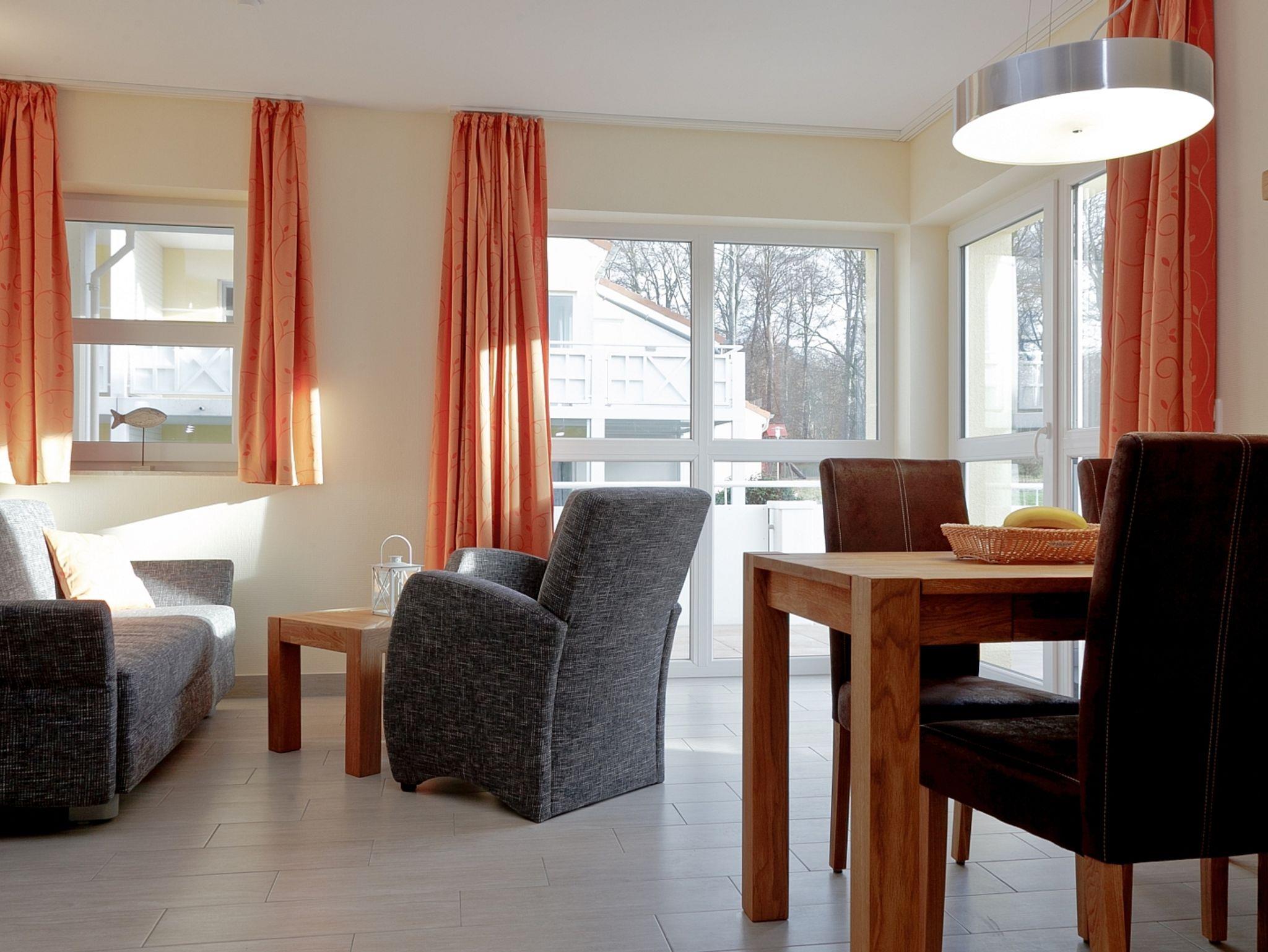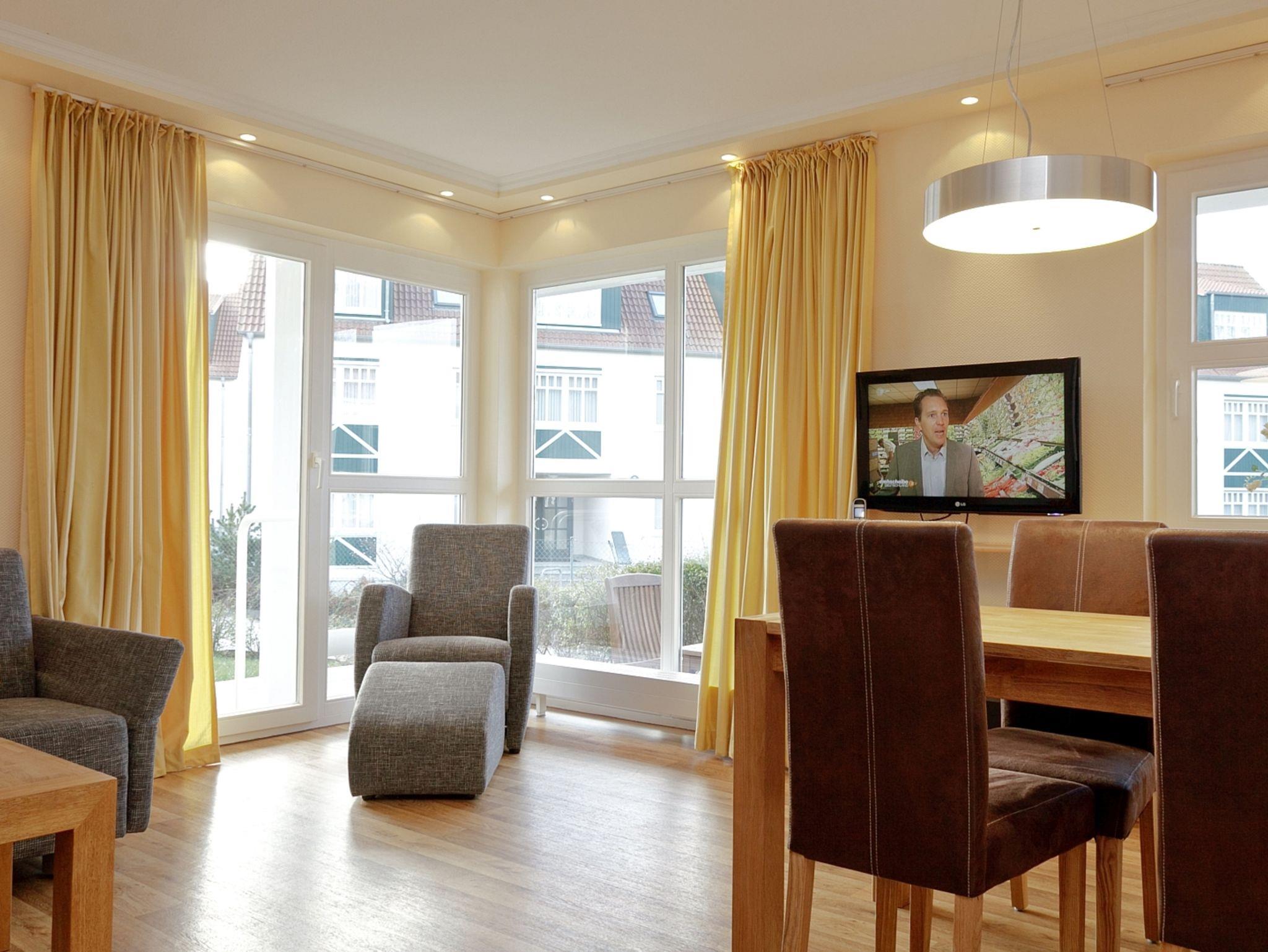 Zu jeder Wohnung gehört ein reservierter Stellplatz. Die Nutzung von Einrichtungen des Vineta Ferienparks wie Schwimmbad, Sauna, Tennisplatz, Grillplatz und Tischtennisplatte ist im Mietpreis enthalten.
