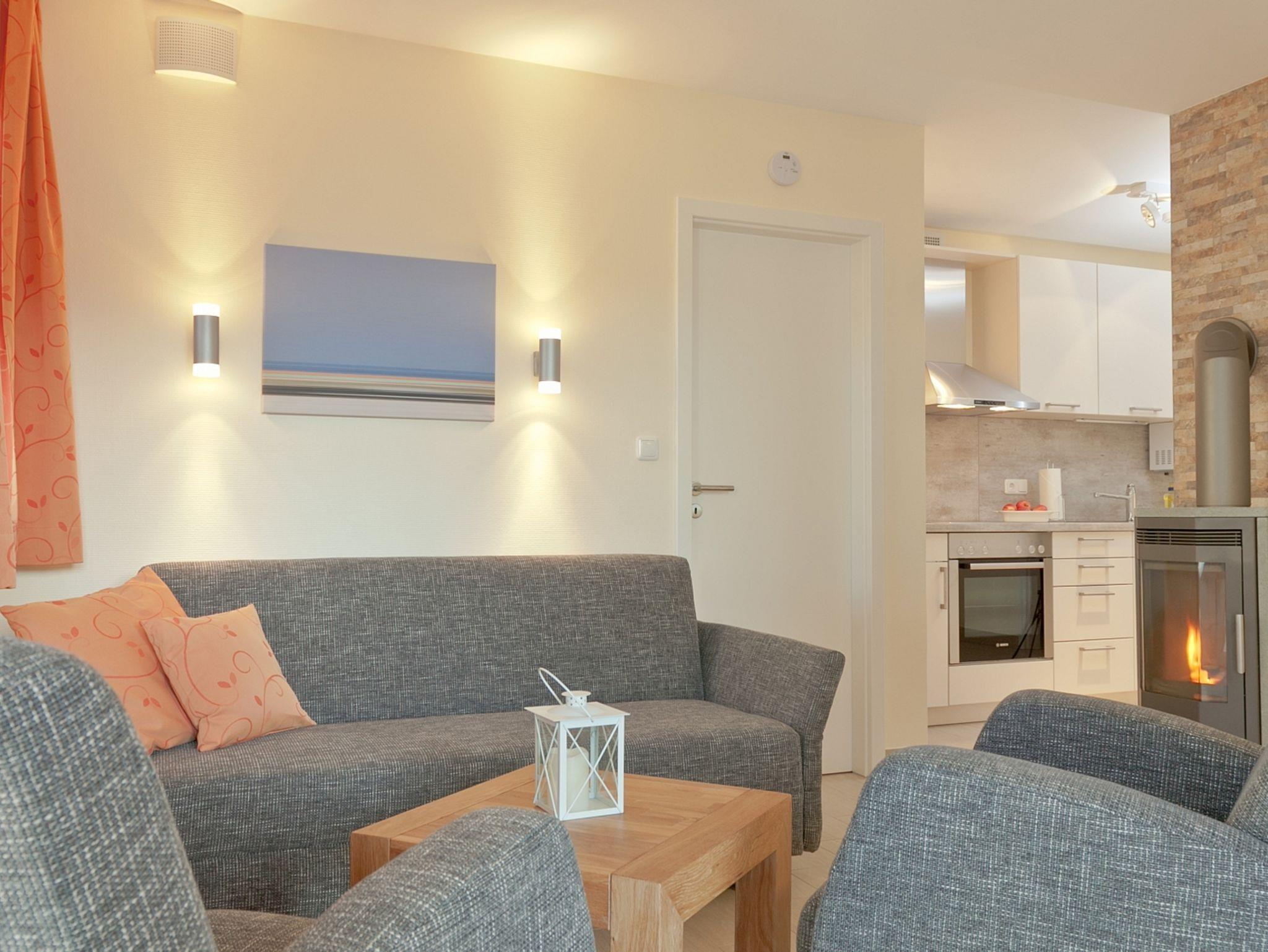 75 m² für 2-6 Personen im EG oder im 1. OG, 2 Schlafzimmer mit Qualitätsbetten, 1 Schlafcouch im Wohnzimmer, Diele, Bad inkl. privater Sauna, Dusche und Eck-Whirlwanne, WC separat. Wohnzimmer mit HDTV, BluRay und Kaminofen. Großer möblierter Balkon oder Terrasse, zusätzlicher Abstellraum, freier WLAN Empfang, Safe. Empfohlene Belegung 4 Personen.