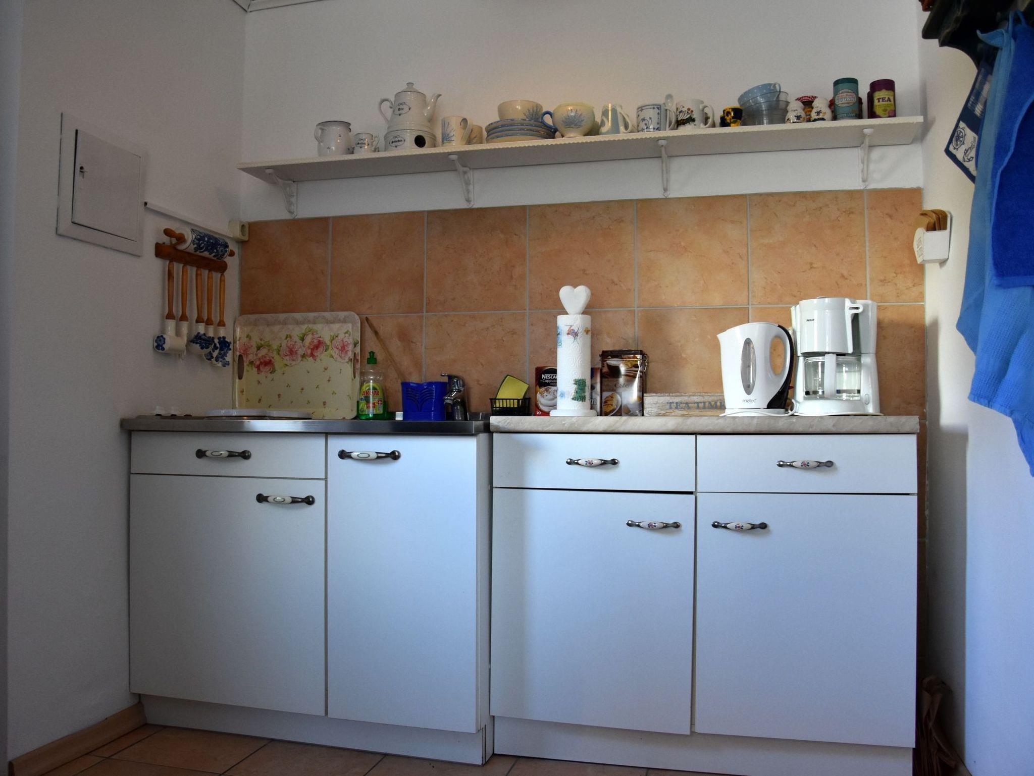 Der Wohnraum ist gemütlich möbliert, mit einer Pantry-Küche , sowie einer Eckcouch ausgestattet.
