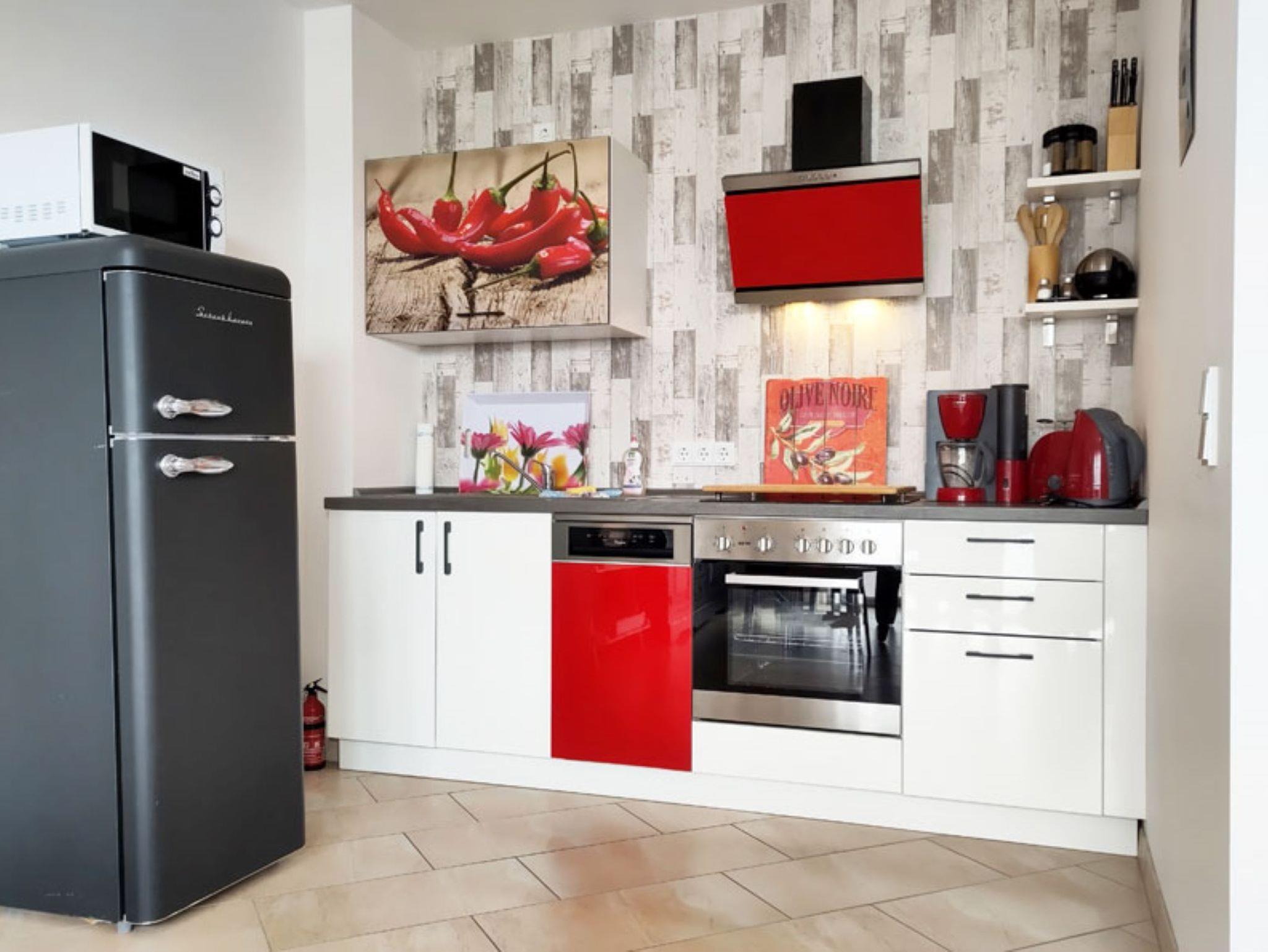 Diese Maisonette-Ferienwohnung ist der perfekte Ort für einen schönen Familienurlaub oder erholsame Tage mit Freunden. Über 2 Etagen stehen Ihnen 2 Schlafzimmer mit komfortablen Matratzen sowie ein luxuriöses Bad mit Whirlpool-Badewanne, Dusche und Sauna und ein Gäste-WC zur Verfügung. Neben einer modernen Küche mit Backofen, Cerankochfeld, Kühl-Gefrierkombination und Geschirrspüler finden Sie in der unteren Etage einen geräumigen Wohn-Essbereich, mit genug Platz für gemeinsame Zeit am großen Esstisch oder auf der gemütlichen Couch mit Fernseher. An kalten Tagen können Sie hier das prasselnde Feuer des Kamins genießen. Der große Balkonbereich ist perfekt zum Sonnenbaden und Entspannen.
