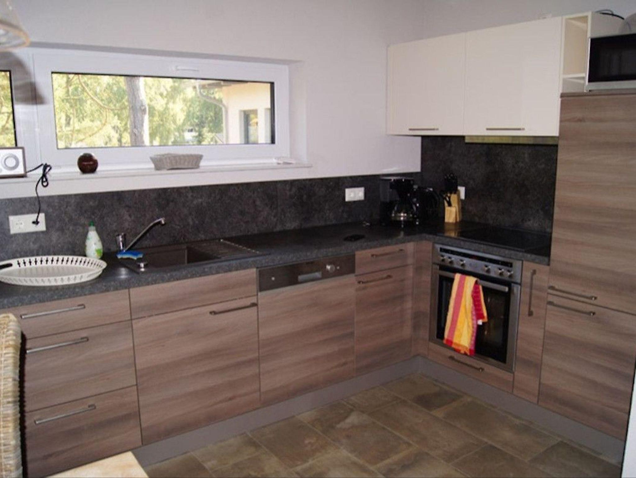 - Küchenbereich mit Küchenzeile (Backofen, Mikrowelle, 4 Zonen - Induktionskochfeld, Kühlschrank mit