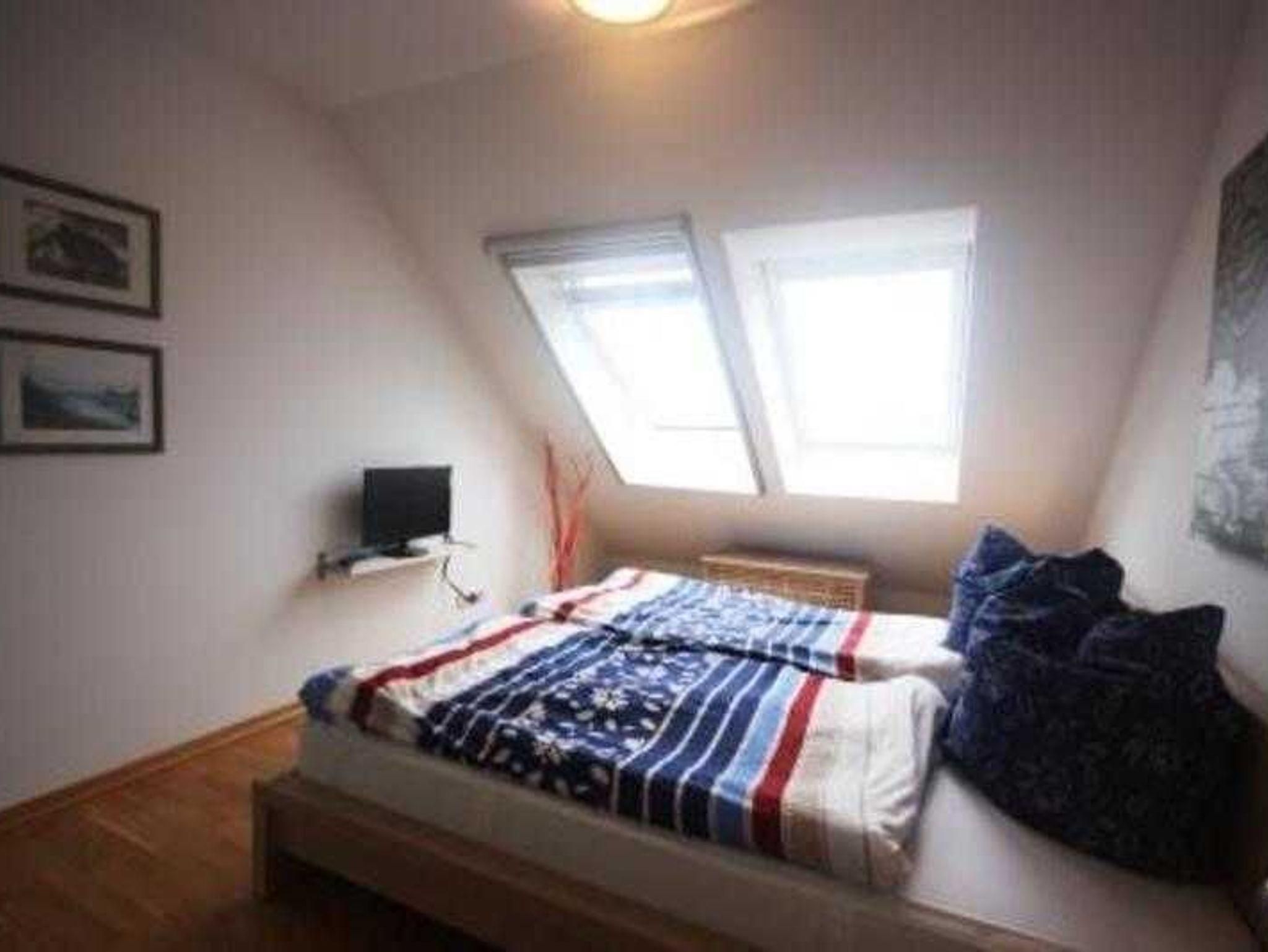 Die Wohnung liegt im Dachgeschoß des Ferienhauses. Sie verfügt über ein Schlafzimmer mit Doppelbett sowie ein weiteres Zimmer mit Einzelbett. Im Wohnzimmer steht alternativ eine Schlafcouch zur Verfügung. Die Fewo besitzt eine Waschmaschine. In der Küche steht eine Senseo Kaffemaschine für Pads zur Verfügung sowie eine herkömmliche Filtermaschine. Haustiere sind nicht zugelassen.