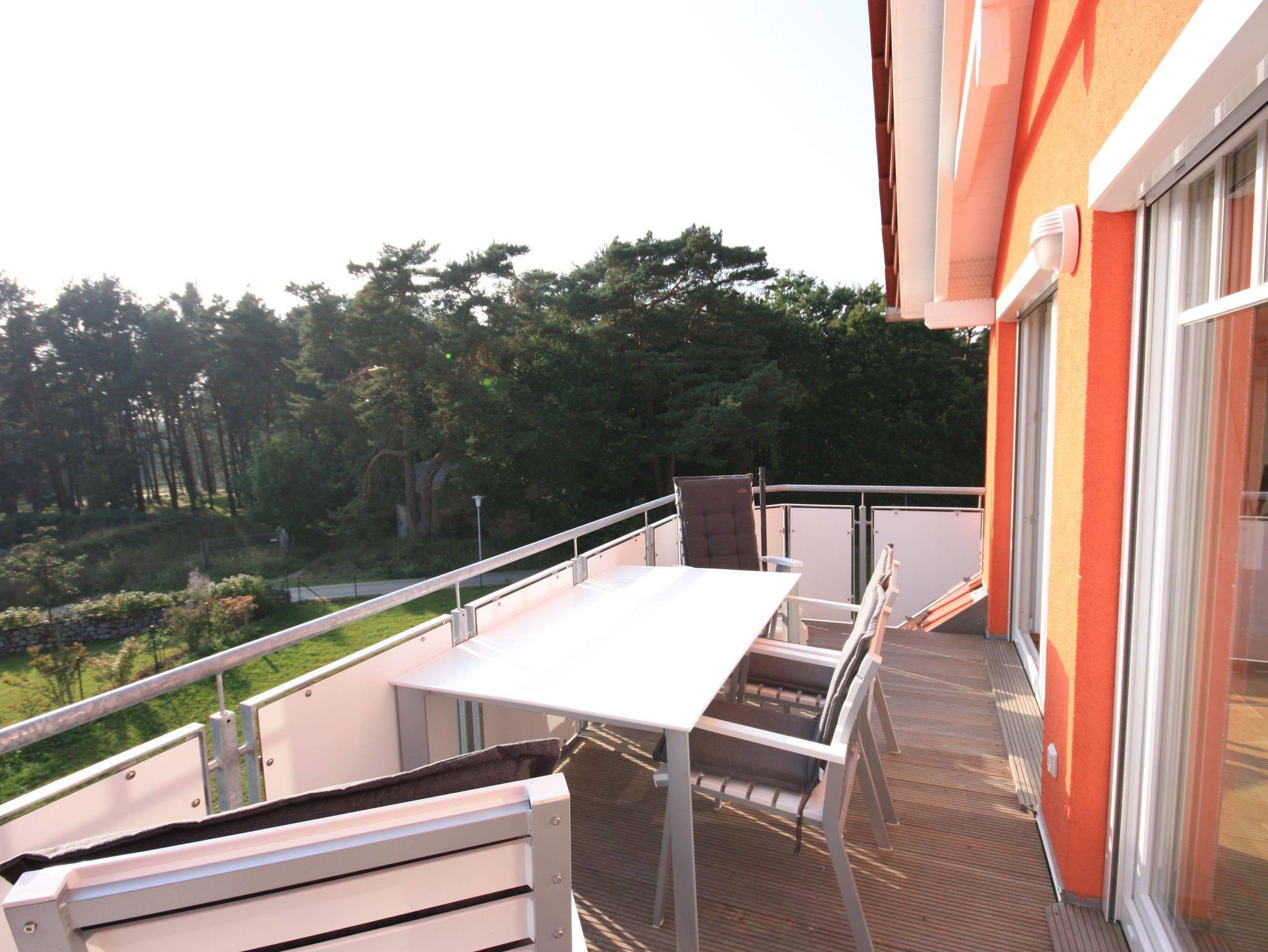 Vom großen Südbalkon hat man einen herrlichen Überblick über den Küstenwald. Zur Ostsee sind es ca. 600 Meter.