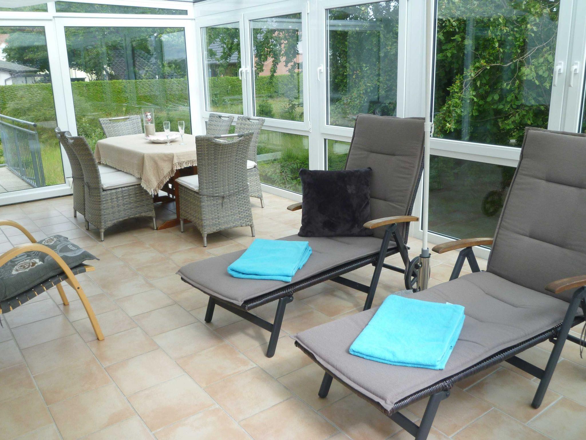 3 Zimmer (komplettes OG) mit ca. 75 m², zuzügl. 20 m² Wintergarten mit 2 großen Schiebetüren, Balkone zur Süd/Westseite, exklusiv und modern eingerichtet, für 2 bis 4 Personen, Wohnzimmer mit komfortabler Ledergarnitur mit Funktionen. Schlafzimmer: Pinie massiv mit Doppelbett. Zweites Schlafzimmer mit hochwertigem Doppelbett (Motorische Rahmenverstellung und Matratze mit mehreren Liegezonen), moderne Küche mit Spülmaschine, Mikrowelle, uvm. Modernes Bad in maritimem Design mit Dusche. 55 Fernseher mit Ambilight-Beleuchtung und Smart-TV Funktion, Sat-TV, Stereoanlage. Separater Eingang (Hauscharakter, komplettes OG), Parkplatz auf dem Grundstück.