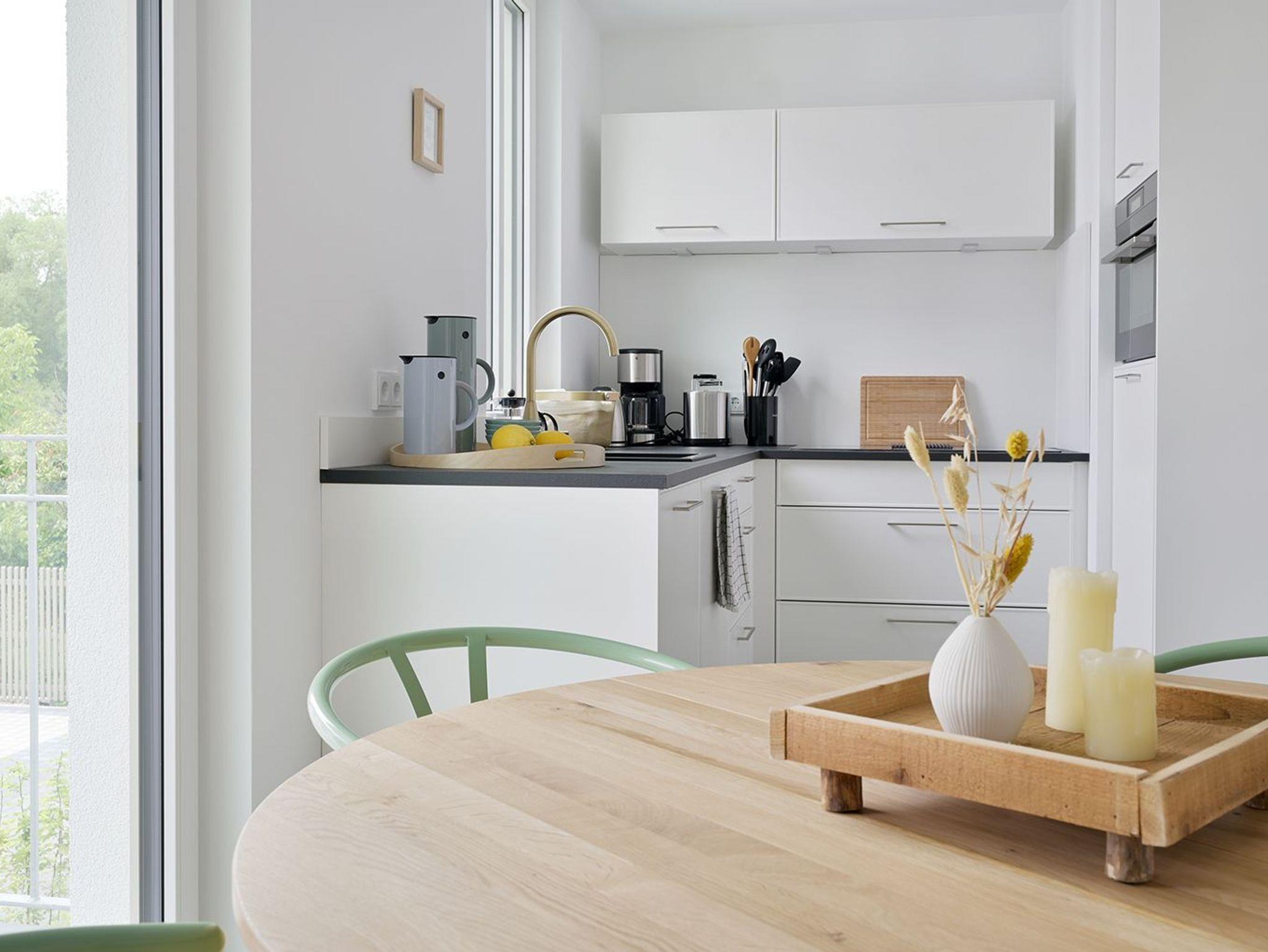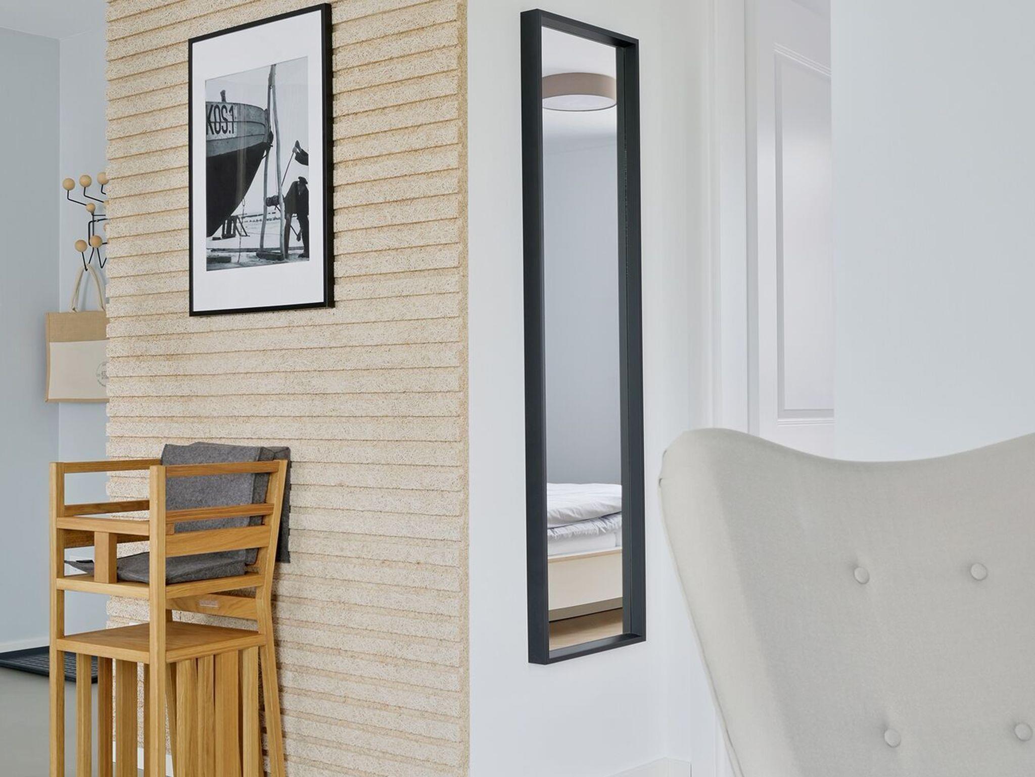 Die lichtdurchflutete[nbsp] 3-Zimmerwohnung des vorderen Apartmenthauses bietet mit einer Fläche von 53 m² Aufenthaltsmöglichkeiten für 2-4 Personen. Eine offene, vollausgestattete Küche schafft hohe Transparenz zum Wohnraum und lädt zu gemeinsamer zeit ein. Die Einrichtung der Wohnung fokussiert sich auf ein modernes und gleichzeitig gemütliches Interieur.