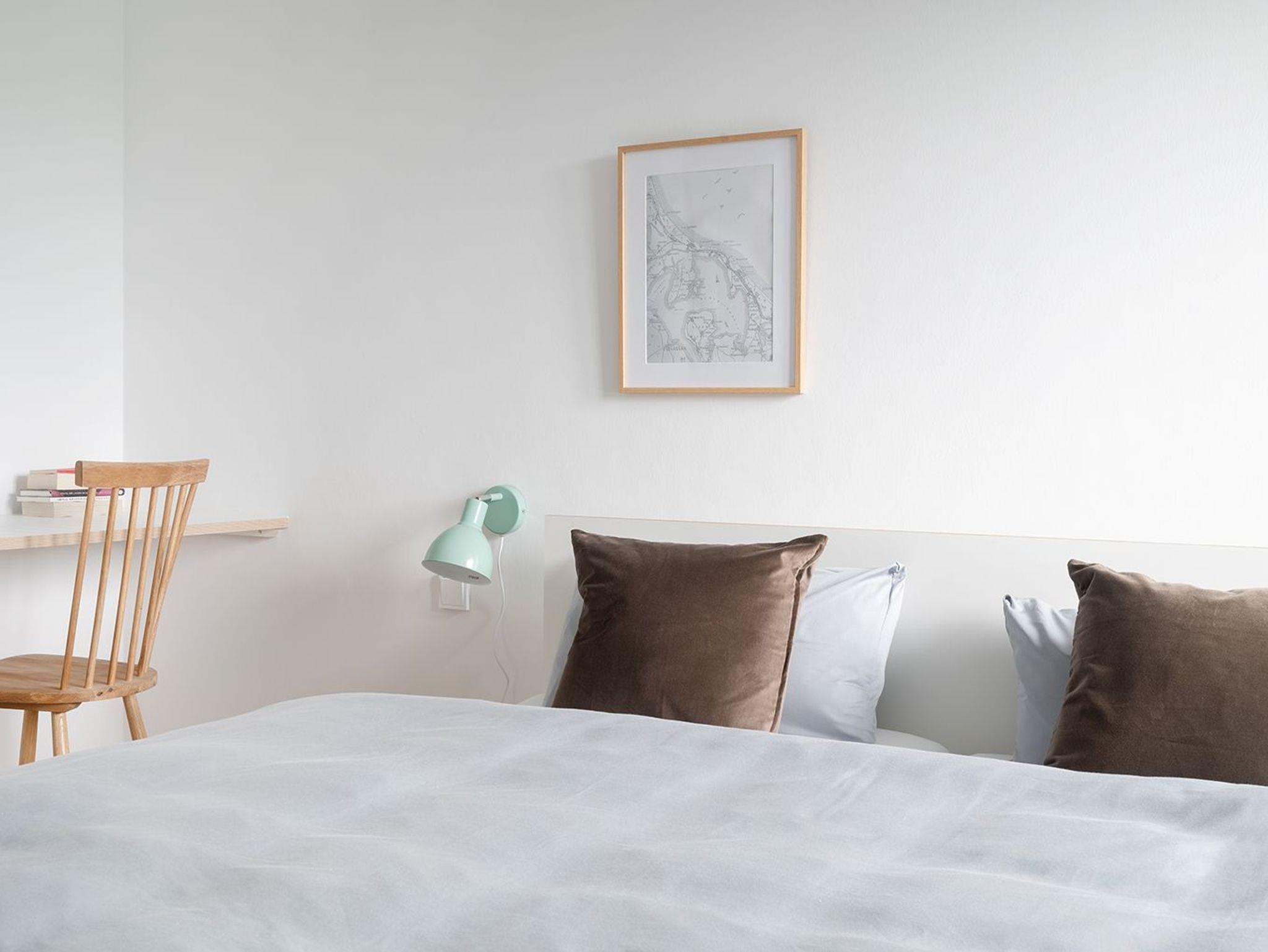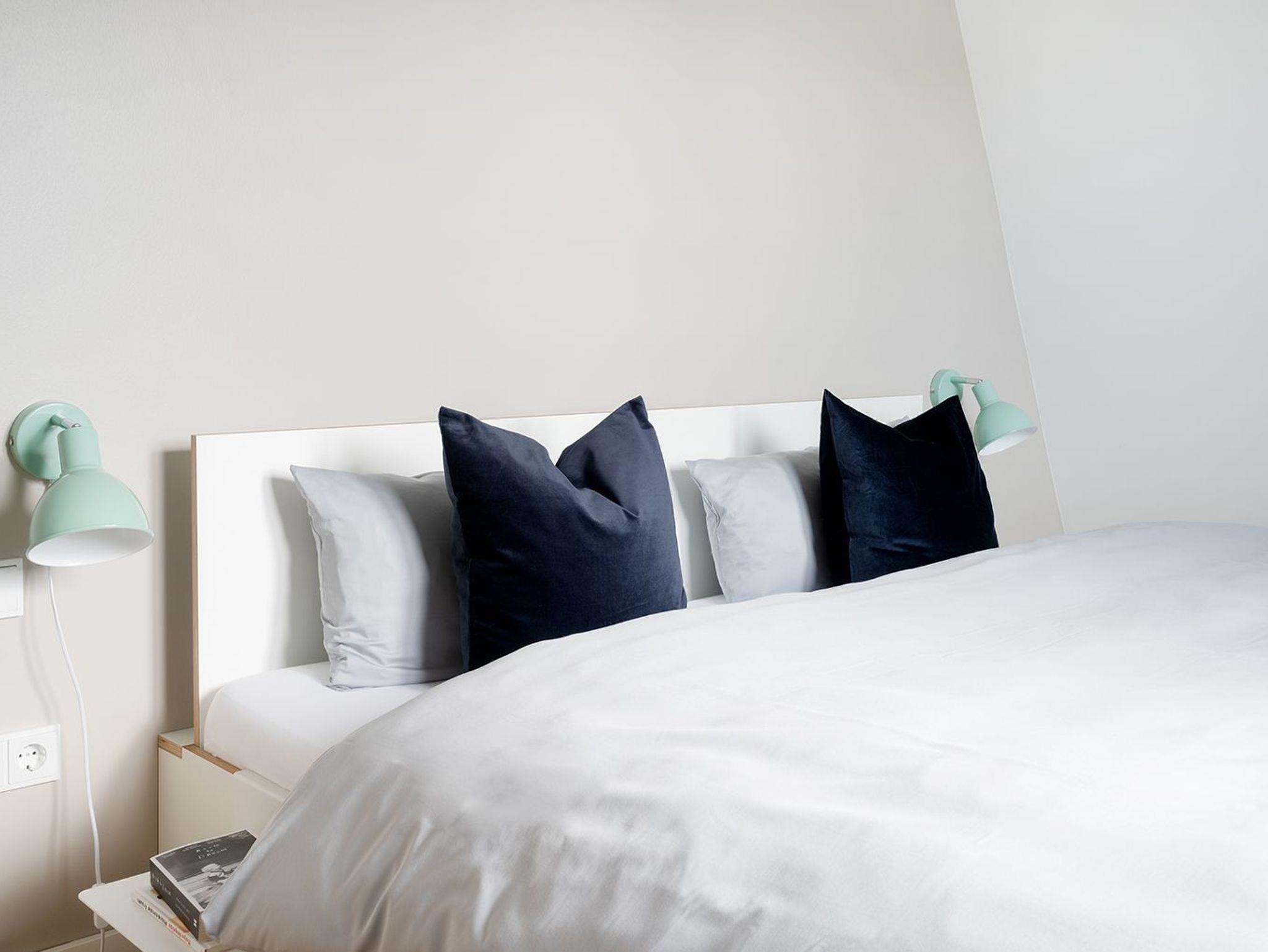 Die lichtdurchflutete, zweigeschossige Maisonette-Wohnung bietet Platz für 4 Personen. Ein weiteres Schlafzimmer kann zusätzlich für 2 Personen gebucht werden, was besonders Gruppen und Familien zum gemütlichen und geselligen Verweilen einlädt Im 1.Obergeschoss befindet sich ein großzügiger Wohn- und Essbereich mit offener Küche und Kochinsel. Von dort aus lässt sich direkt der Balkon mit Gartenmöbeln erschließen. Ebenfalls befindet sich ein Gäste-WC und ein geräumiger Hauswirtschaftsraum auf dieser Ebene.