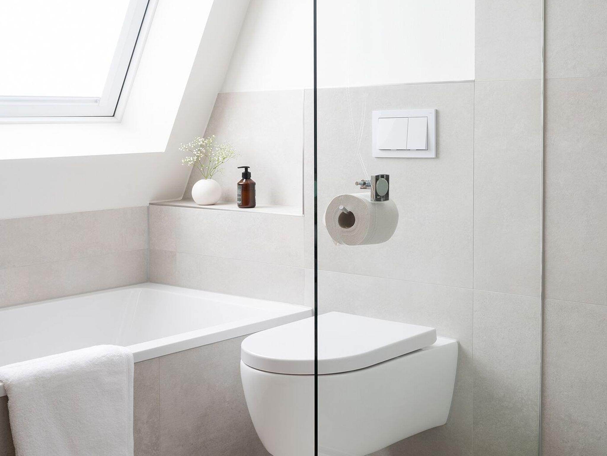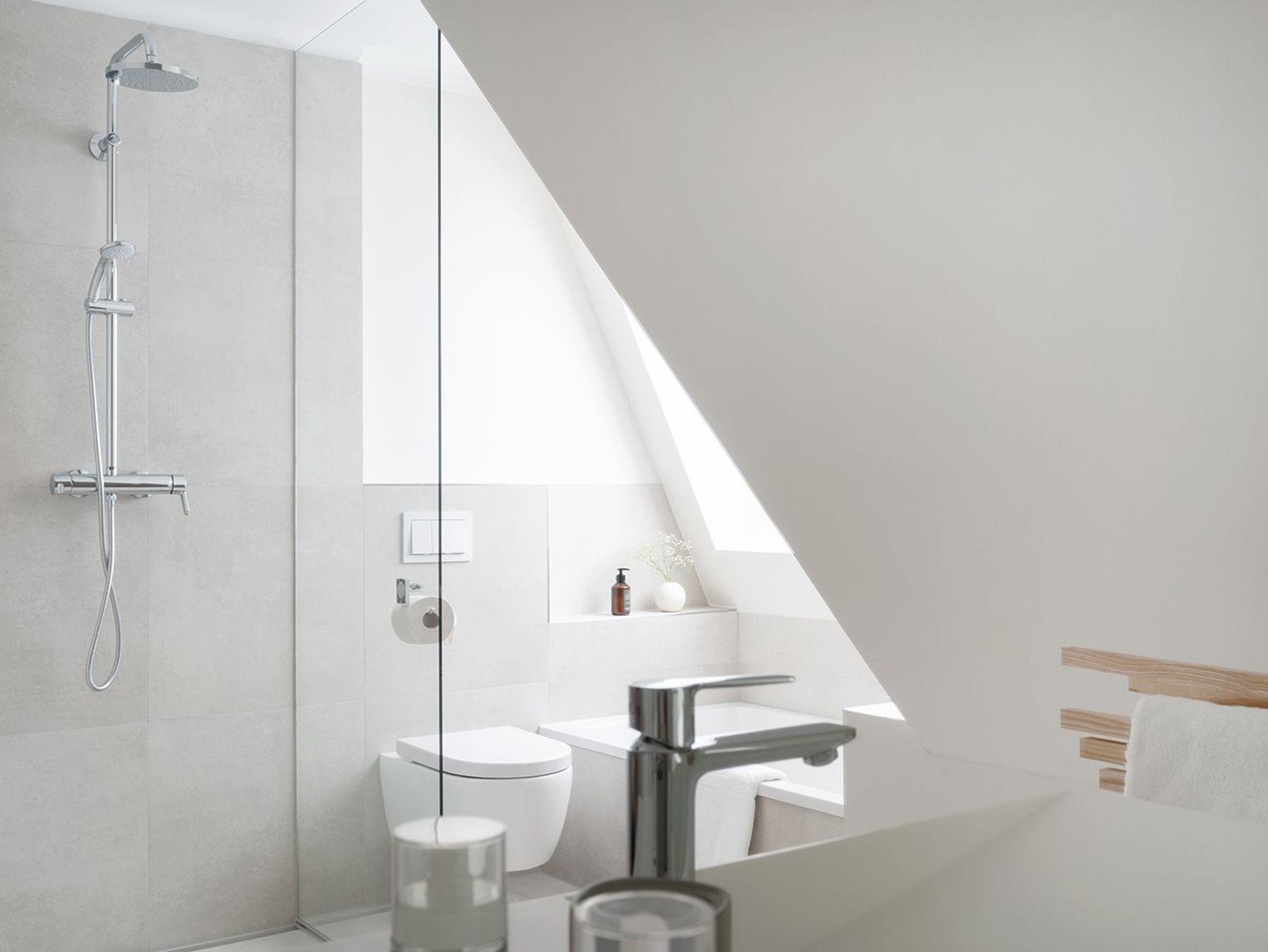 Das Badezimmer ist mit einer bodengleichen Dusche mit Regendusche ausgestattet und bietet mit einer Badewanne ein weiteres Highlight.