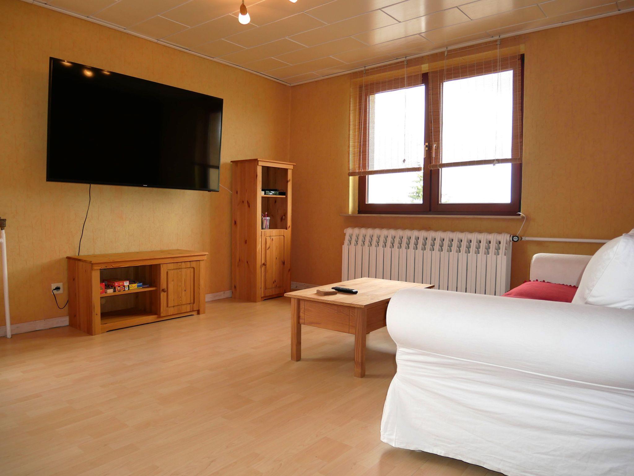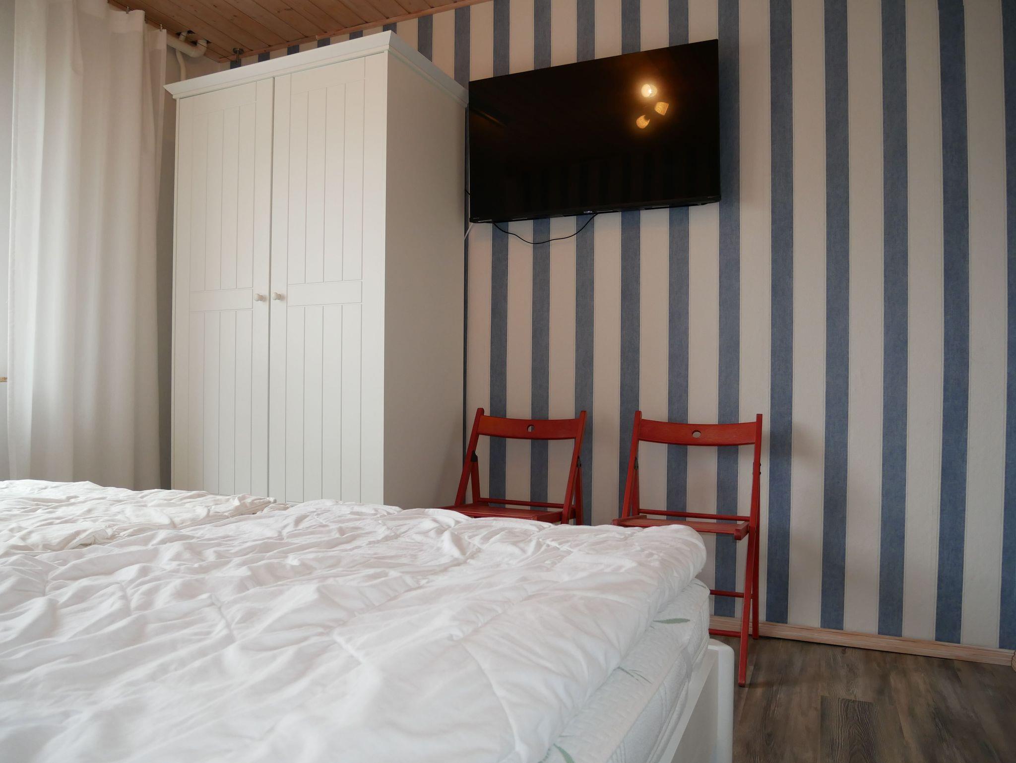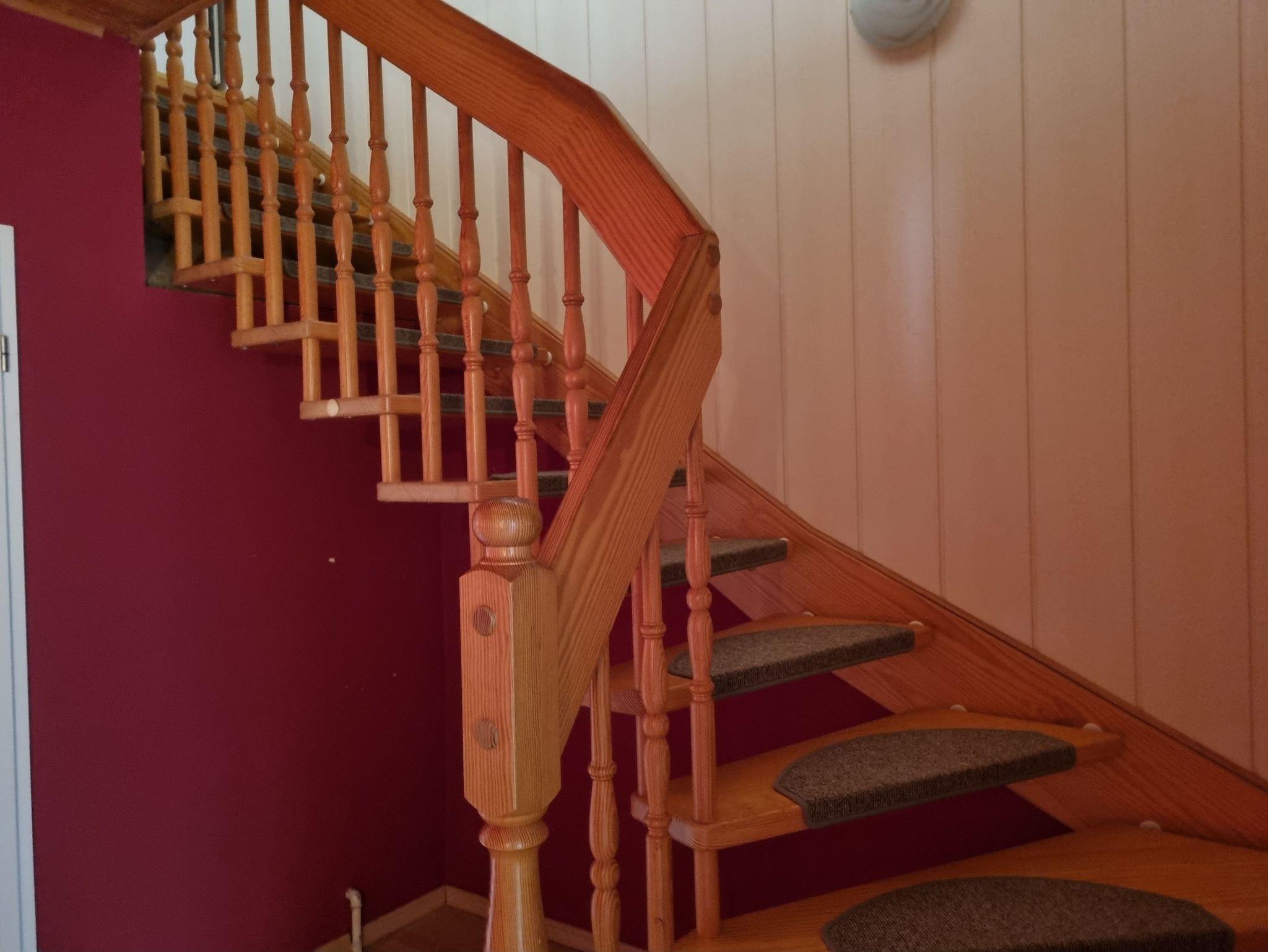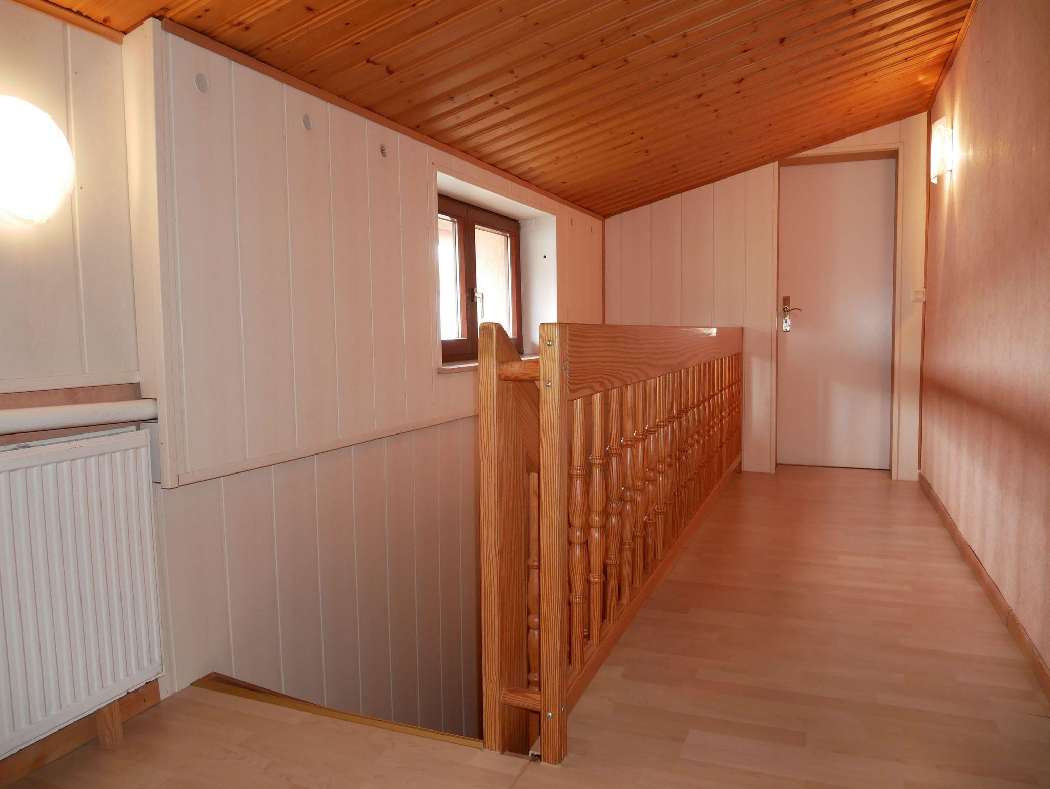Über eine Treppe gelangen Sie ins Obergeschoß, wo sich ein 30 qm großes Wohnzimmer mit gemütlicher Couch und großem Flat-TV befindet. Das zweite Schlafzimmer im Obergeschoß ist ebenfalls mit einem Doppelbett, Kleiderschrank und einem kleinen Nebenraum mit Einzelbett, Tisch und zusätzlichem Kleiderschrank ausgestattet ? dieser Raum ist offen, nicht durch eine Tür getrennt. Das dritte Schlafzimmer bietet ein Einzelbett, das nur 1,80 m lang ist und ein Kleiderschrank. Das Badezimmer im Obergeschoß verfügt über eine Toilette und Waschbecken.