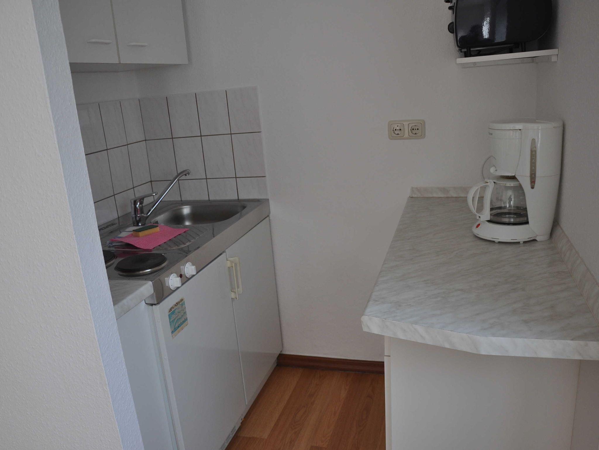 Unsere Ferienwohnungen vom Typ Breitfock sind ebenerdig im Apartmenthaus gelegen. Sie bieten Ihnen einen kombinierten Wohn-/ Schlafraum mit Doppelbett, eine offene, für 2 Personen ausgestattete, Kochnische mit Kochmöglichkeit (2 Platten), Kühlschrank, Toaster, Wasserkocher, Töpfe und Geschirr sowie ein kleines Bad mit Dusche und WC. Im Wohnbereich haben wir für Sie einen LED-Fernseher, einen DVD-Player und ein CD-Radio bereitgestellt. Es sind sämtlichst Nichtraucherwohnungen. Ein PKW-Stellplatz kann ganzjährig kostenfrei genutzt werden.